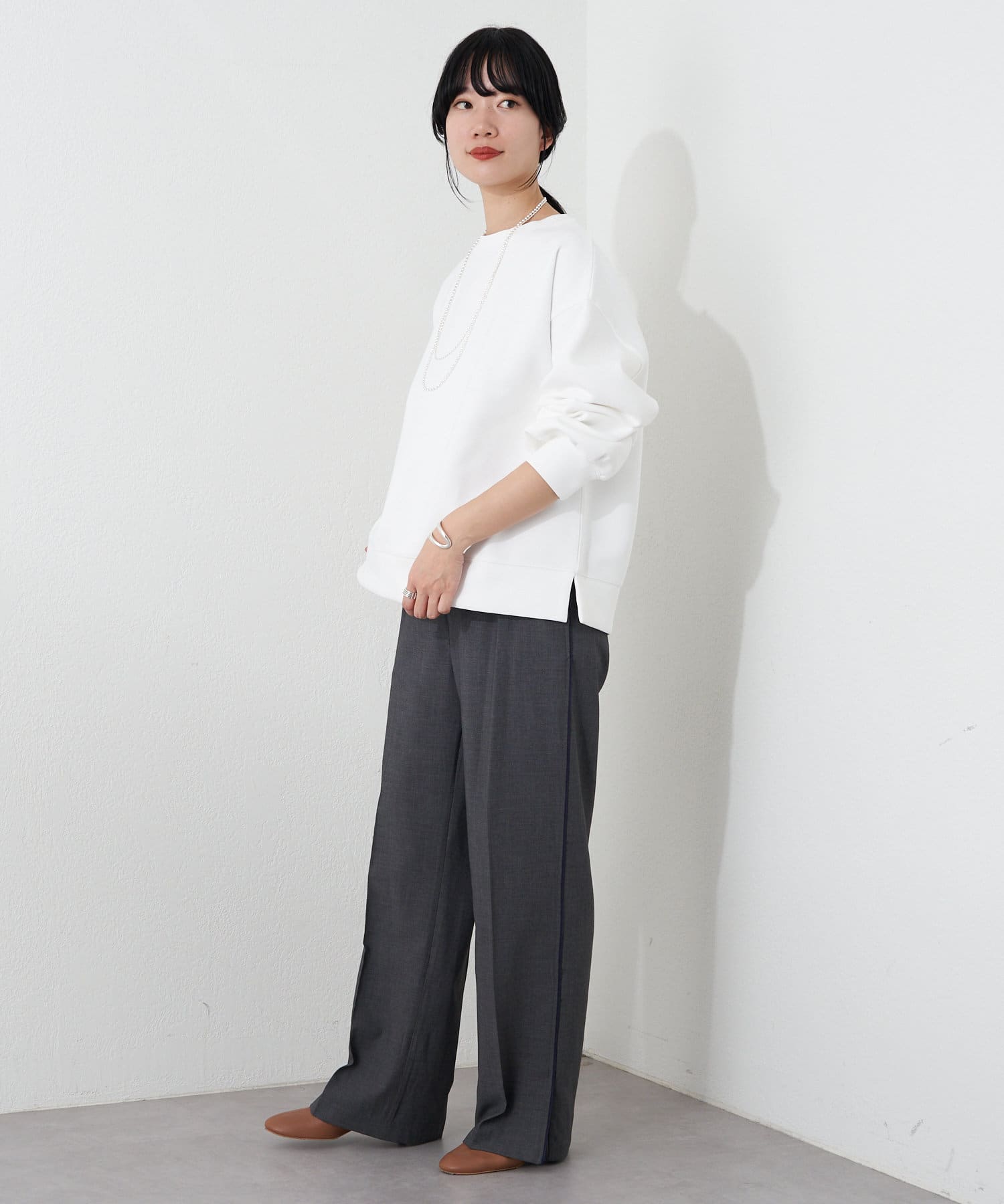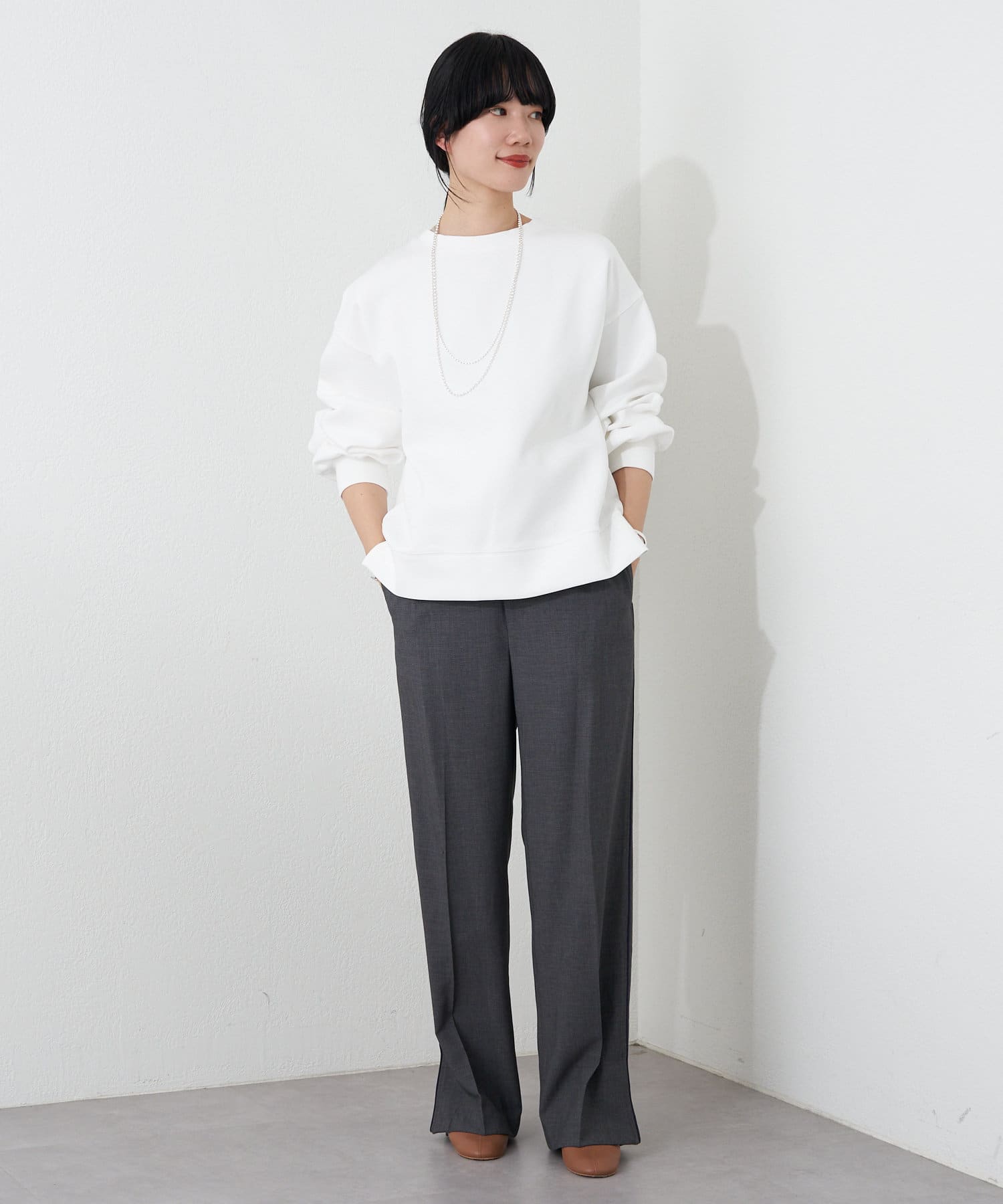 今シーズントレンドのスポーツ要素も、スラックスなら取り入れやすいです。