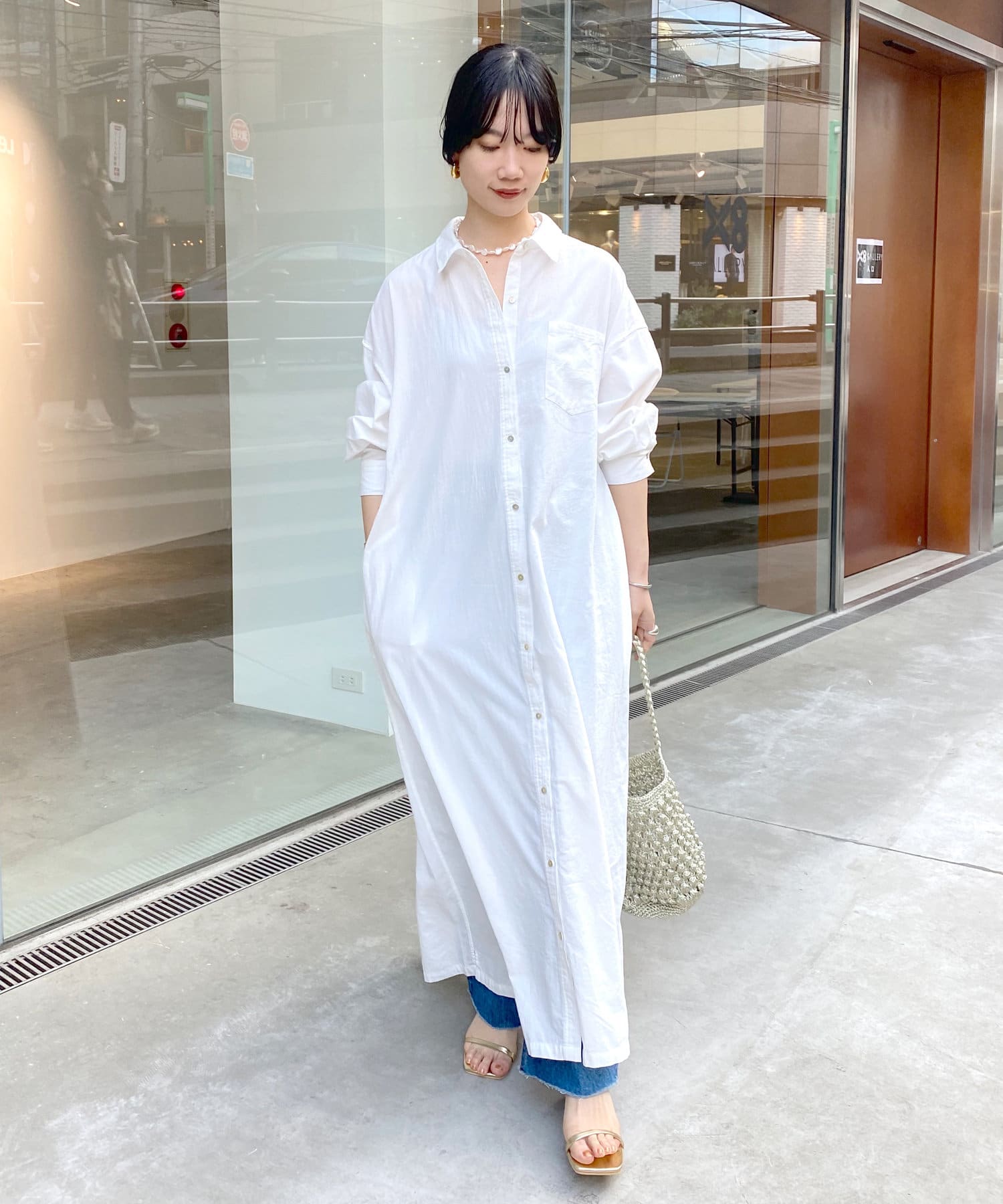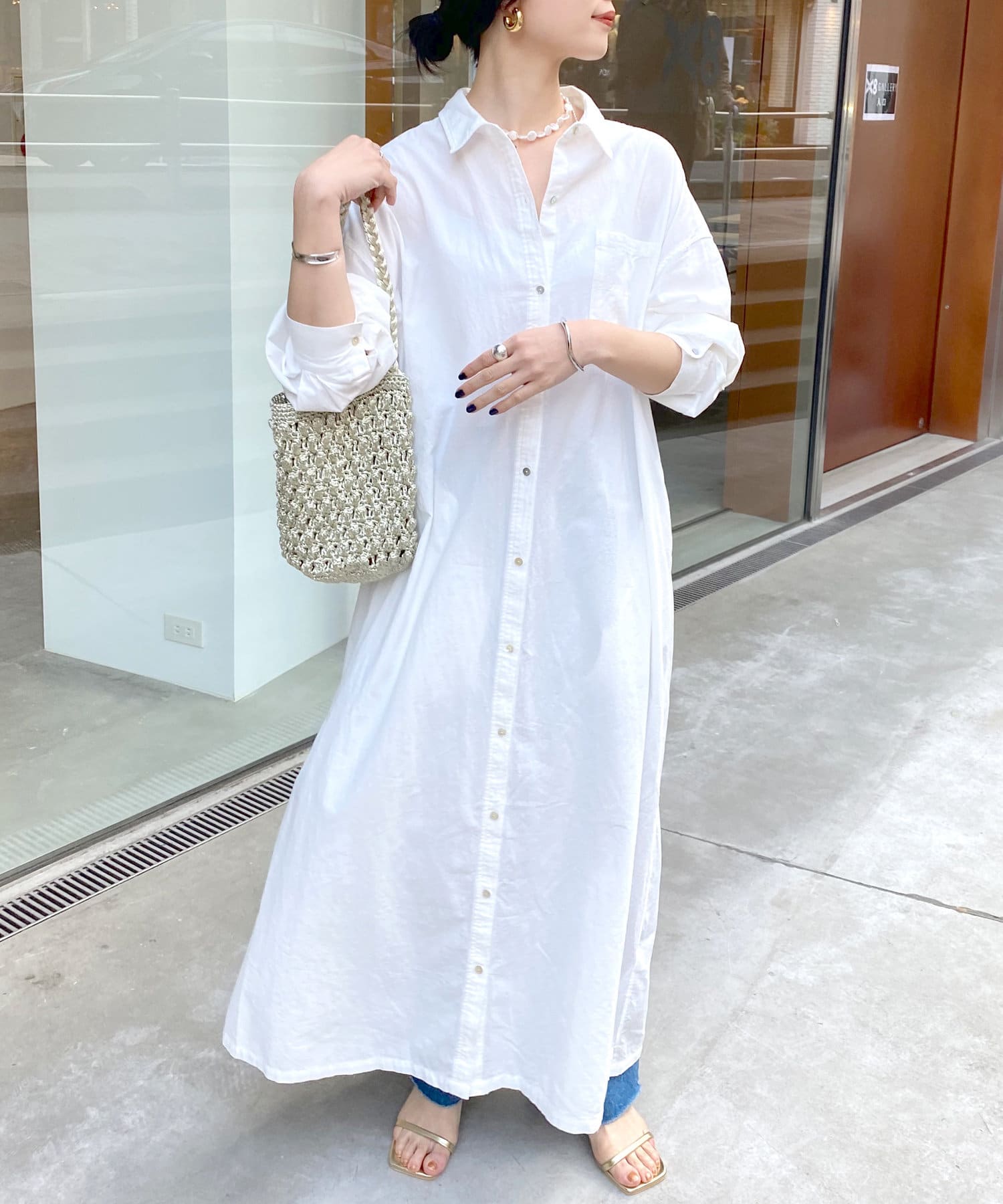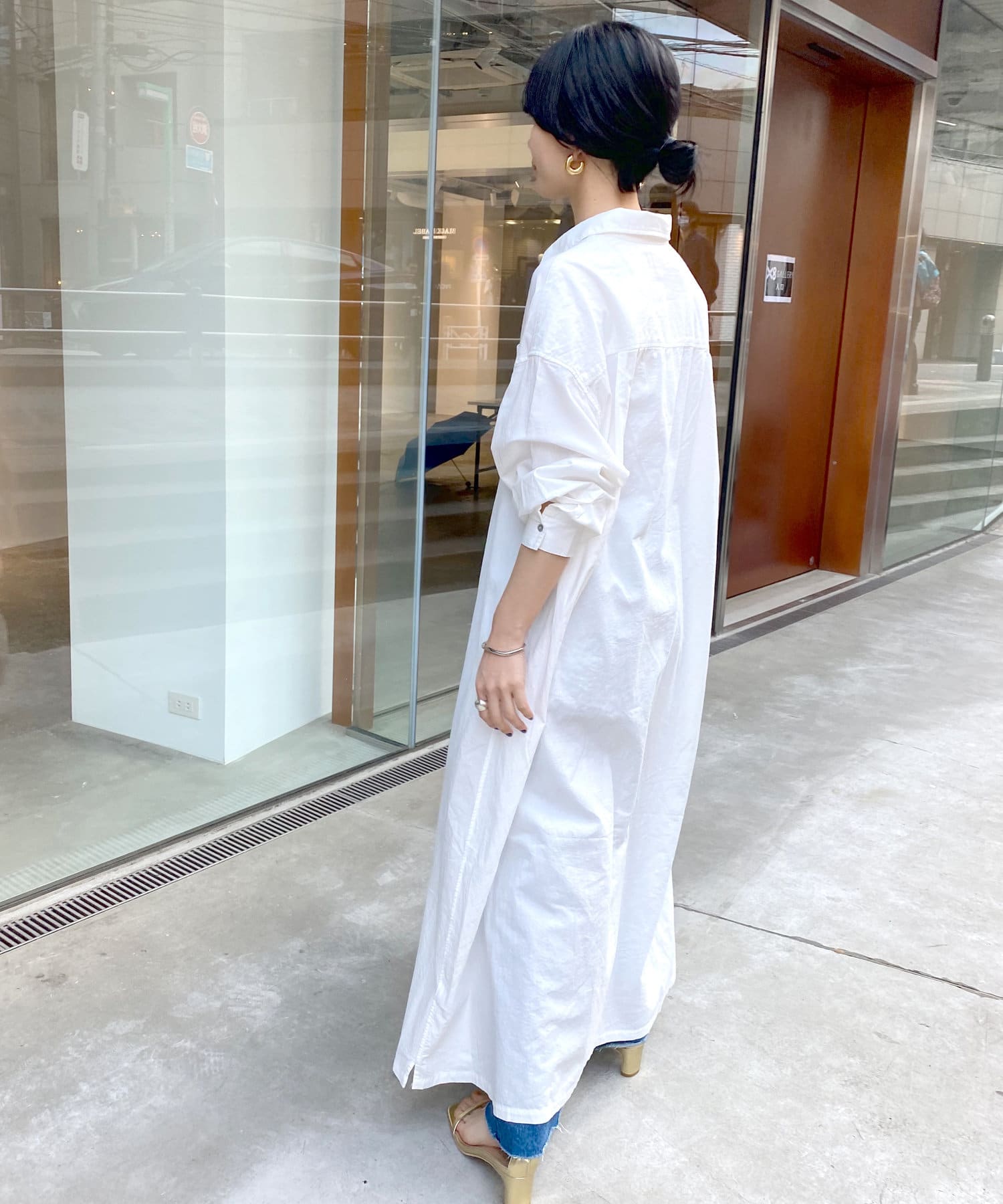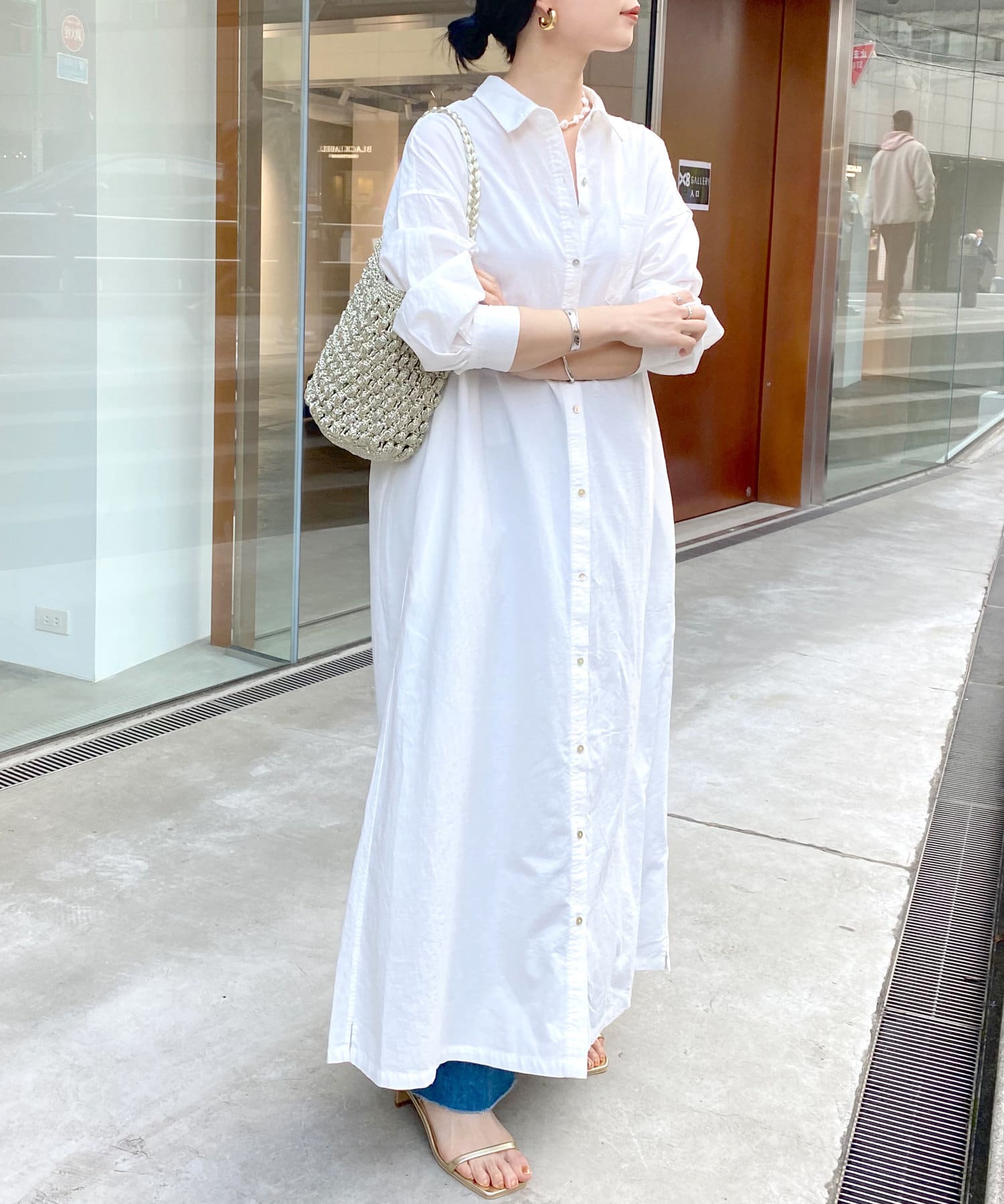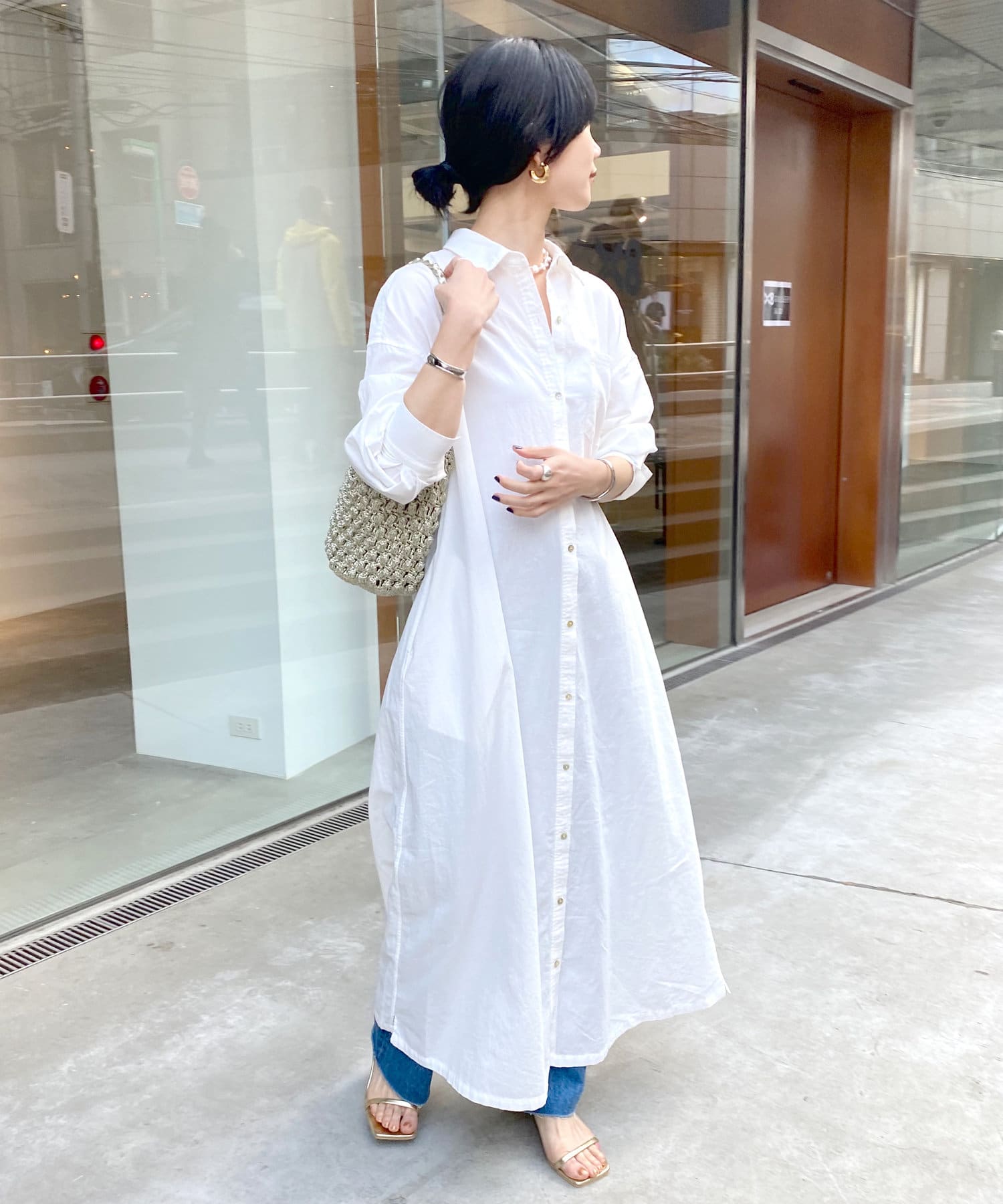 ♦1枚でスタイリングが決まりやすいマキシ丈のシャツドレス