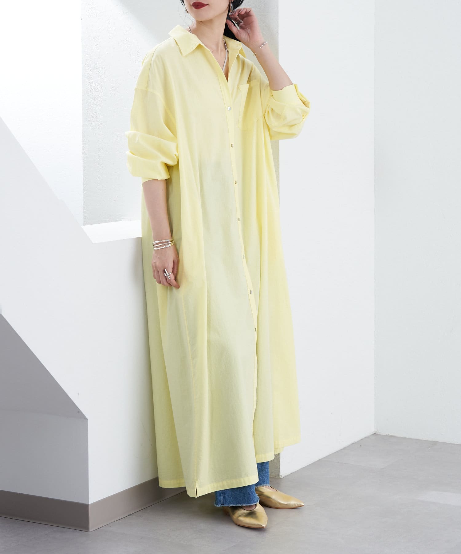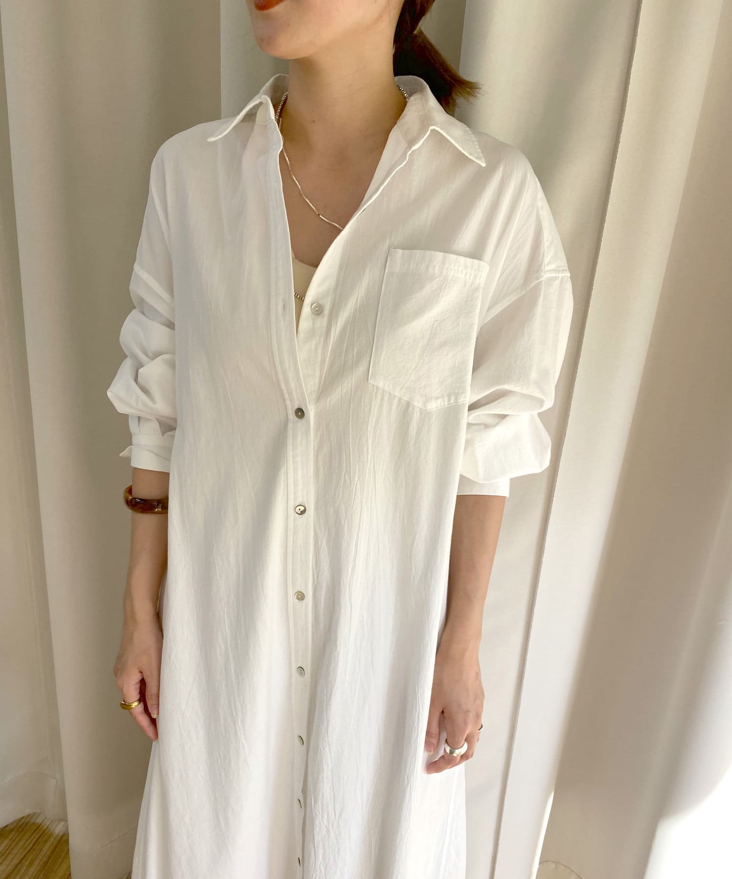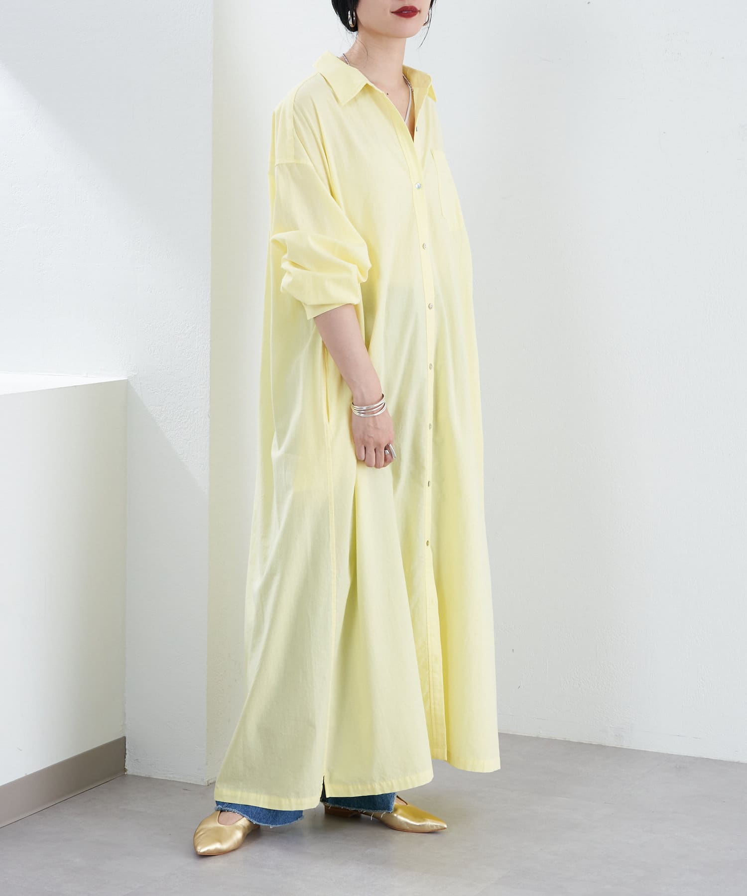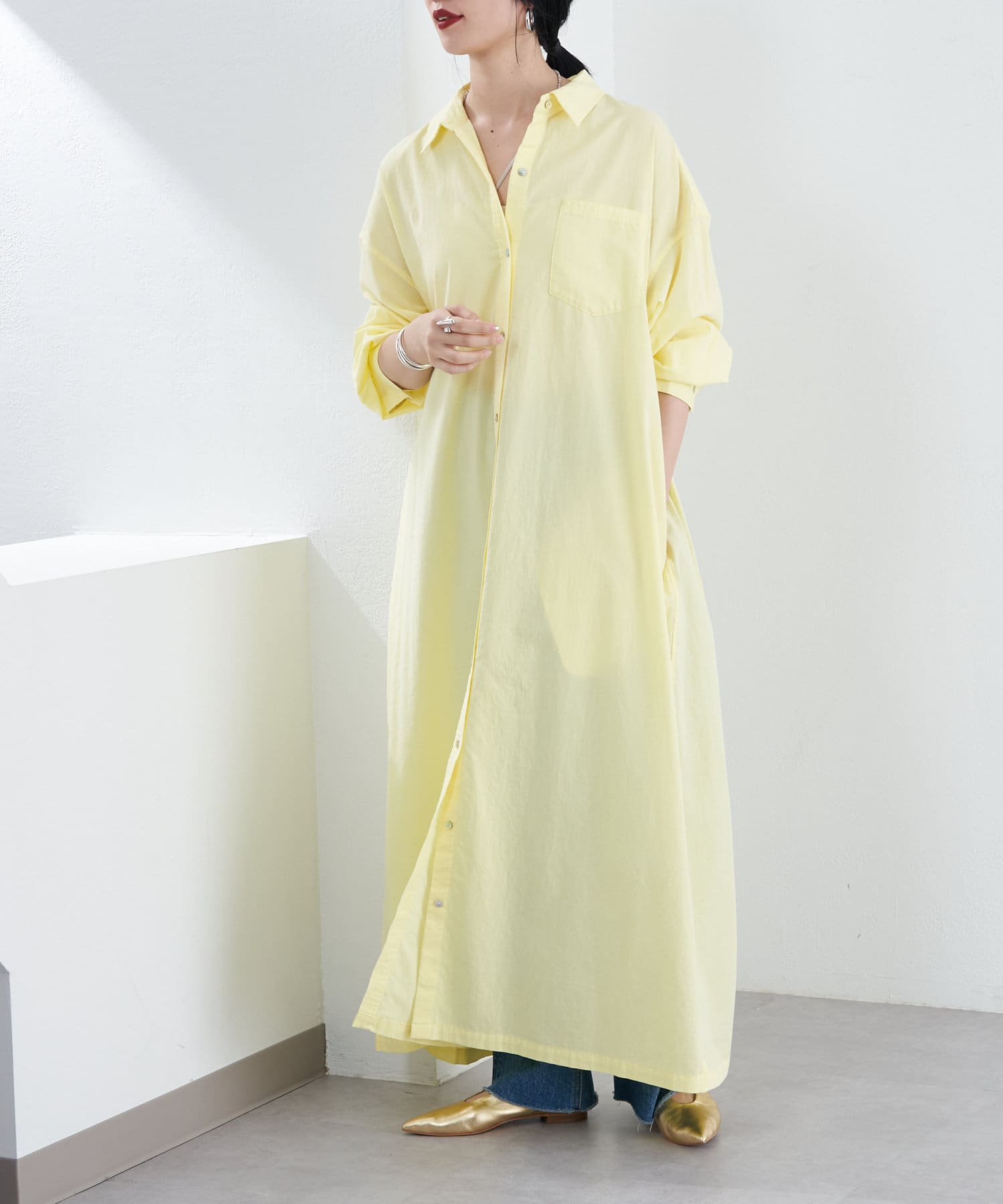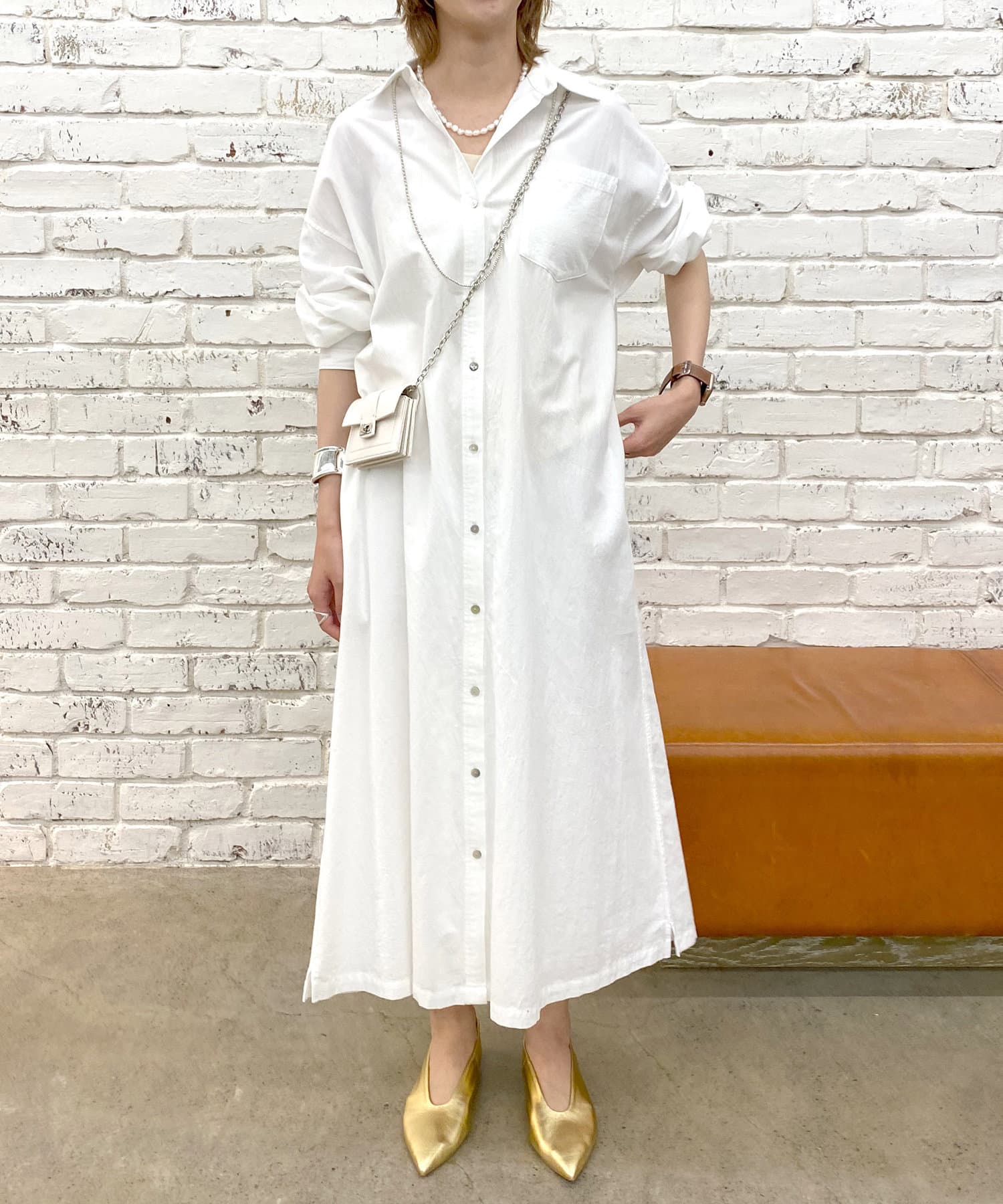 ♦1枚でスタイリングが決まりやすいマキシ丈のシャツドレス