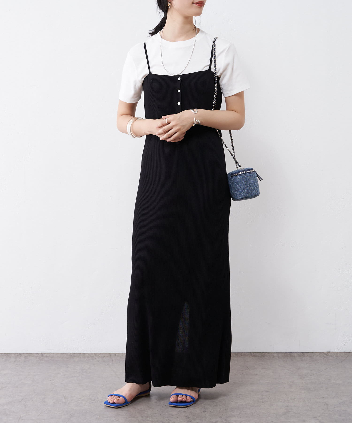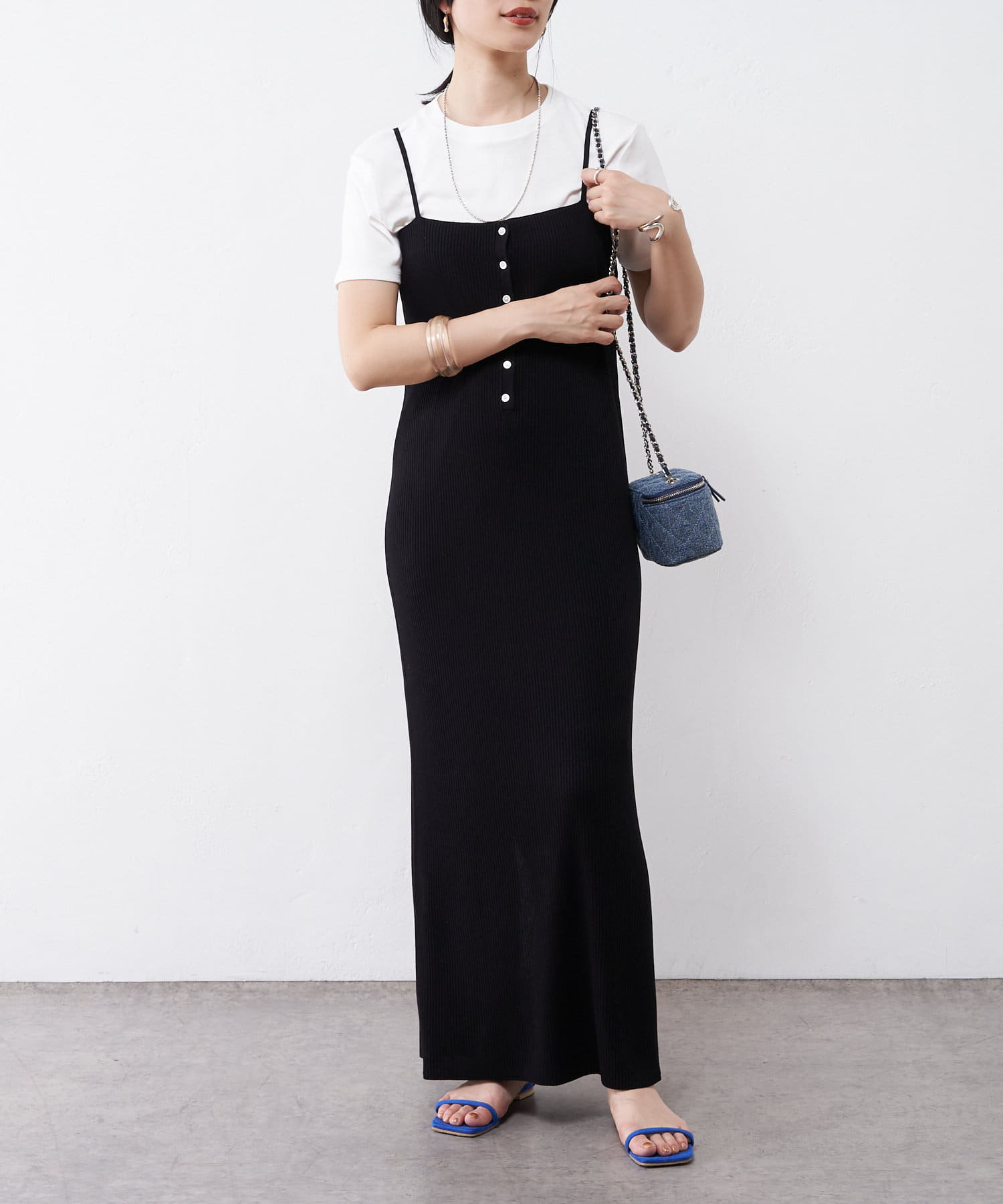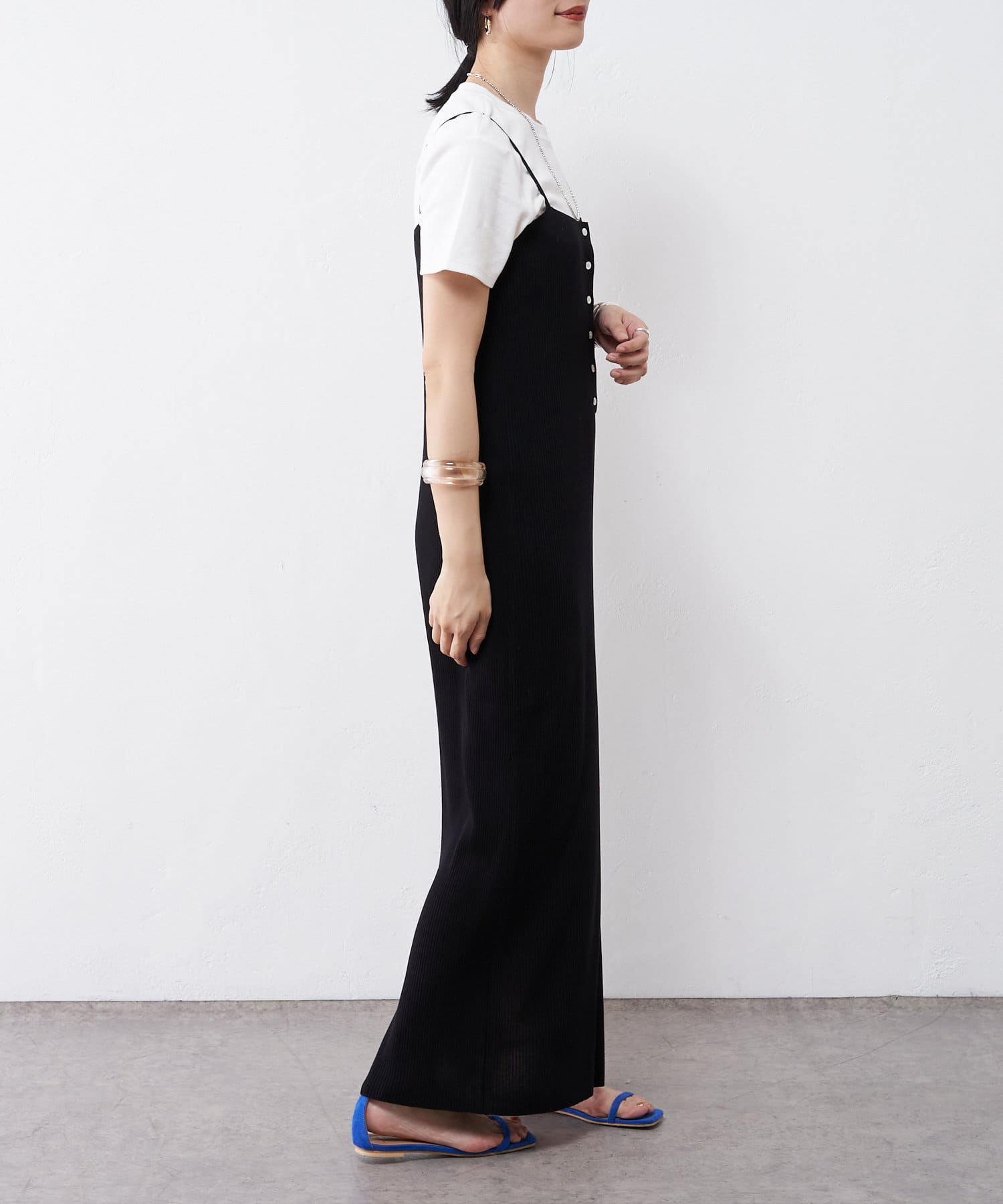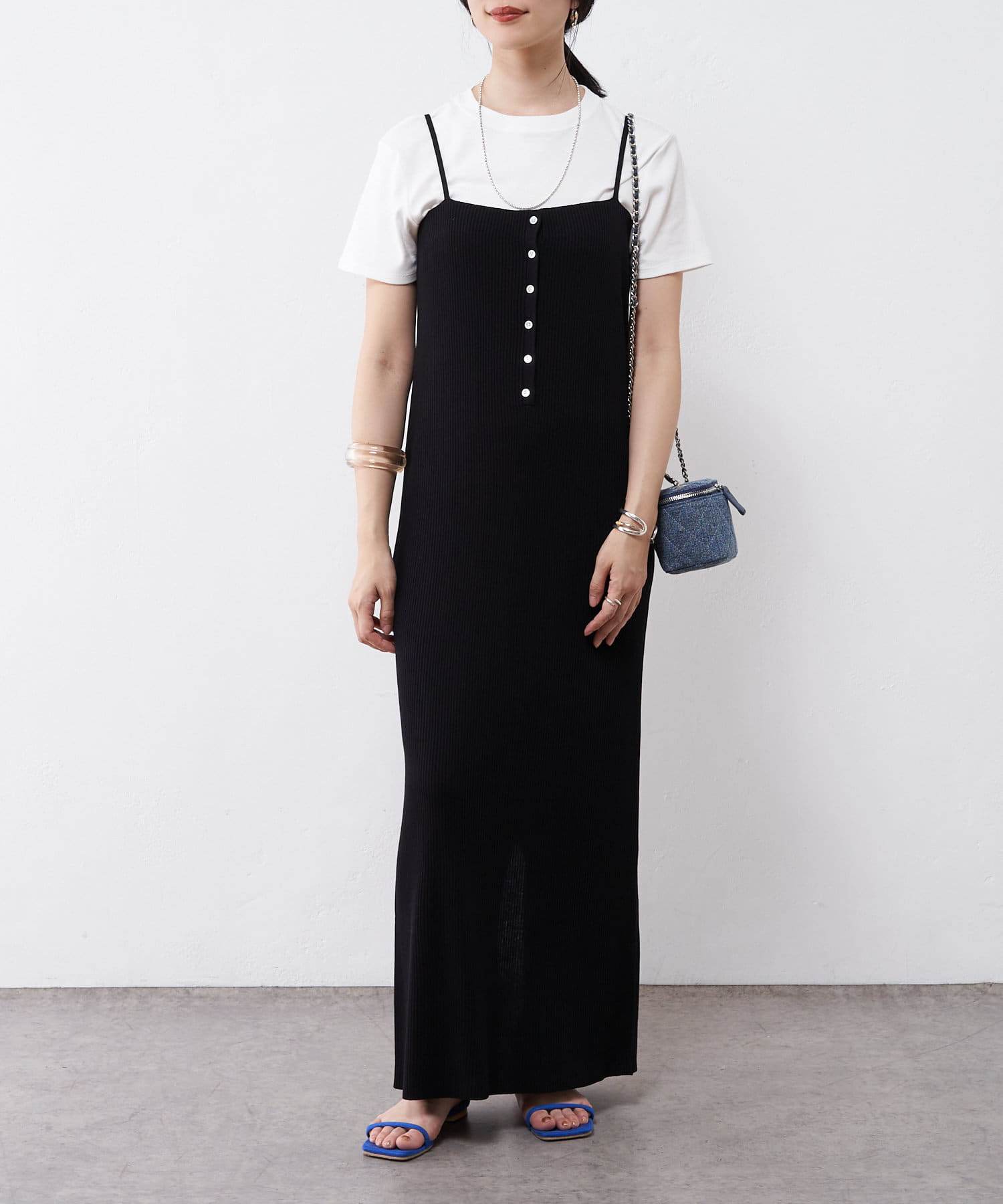 ワンピースはヘンリーデザインのようなボタンがポイントになっています。