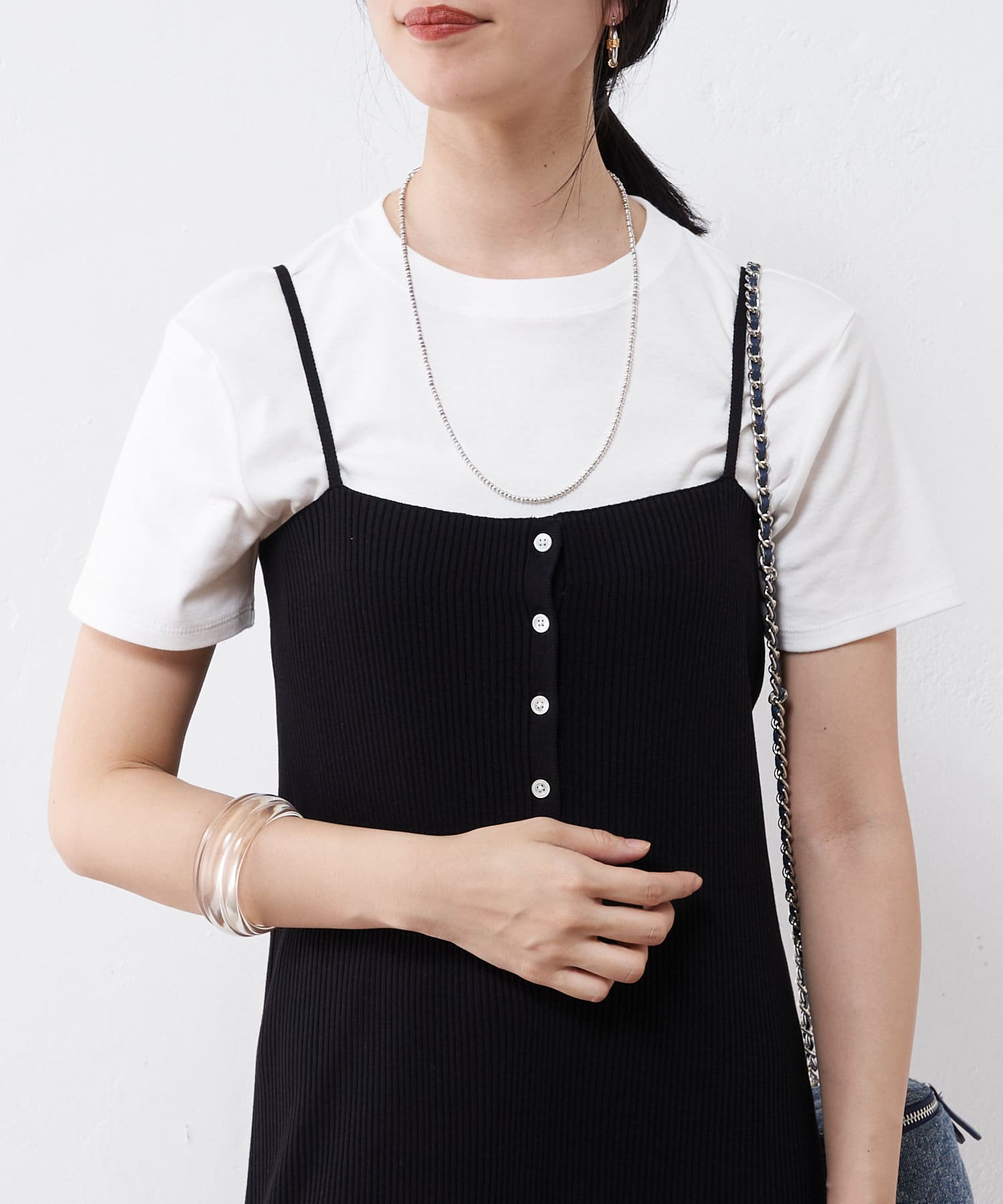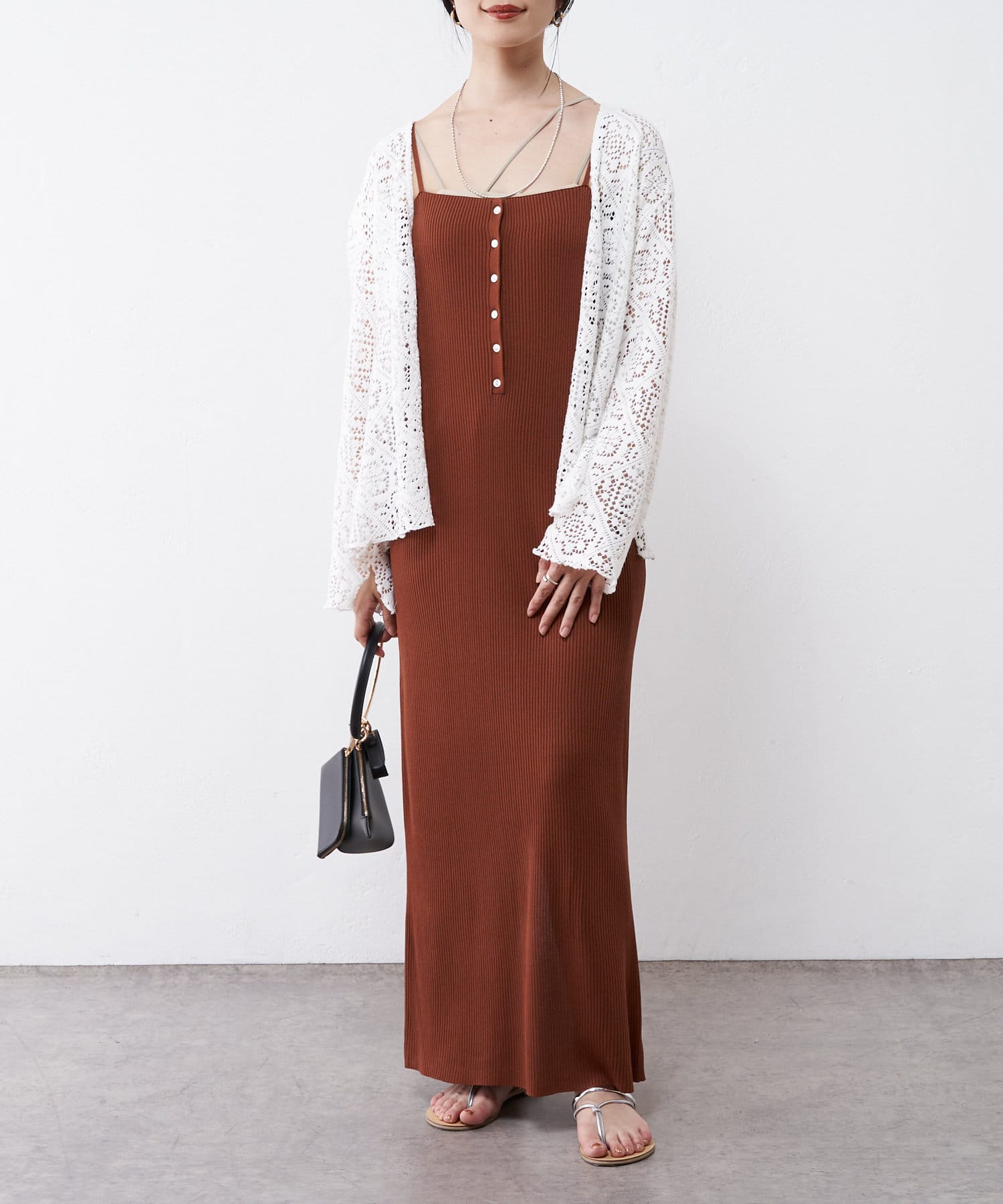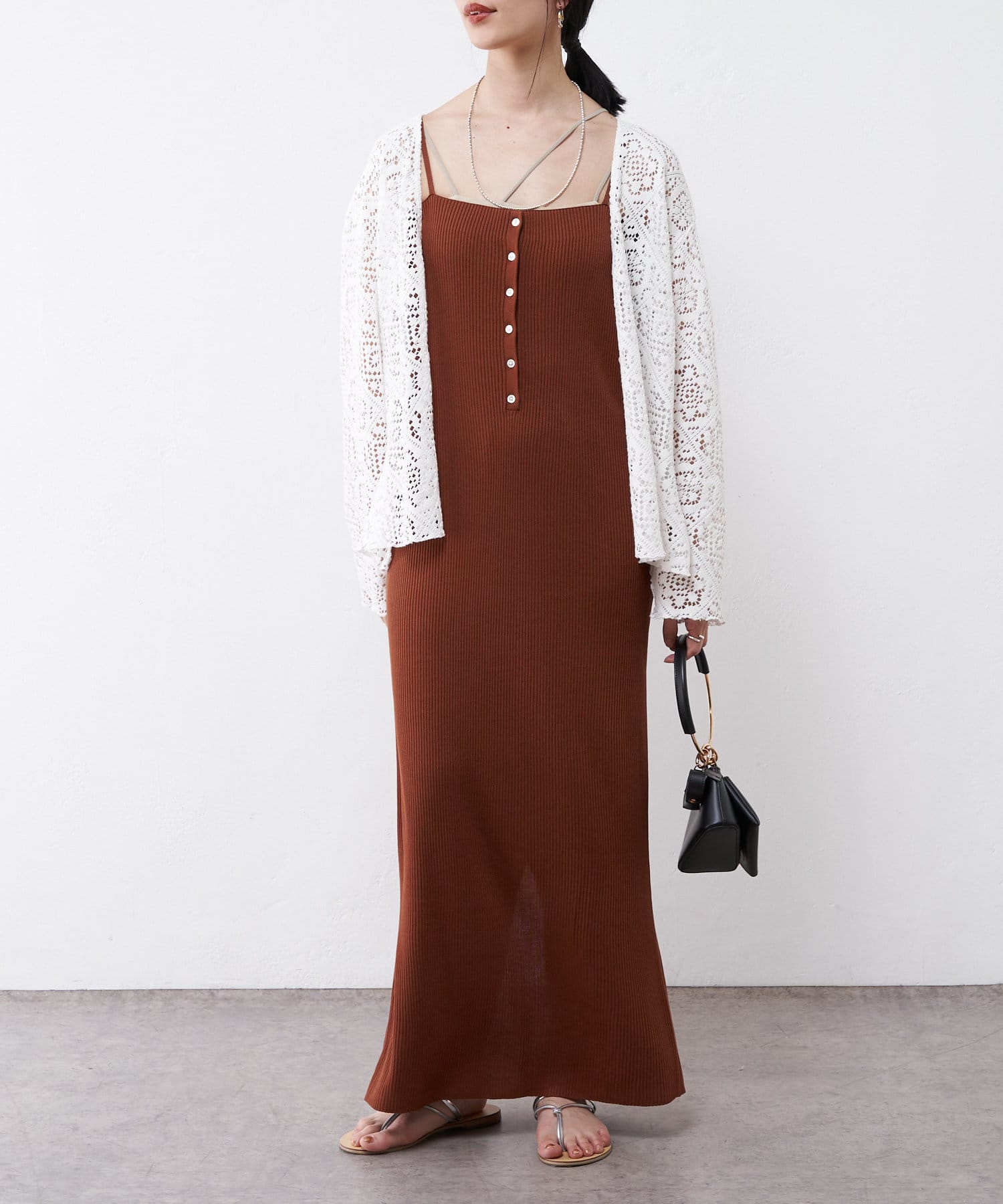 ワンピースはヘンリーデザインのようなボタンがポイントになっています。