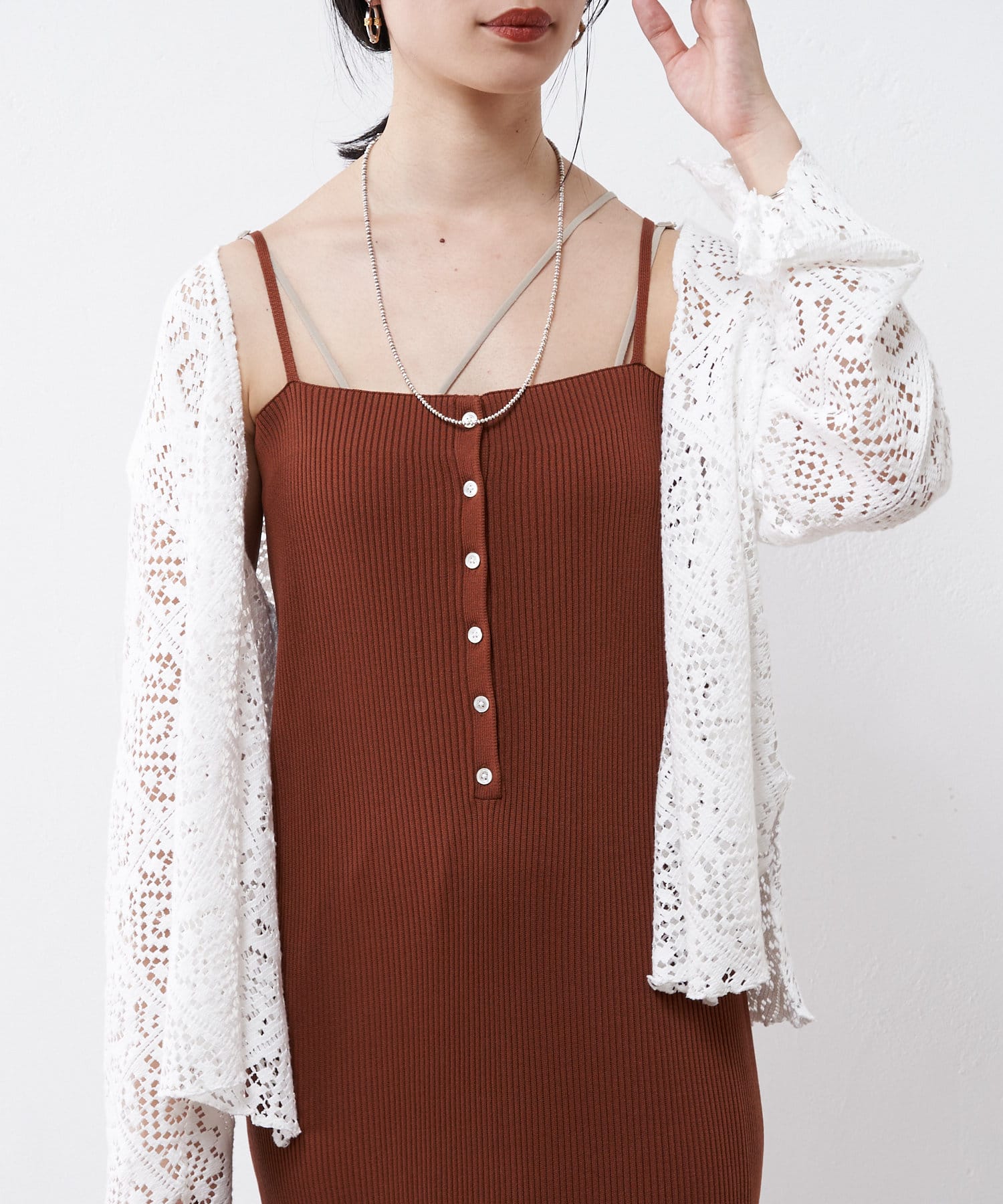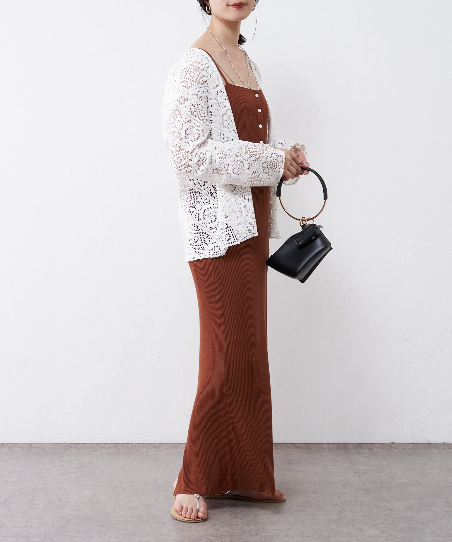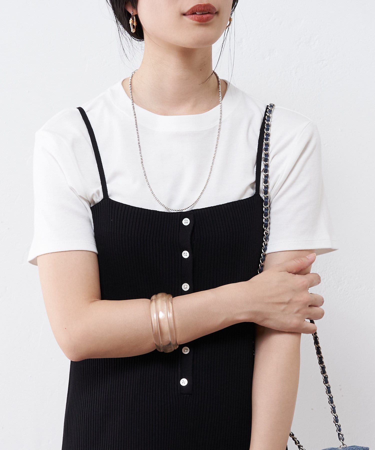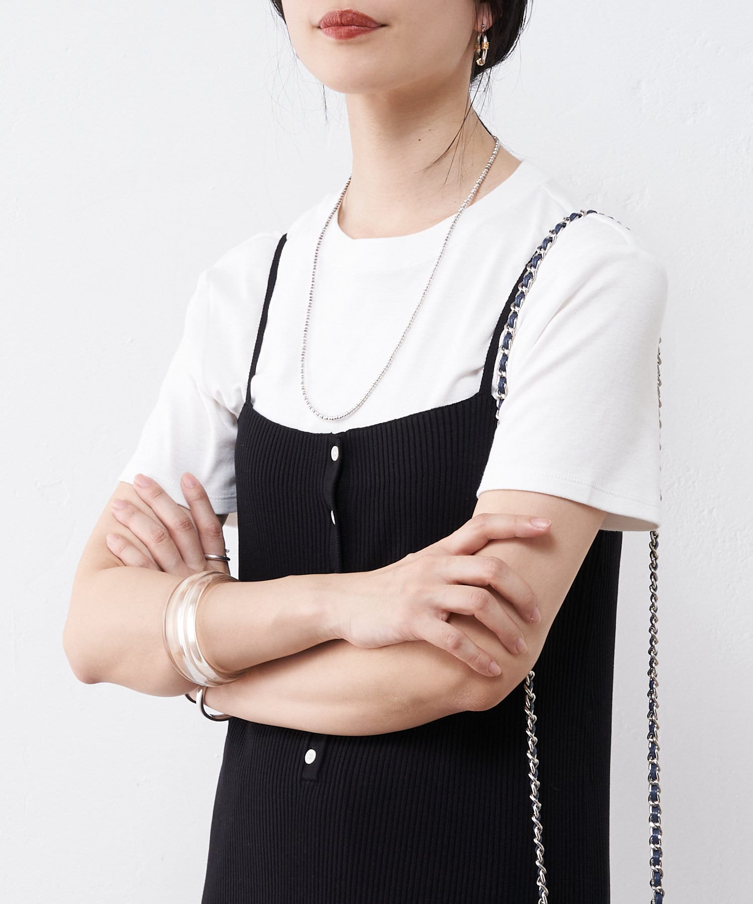 ワンピースはヘンリーデザインのようなボタンがポイントになっています。
