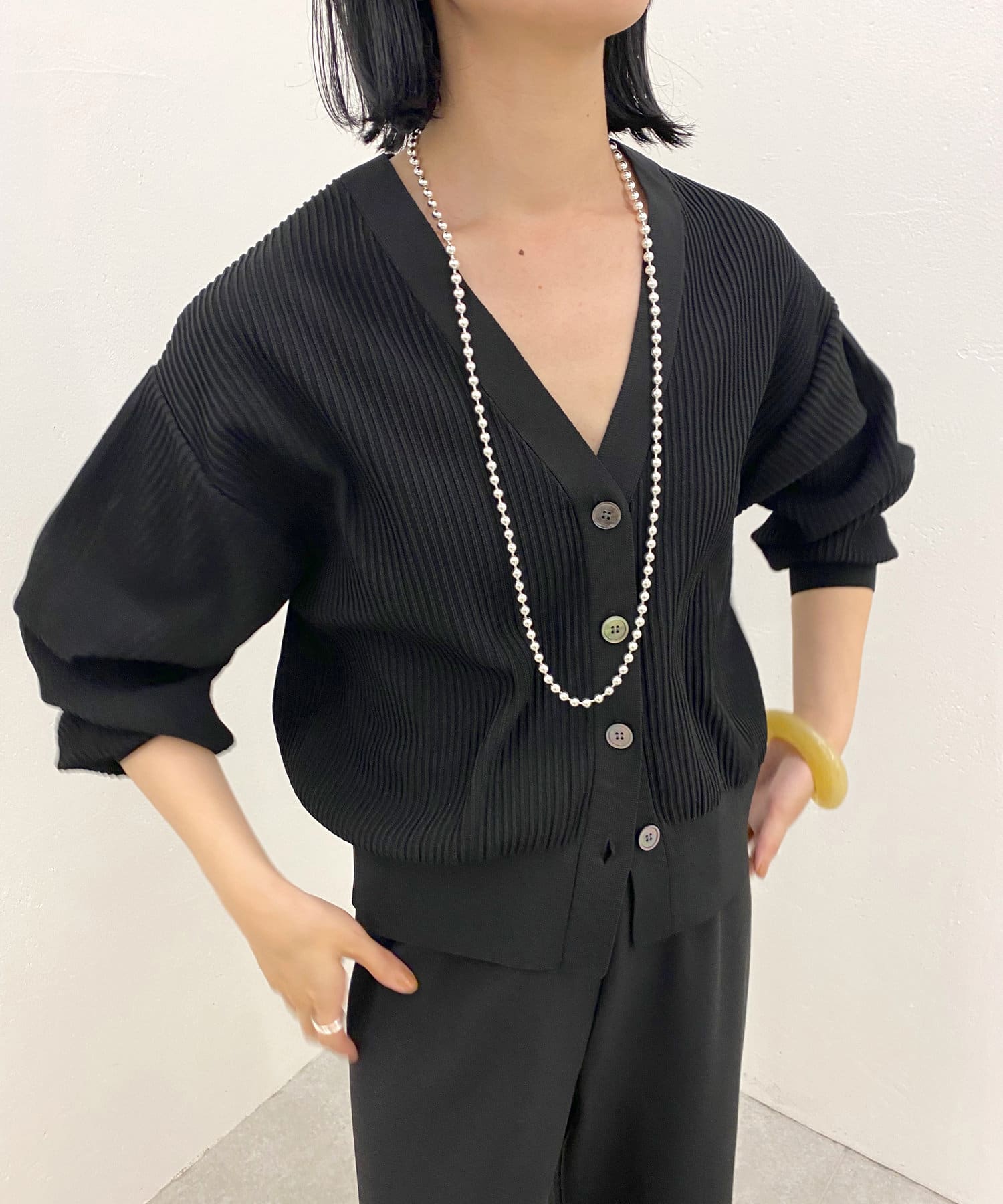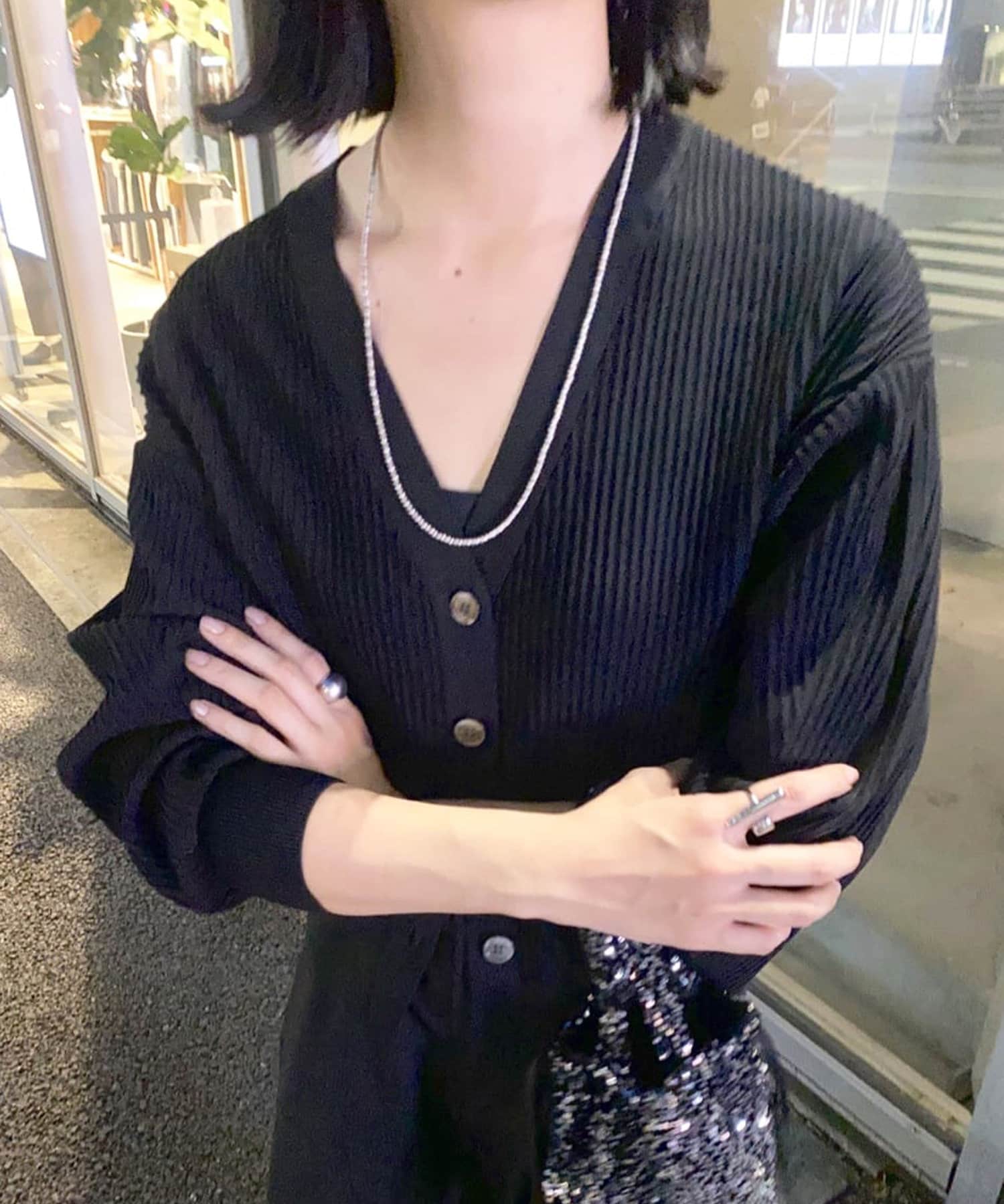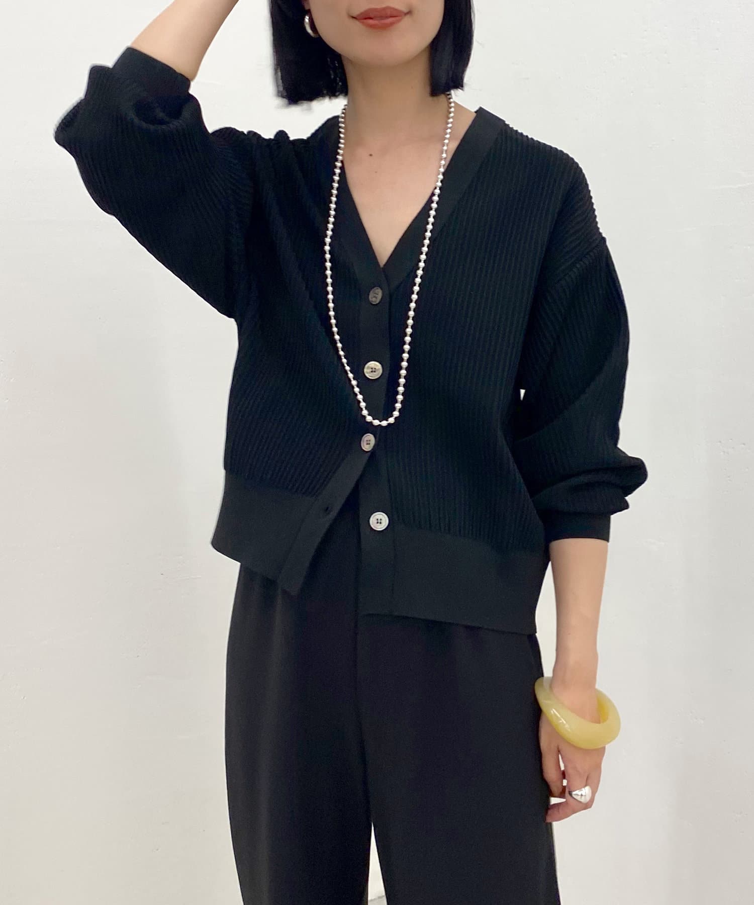 【SHENERY】ポリエステルリブニットカーディガン