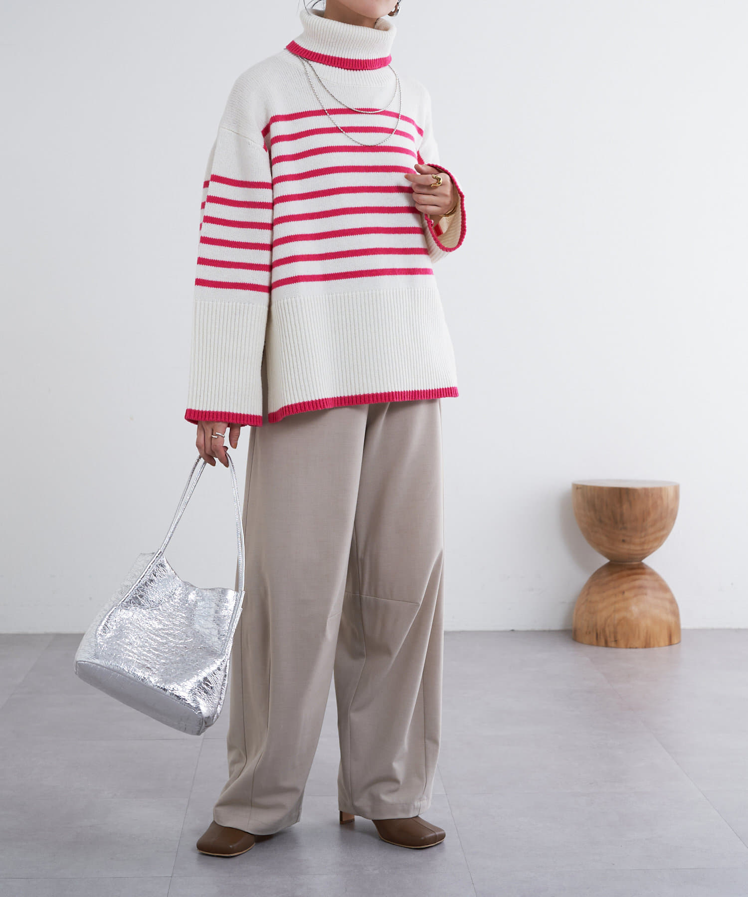 カジュアルになりがちな冬のスタイリングをグッとこなれ感のあるコーディネートが完成します。
