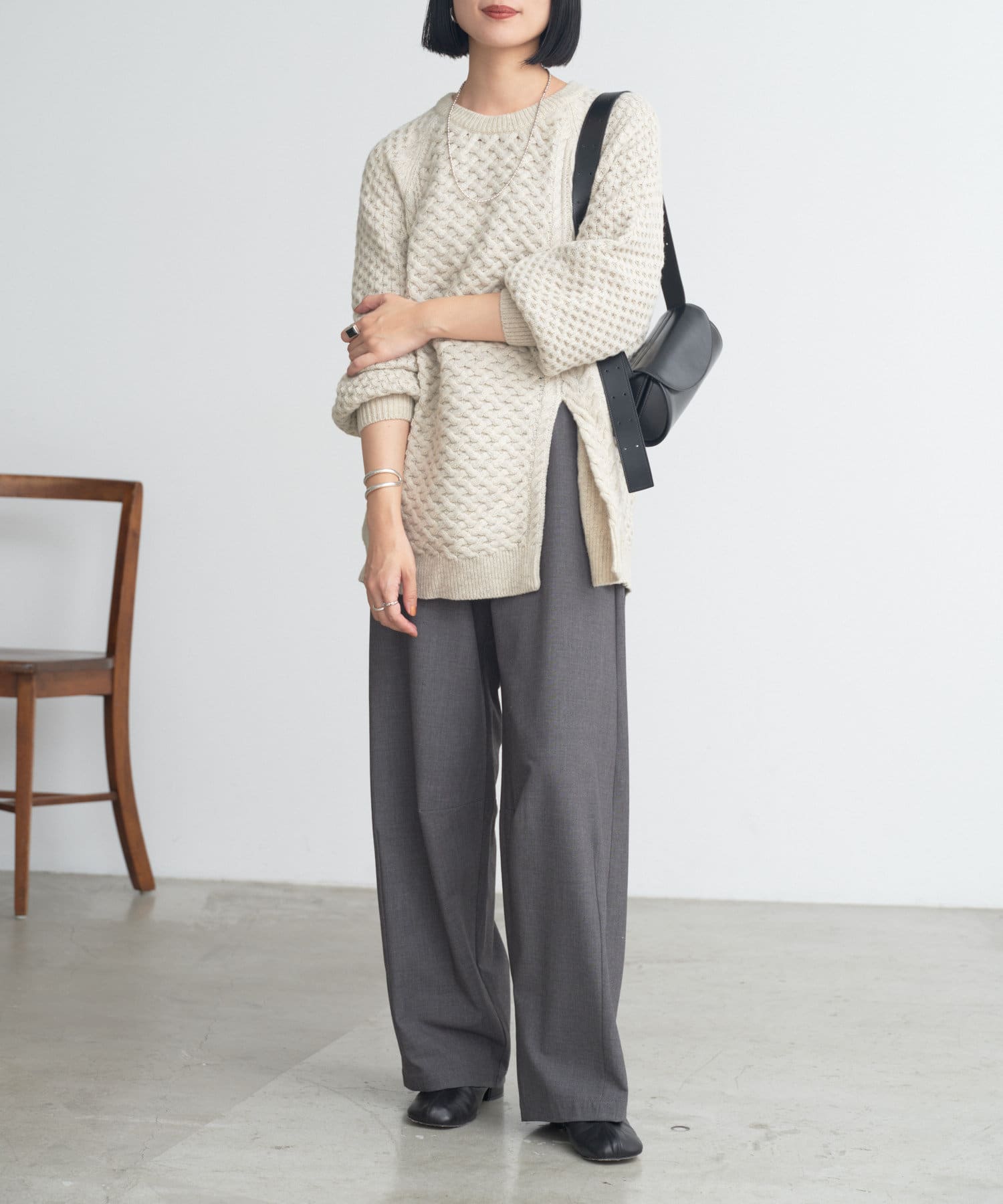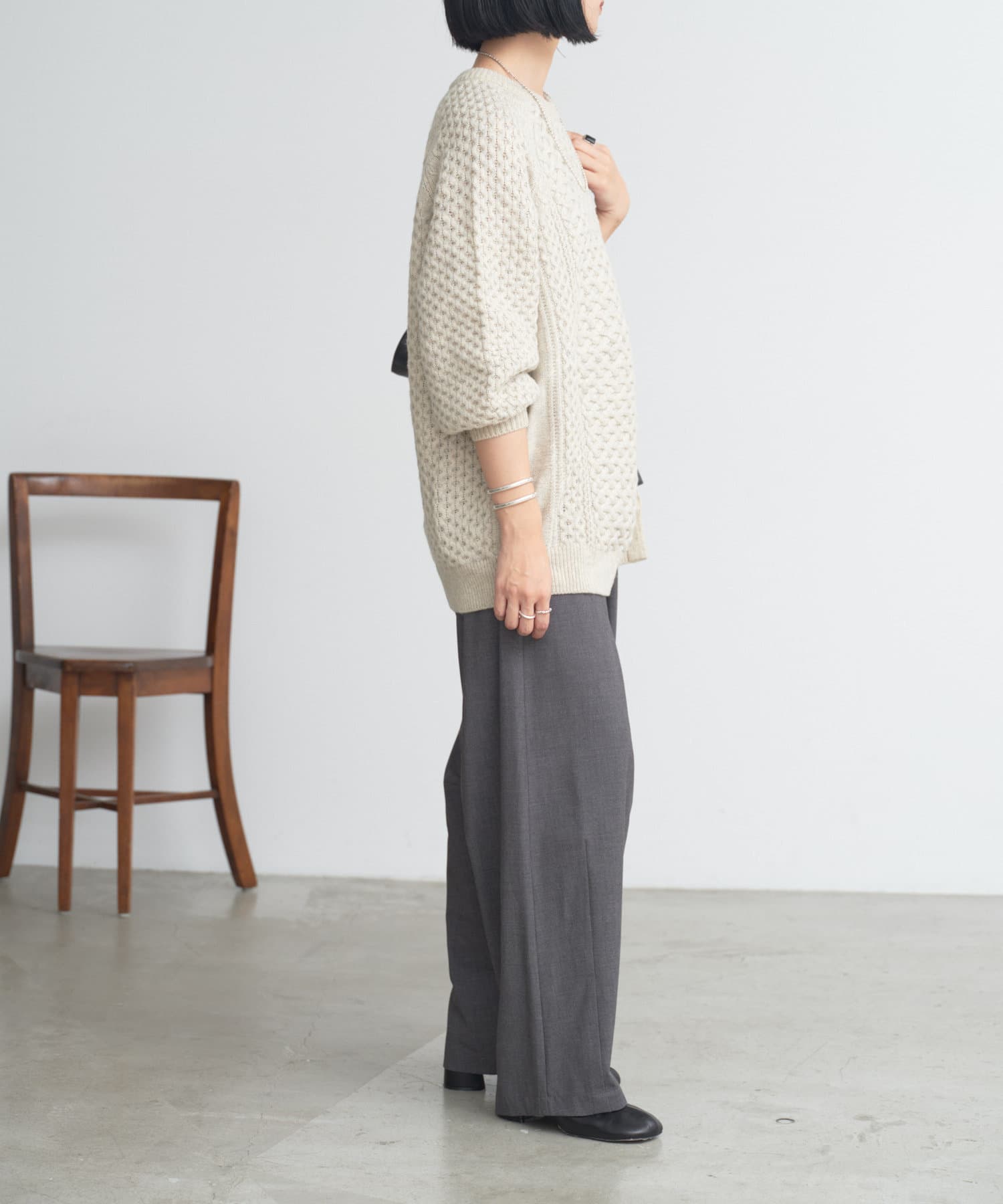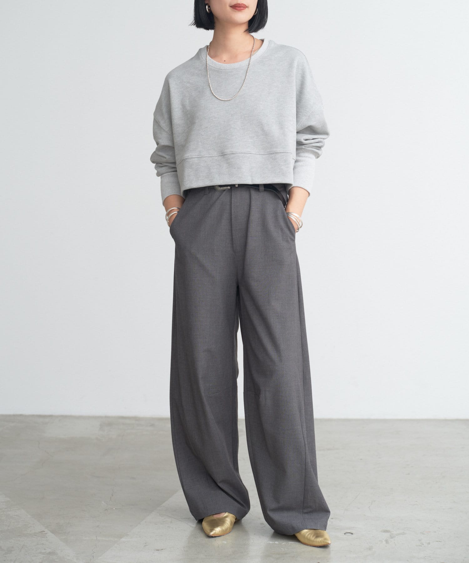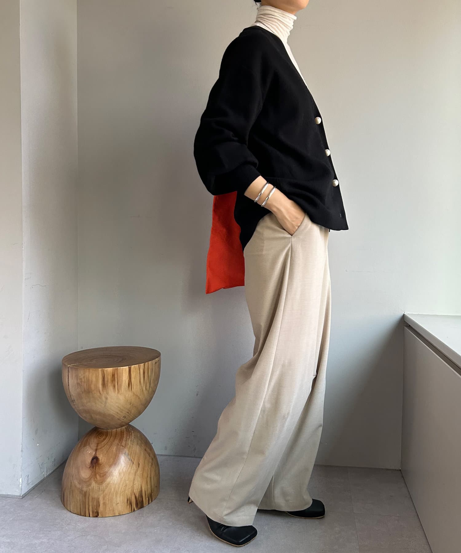 素材に毛が少し入っているので、冬まで履いていただけるパンツです。