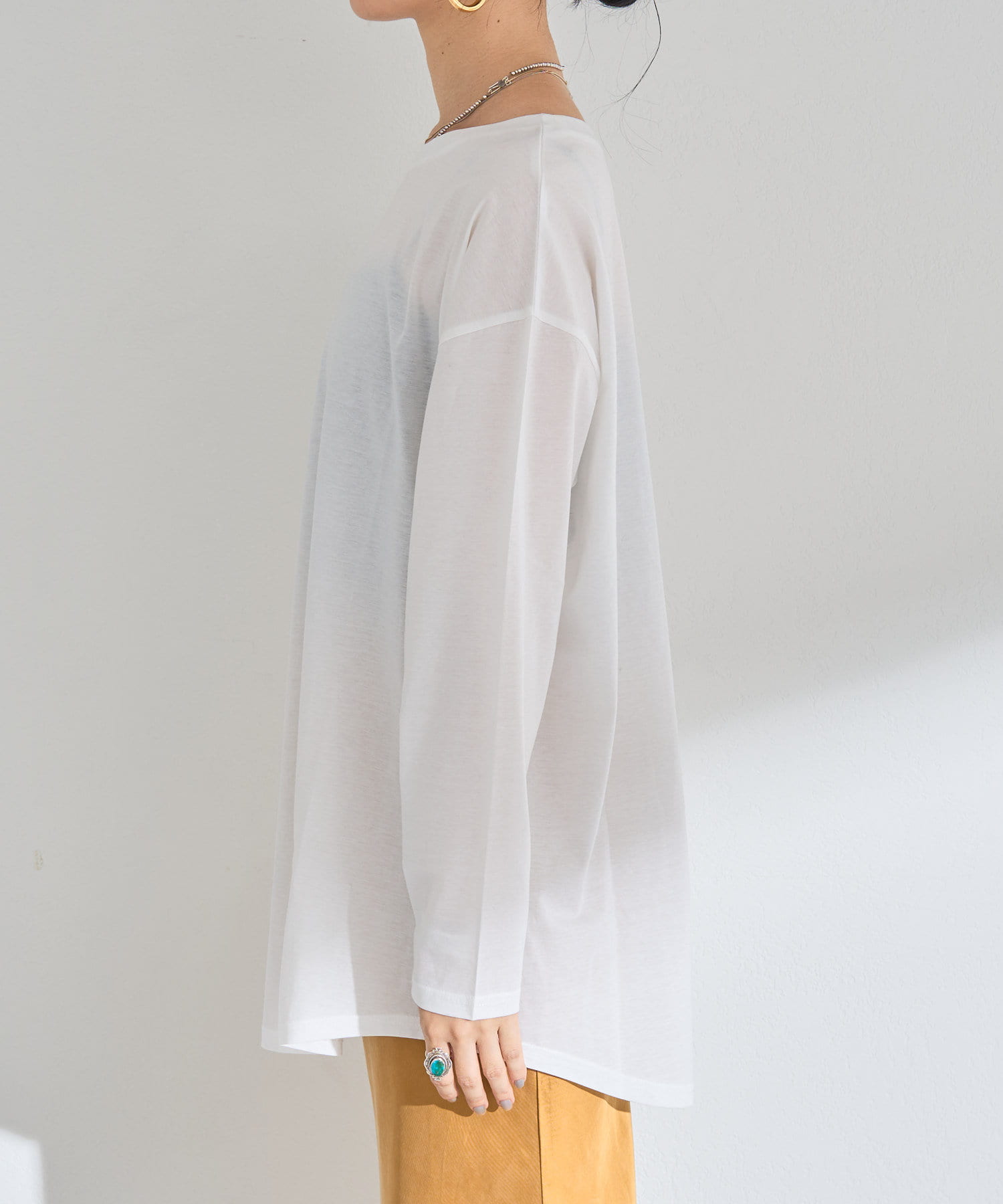 程よいゆとりもあり、一枚でも着れるし重ね着用にもなる