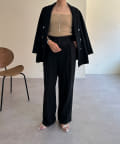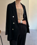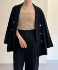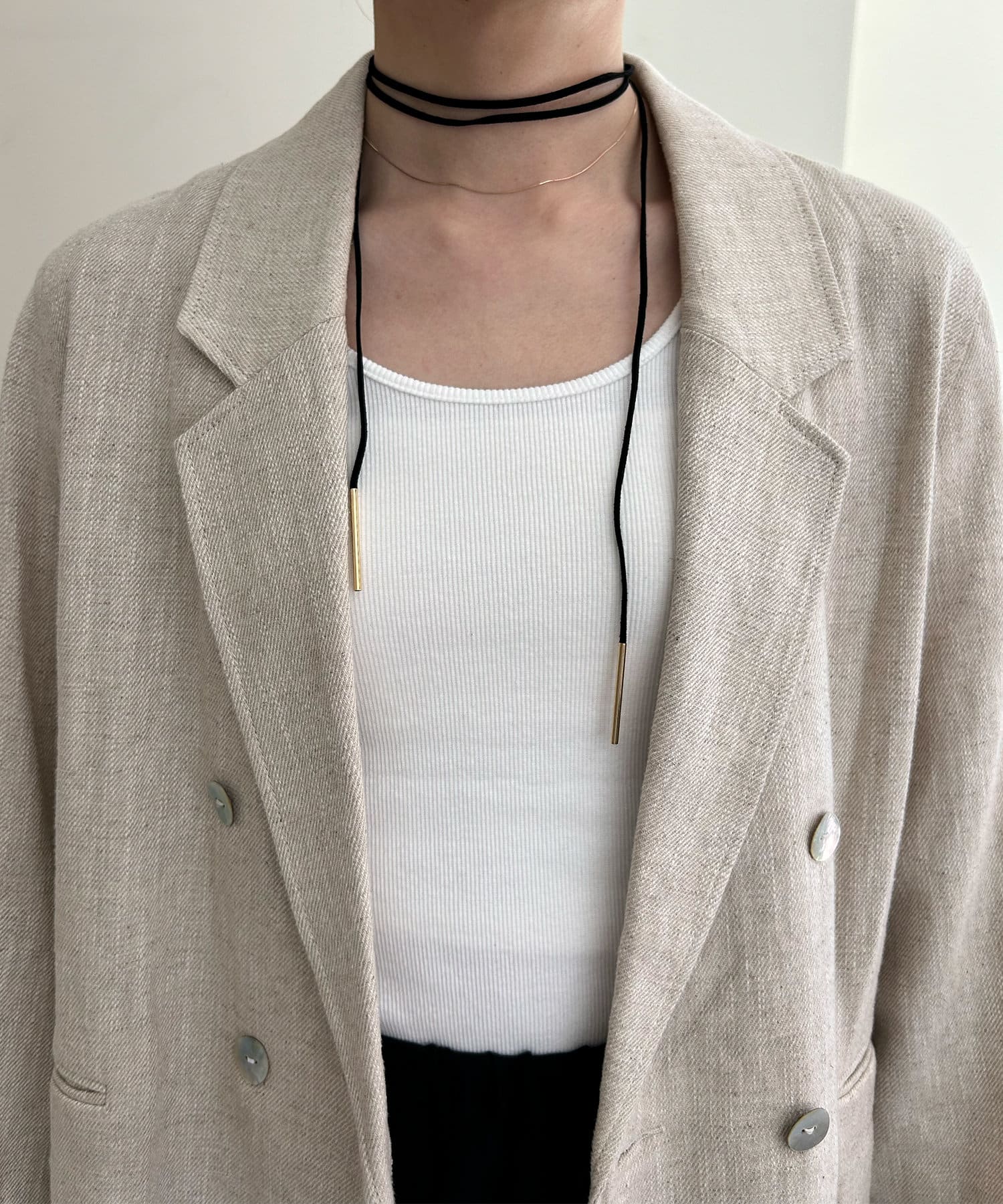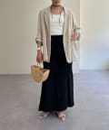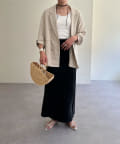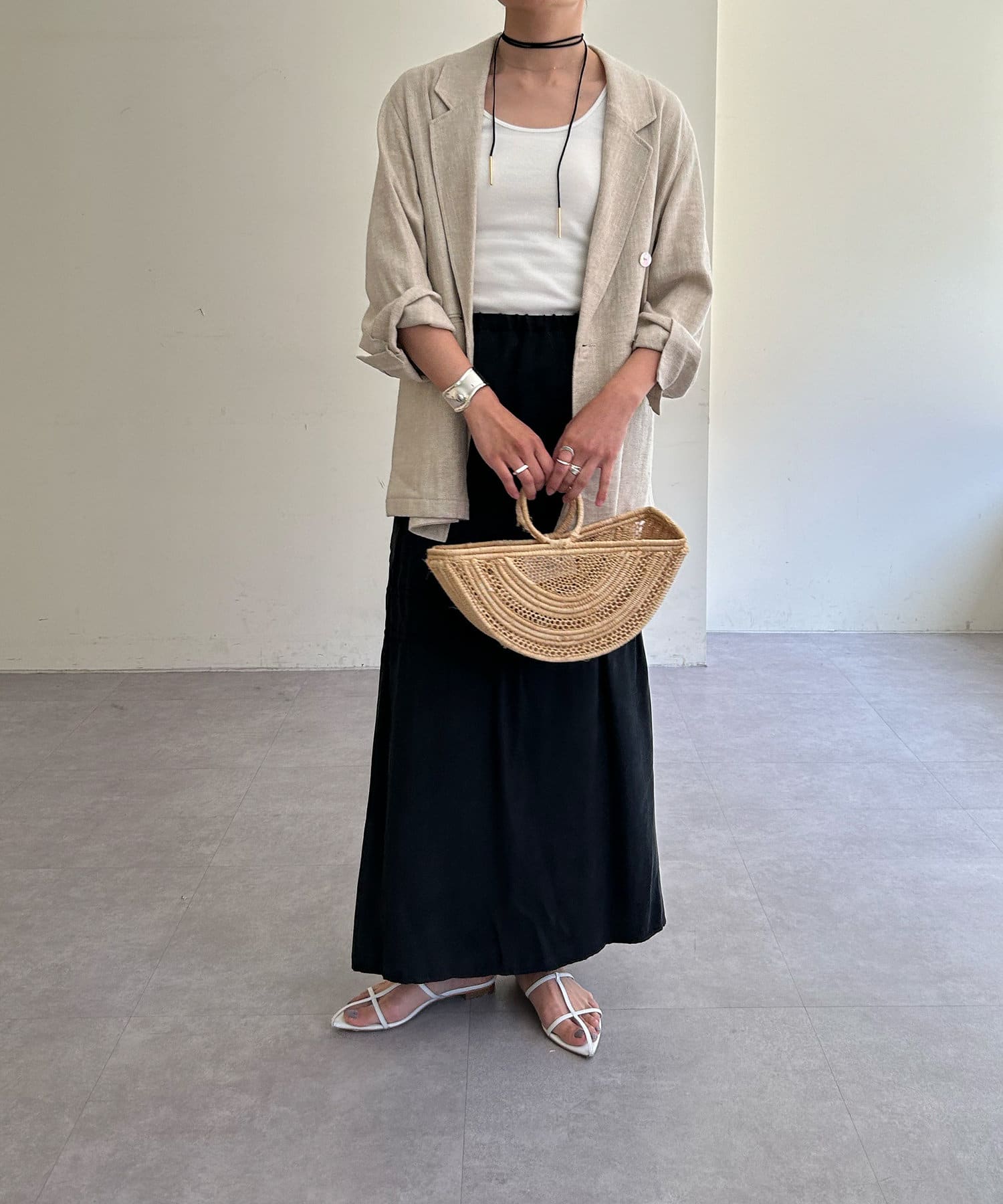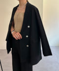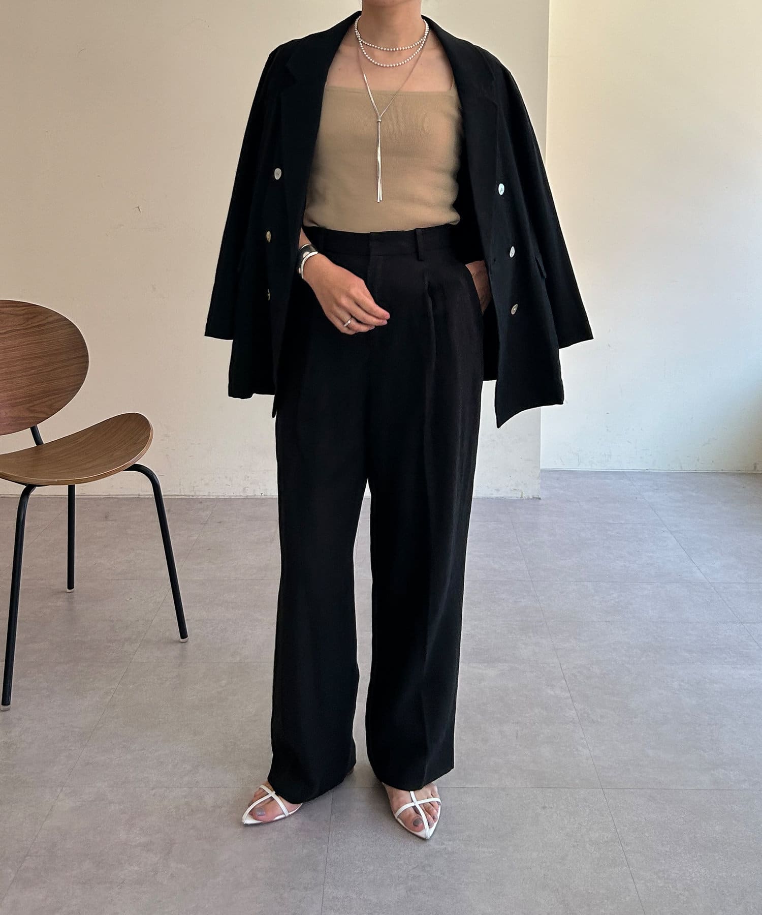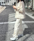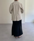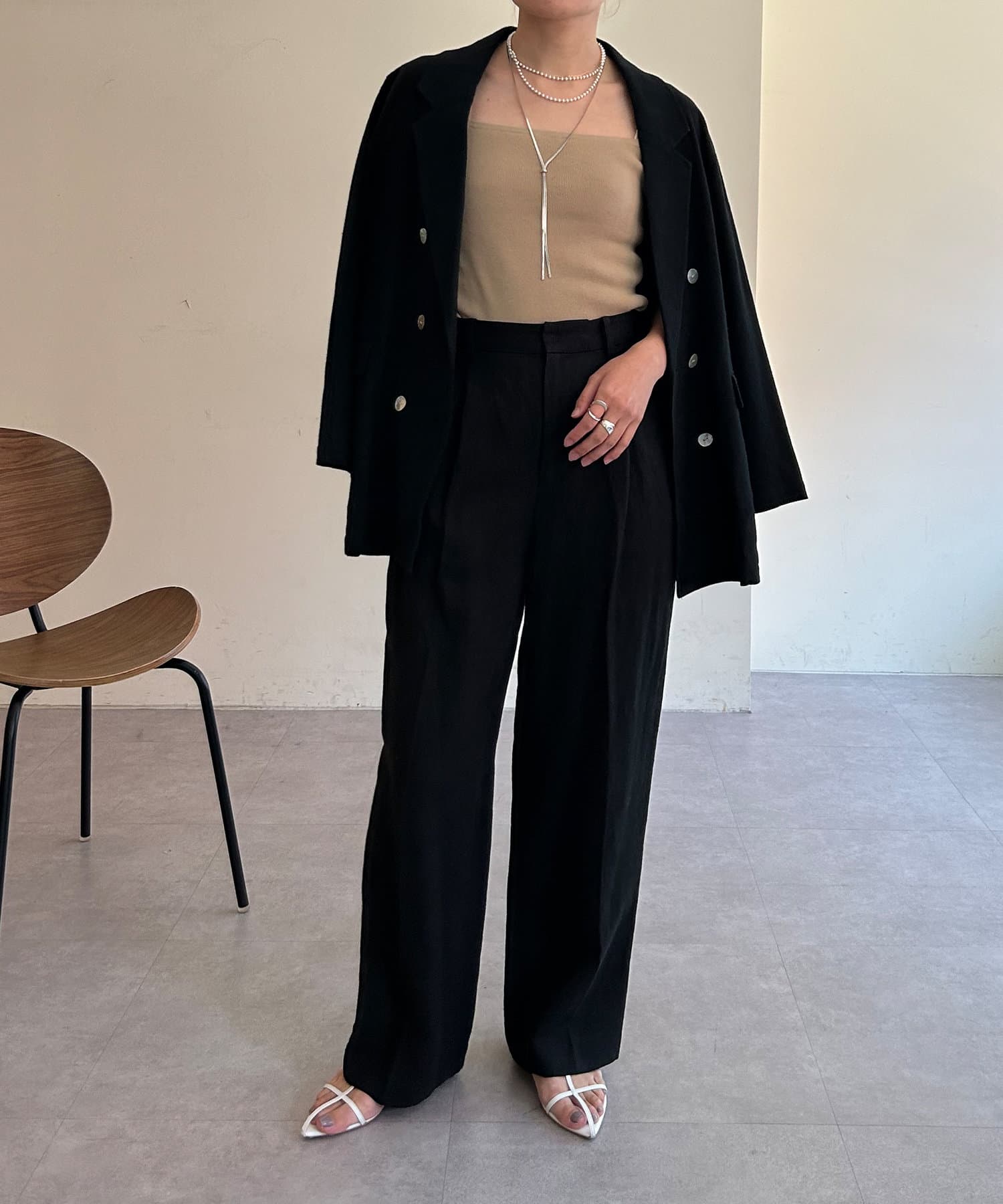 カッチリとしたマニッシュな印象があるダブルジャケットもリネン素材で柔らかい女性らしい雰囲気で着ていただけます。