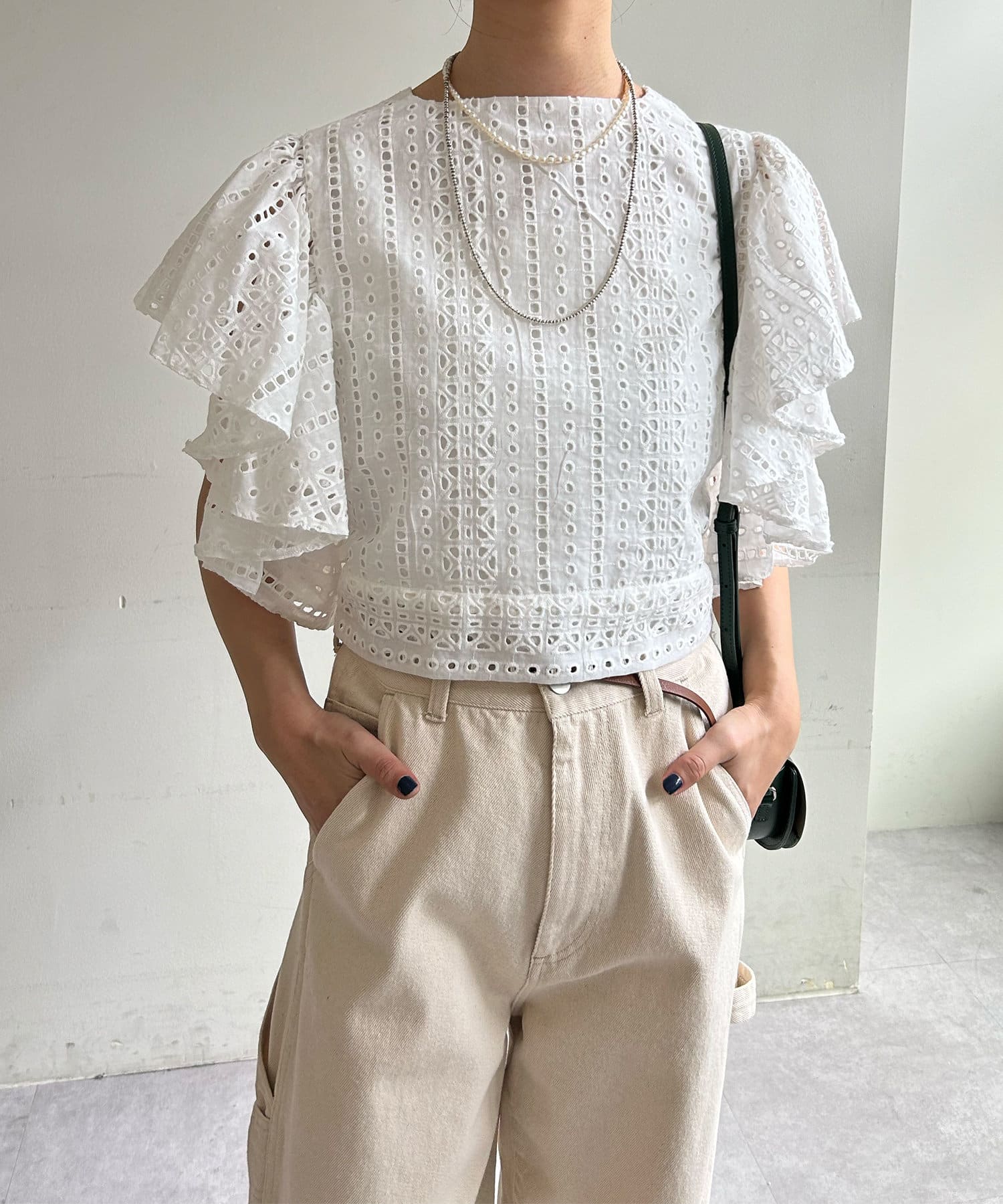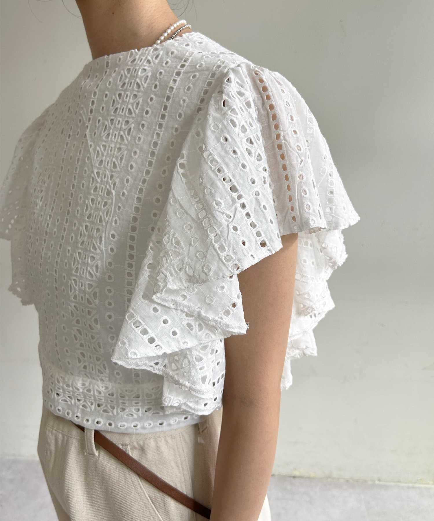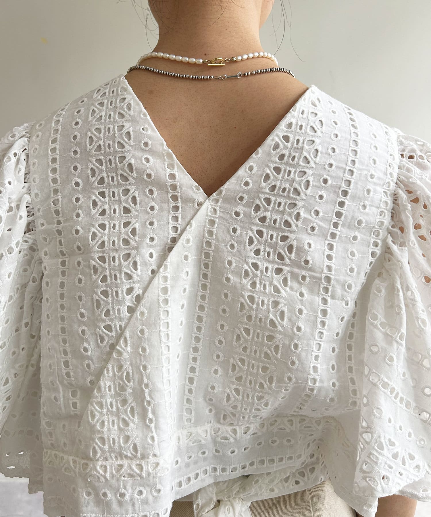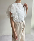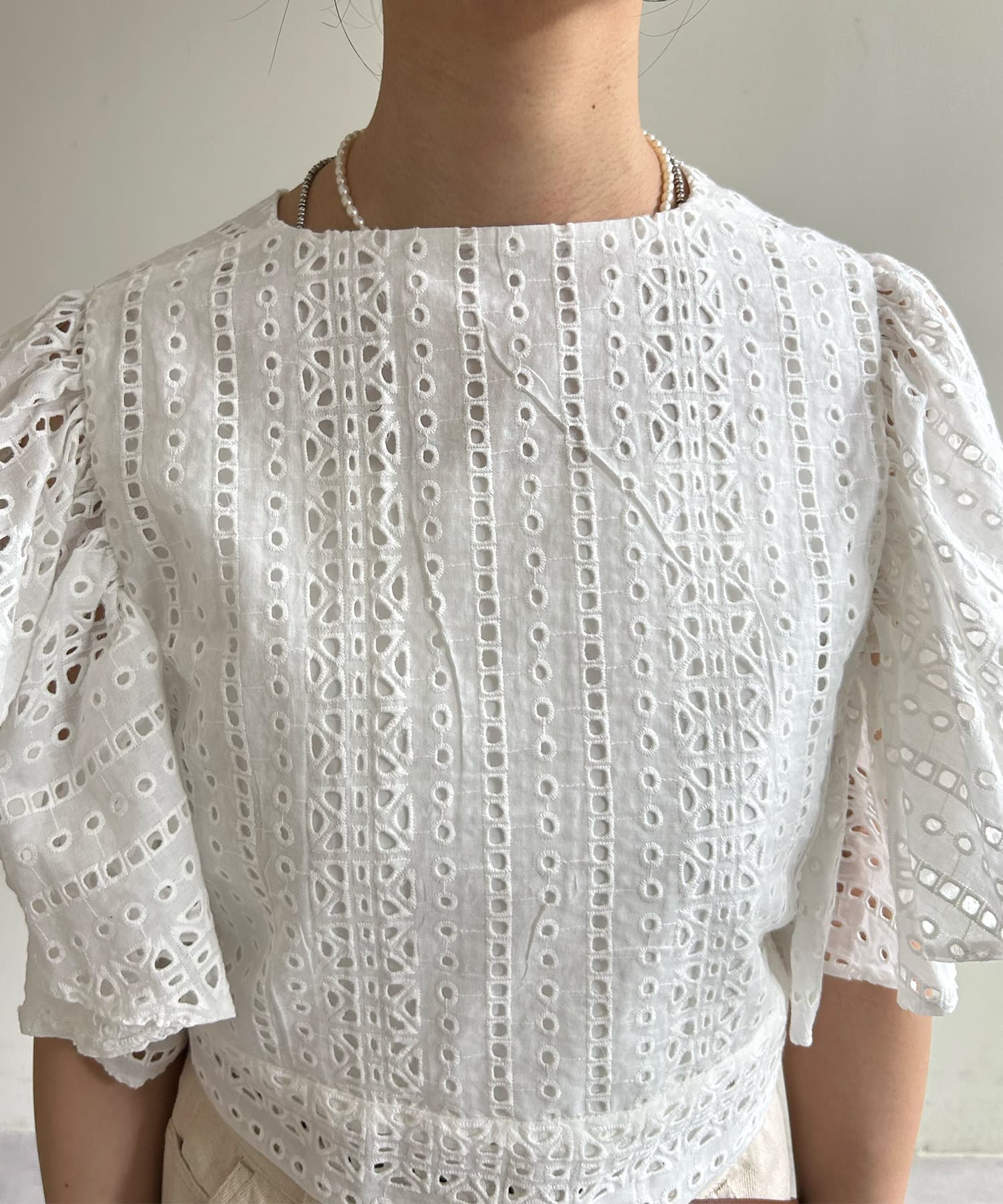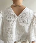 コンパクトなサイズ感ですが、華やかな袖のデザインとカットワークレースで主役級ブラウス。