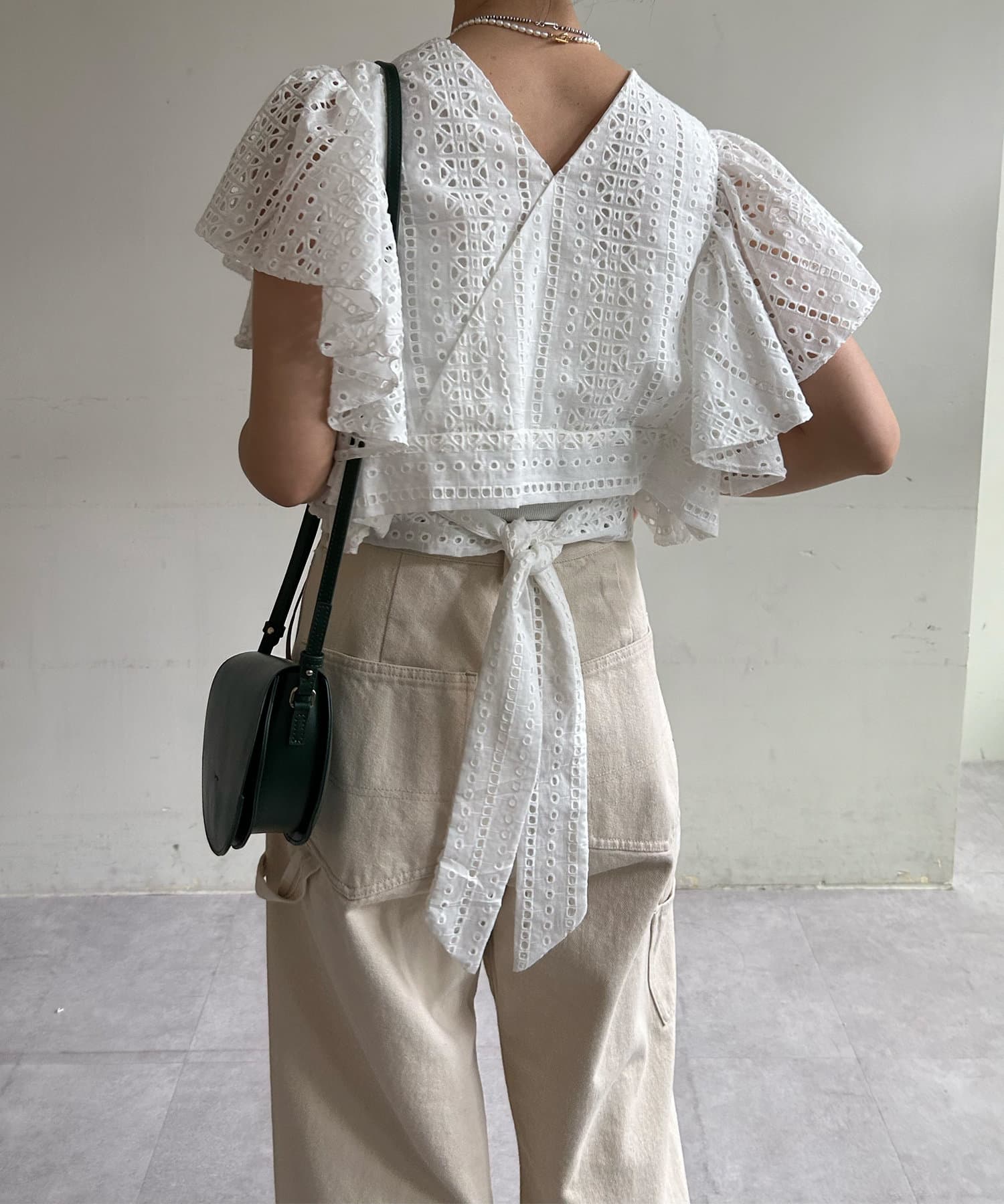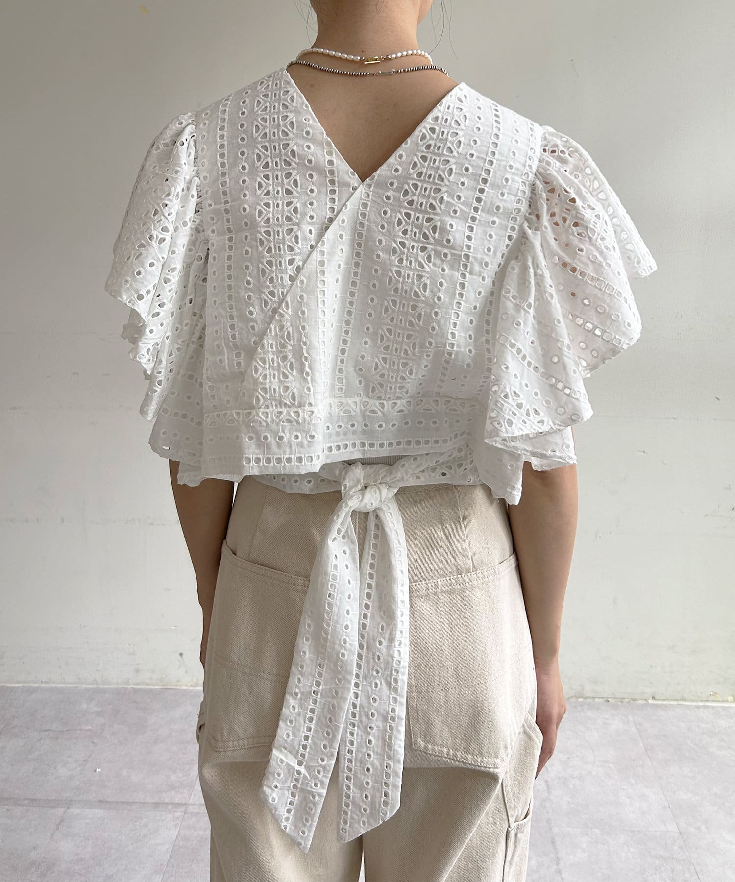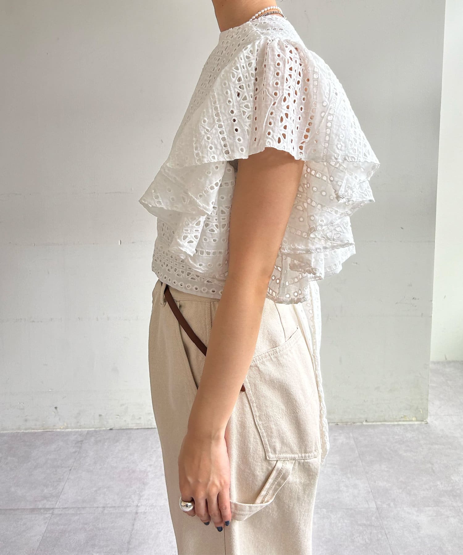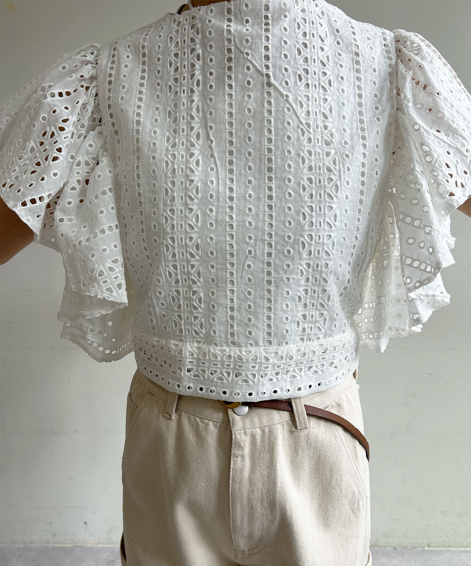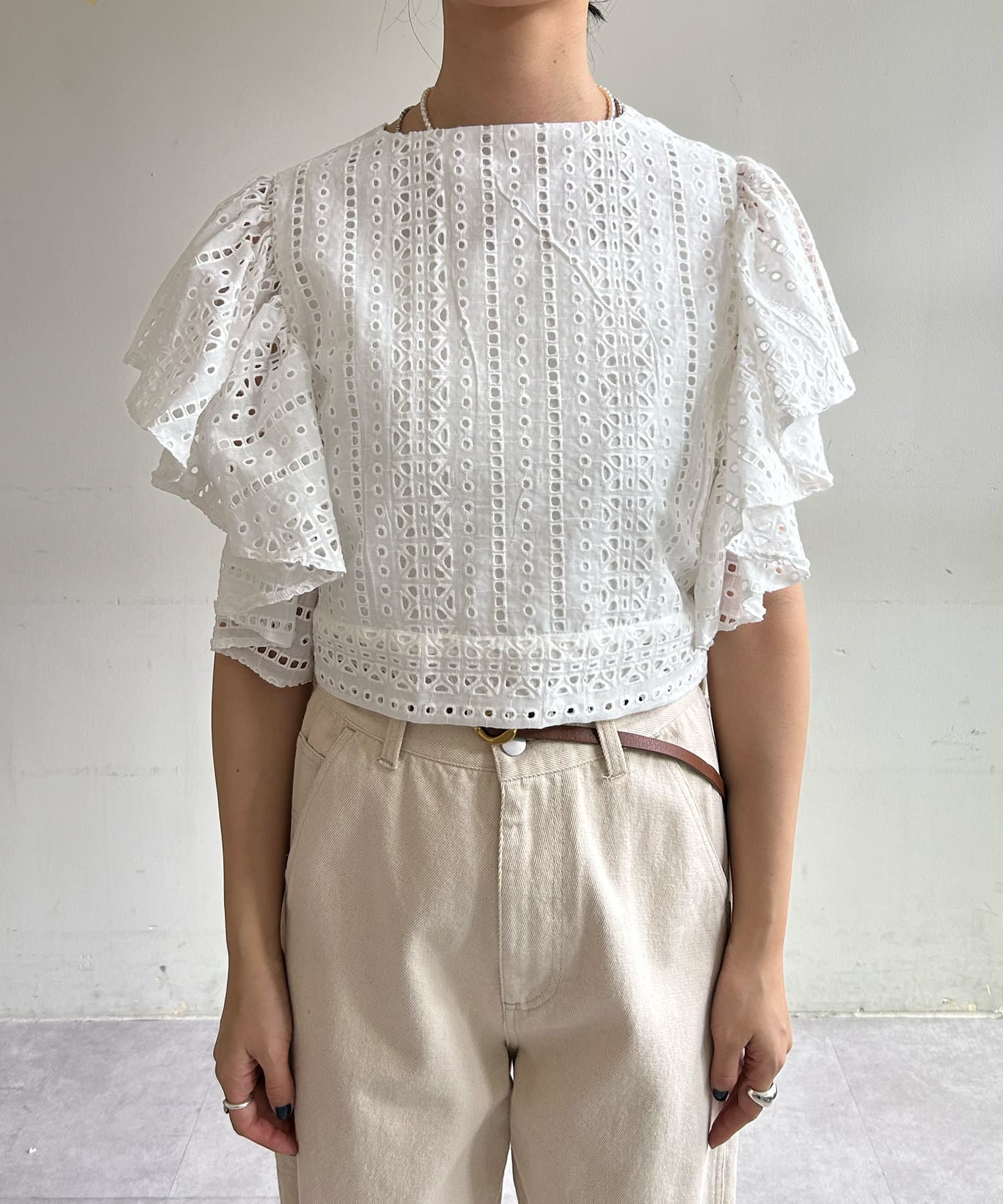 コンパクトなサイズ感ですが、華やかな袖のデザインとカットワークレースで主役級ブラウス。