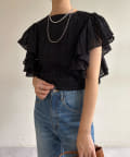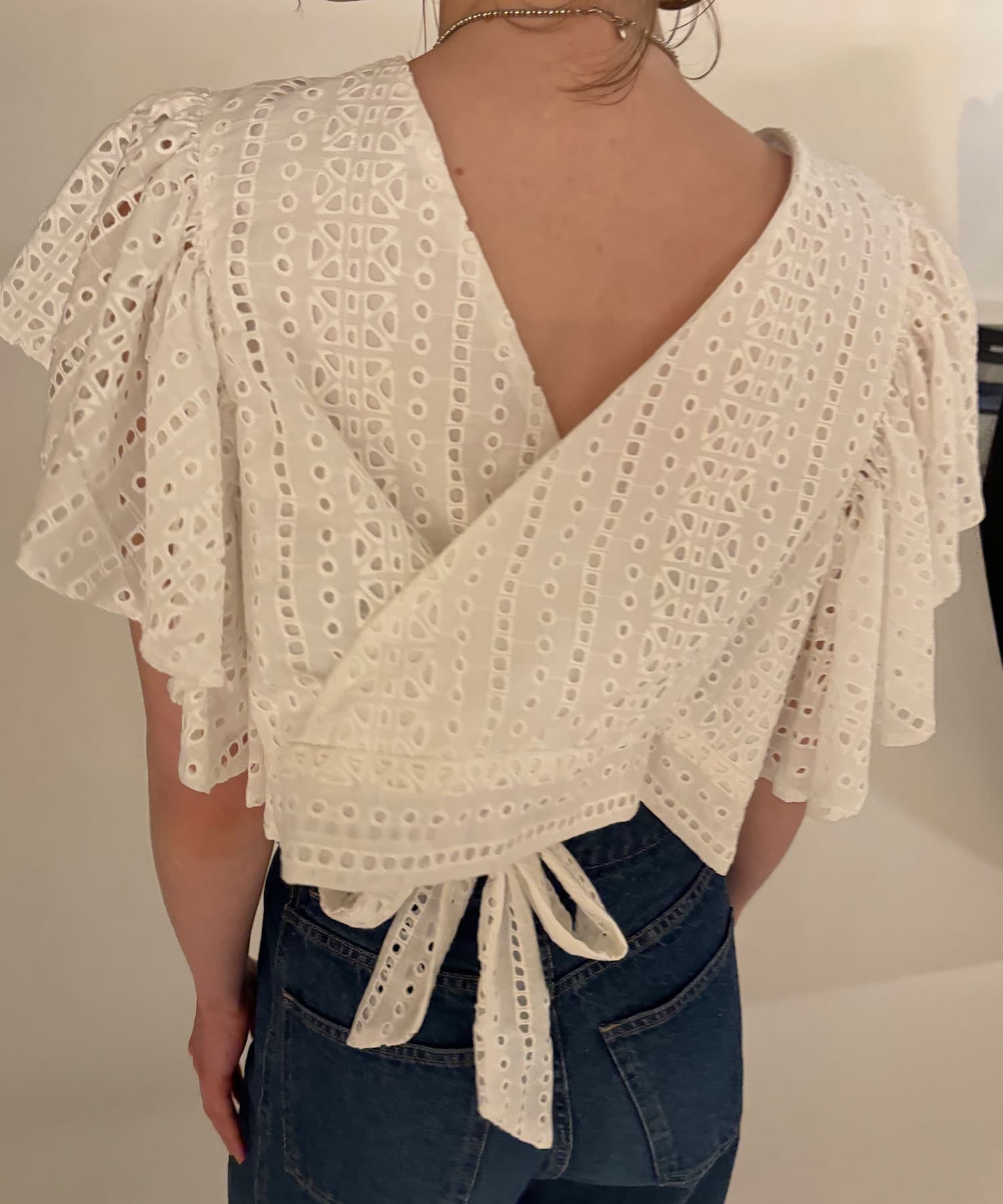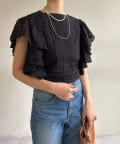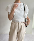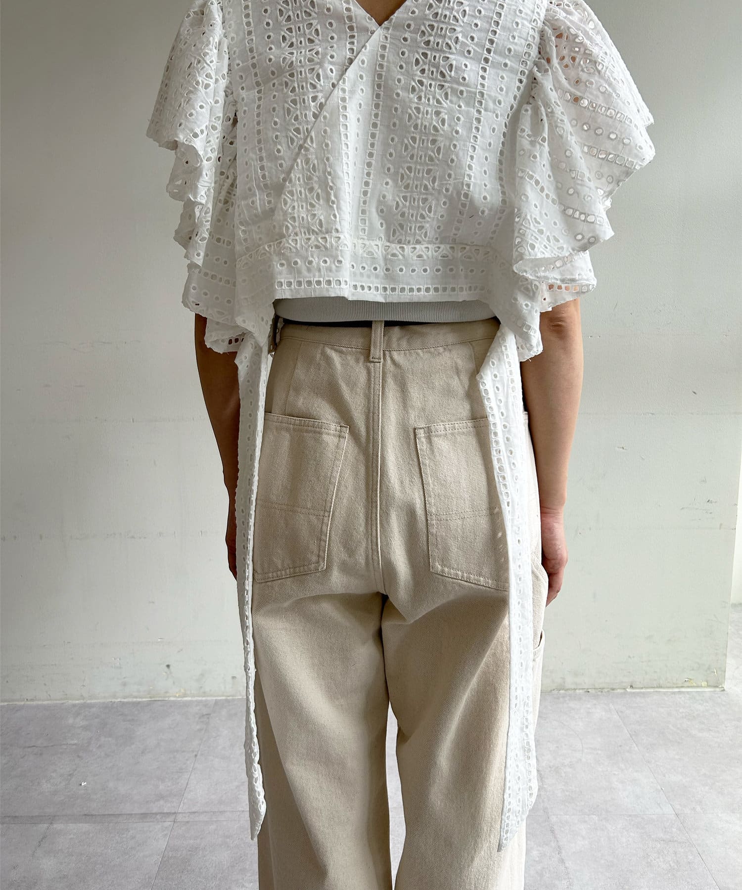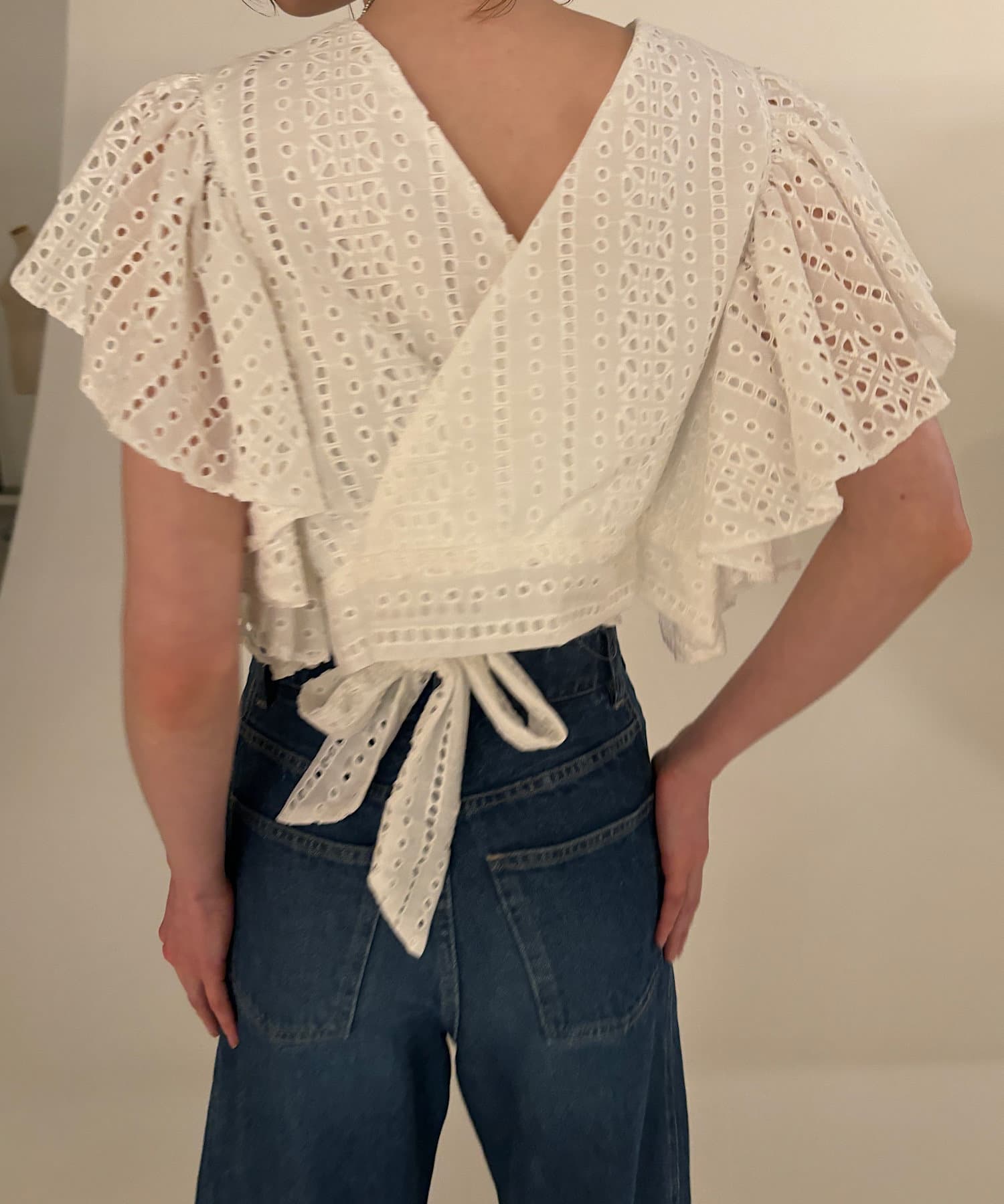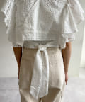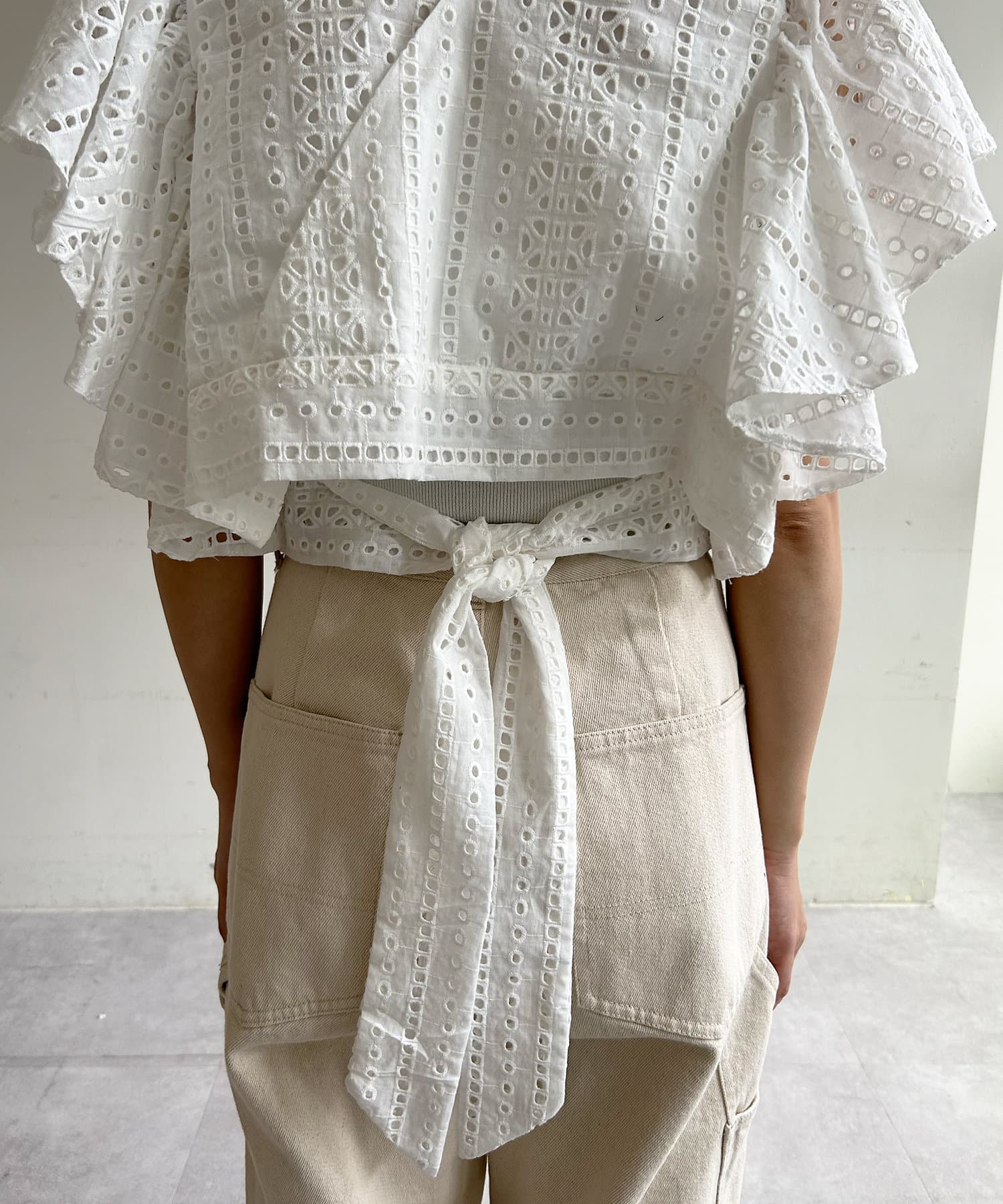 コンパクトなサイズ感ですが、華やかな袖のデザインとカットワークレースで主役級ブラウス。