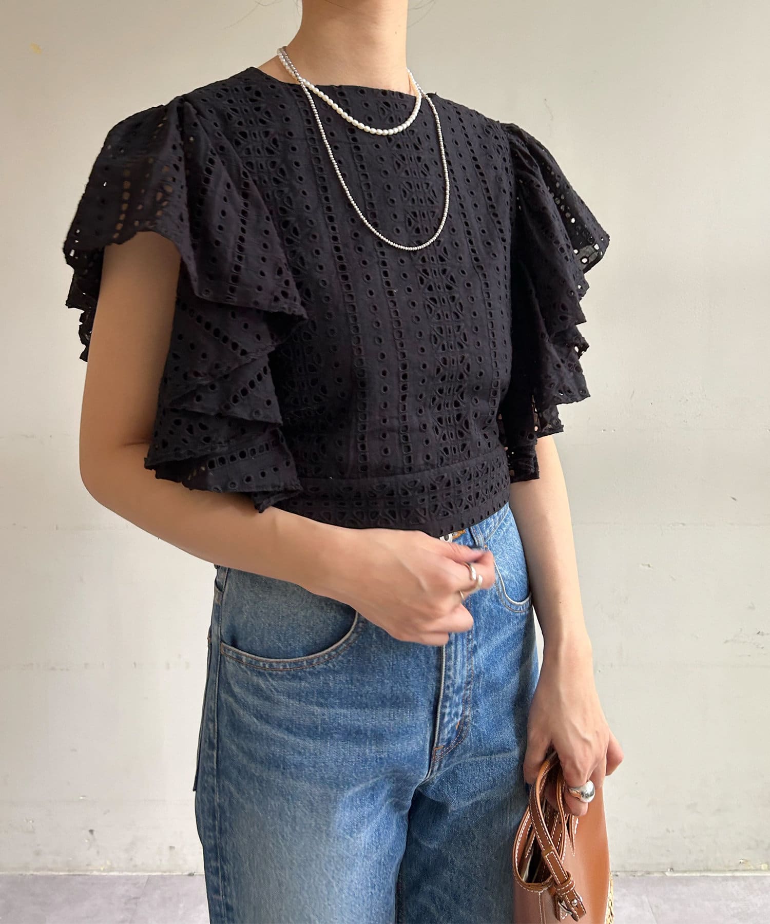♦1枚で華やかなコーディネートが完成するカットワークレースブラウス