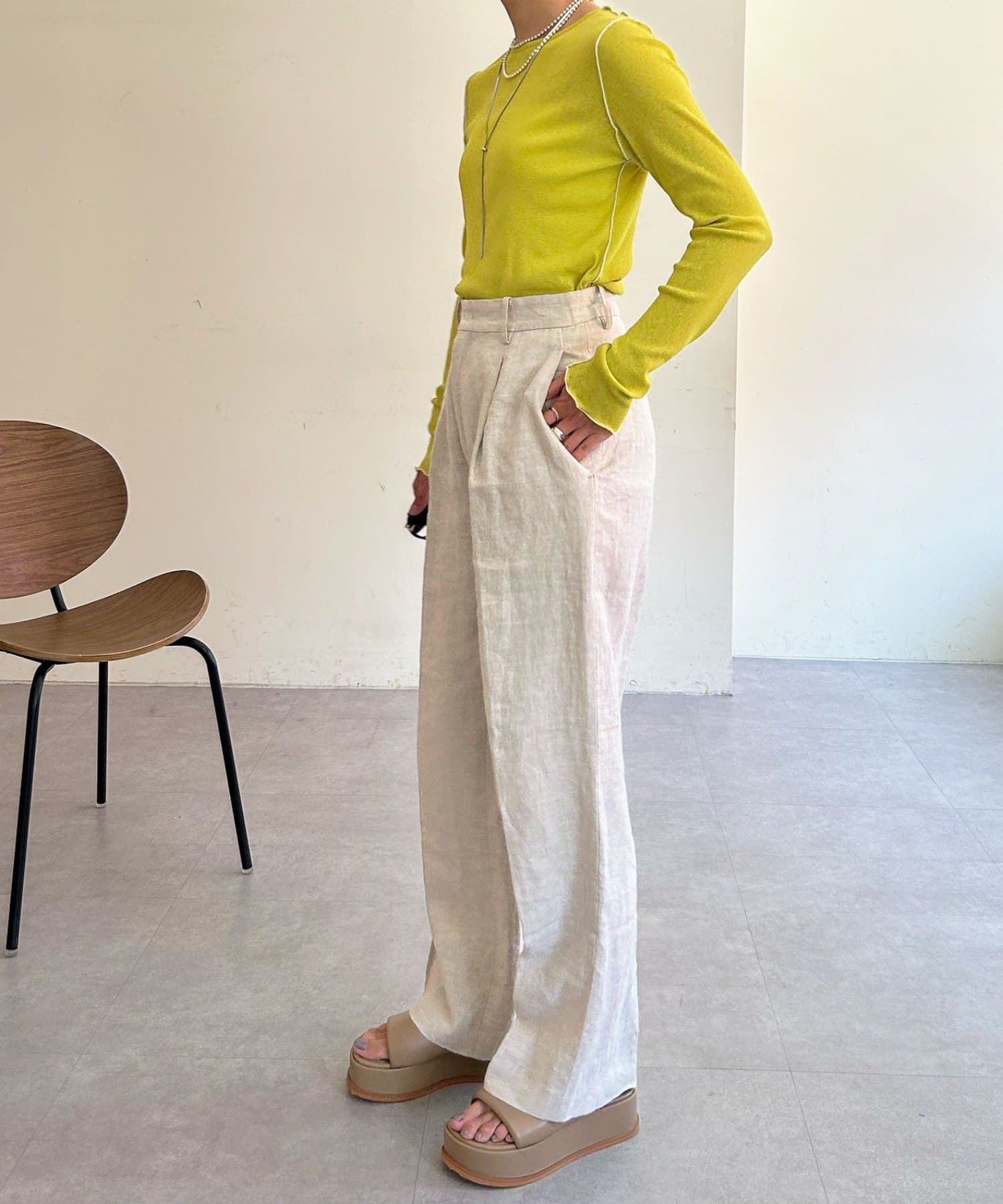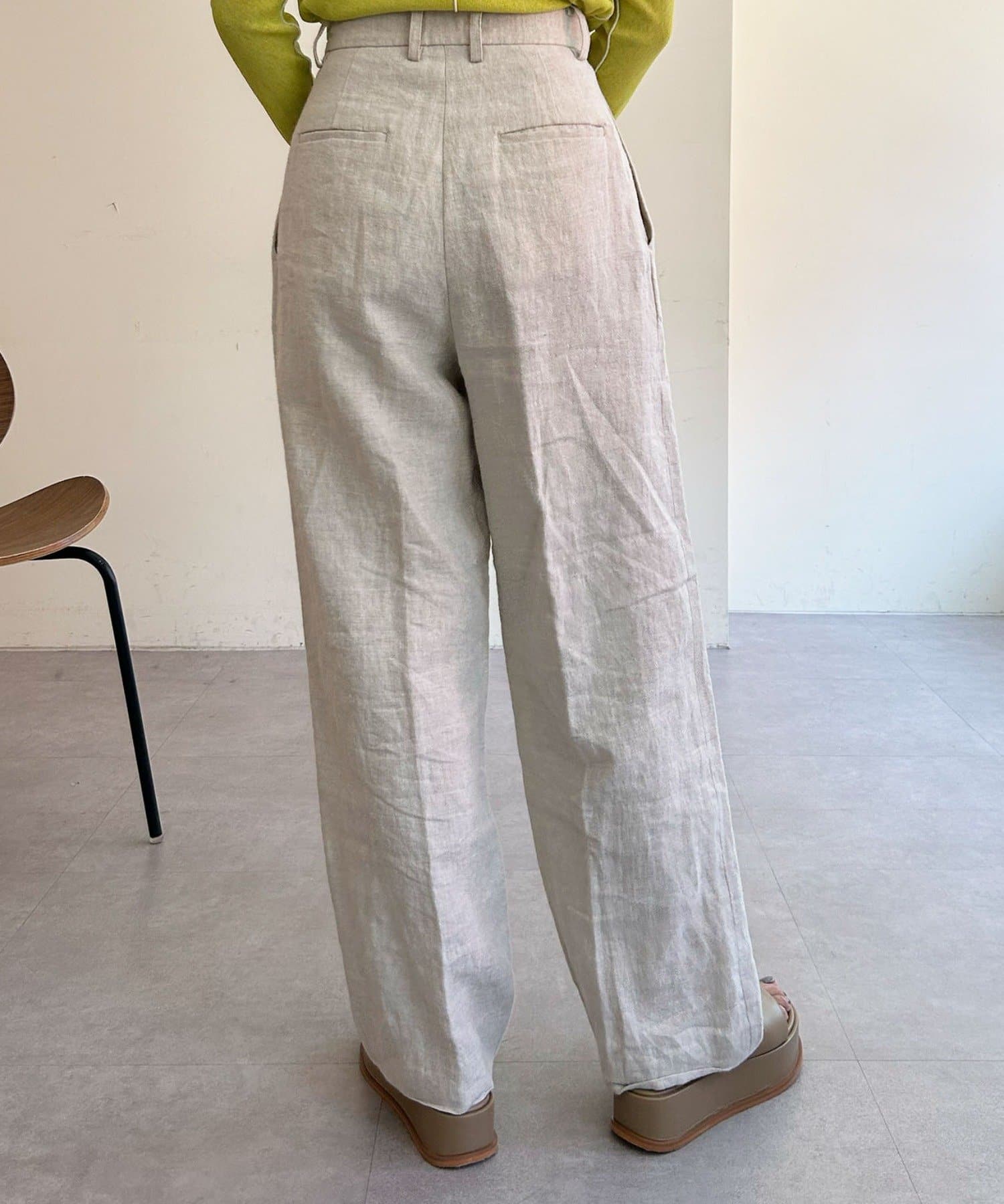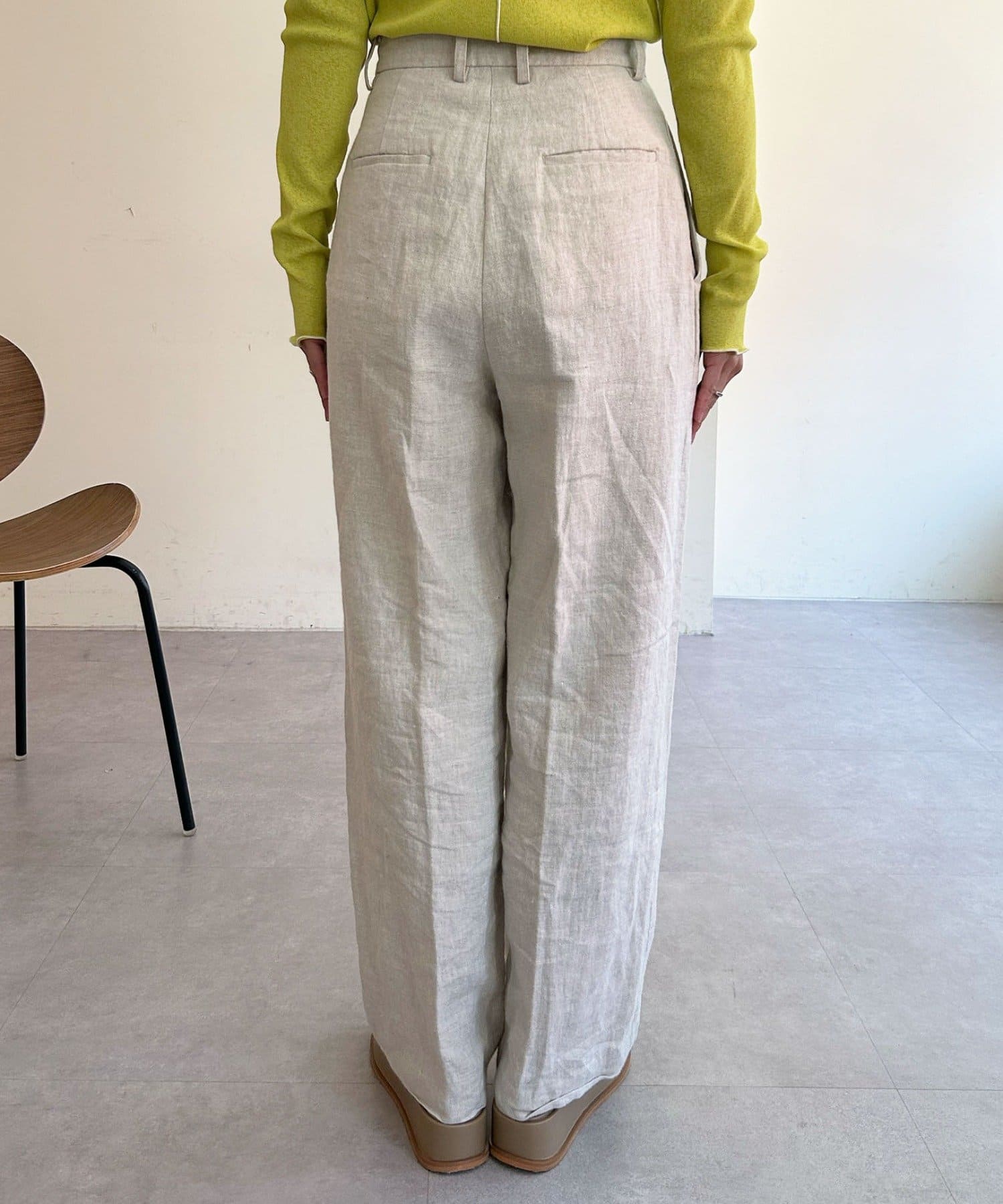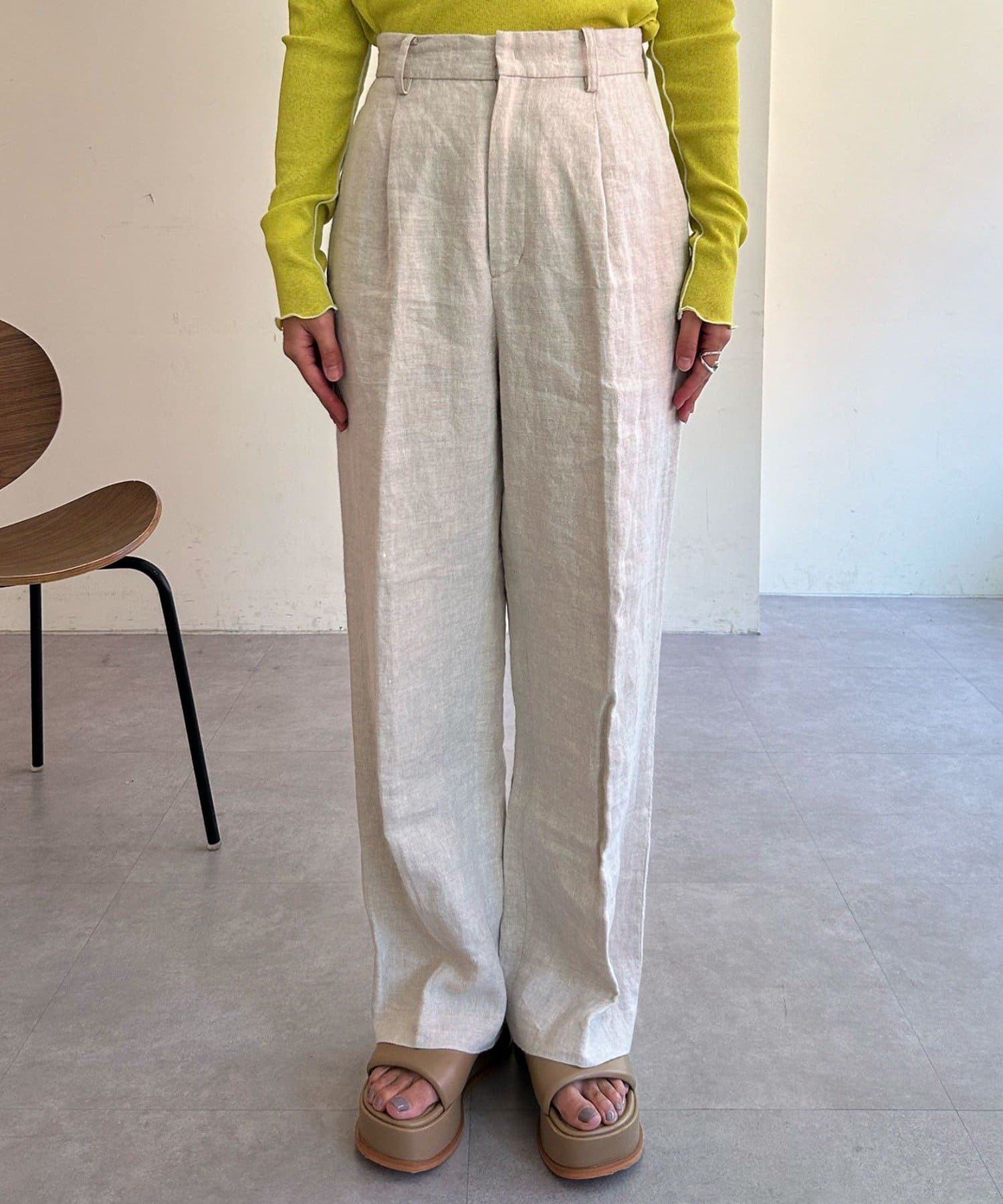 夏に涼しく履けてスタイリングが決まりやすいリネンタックパンツ