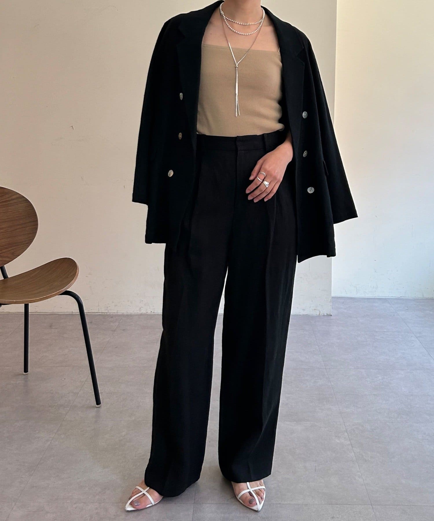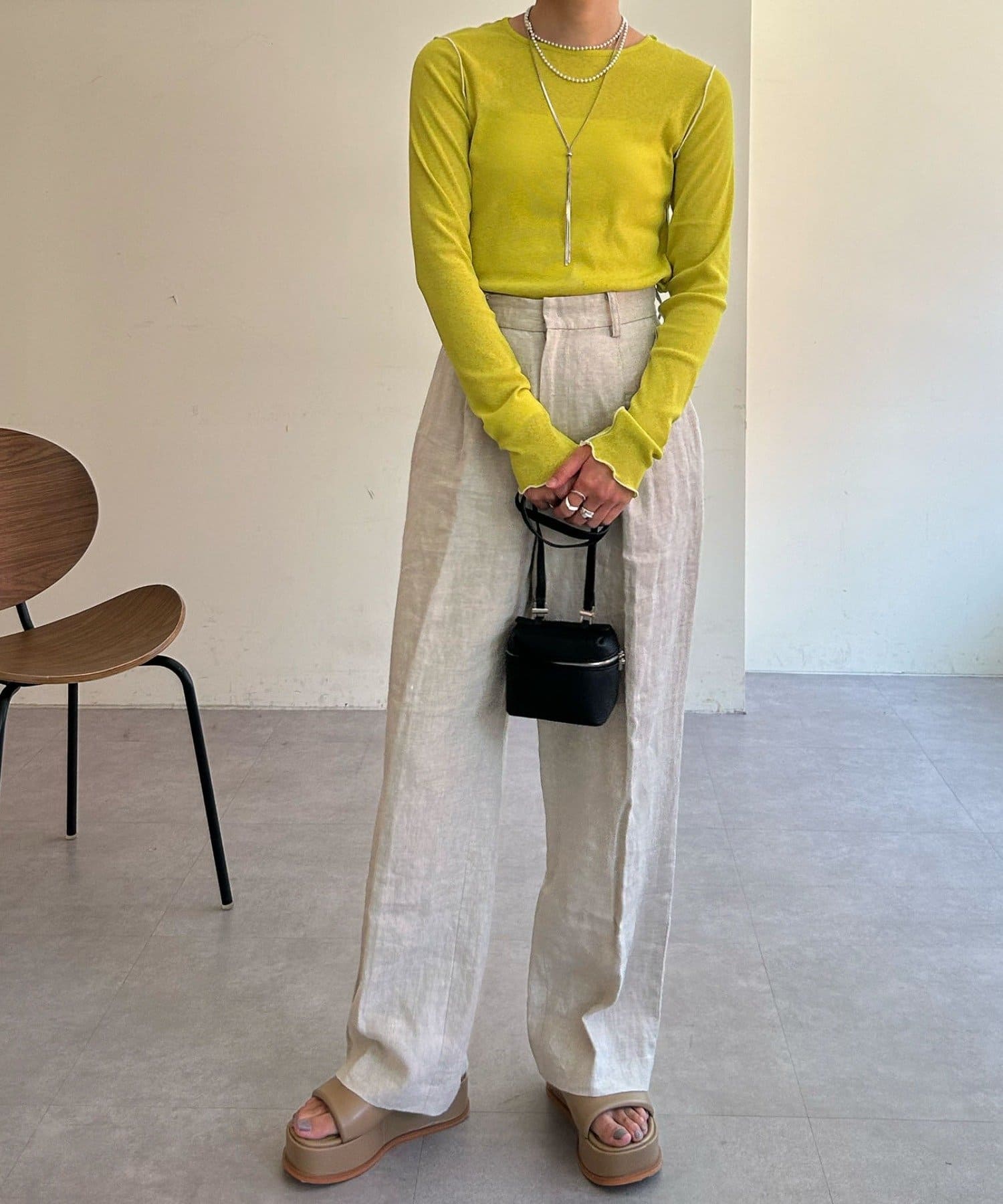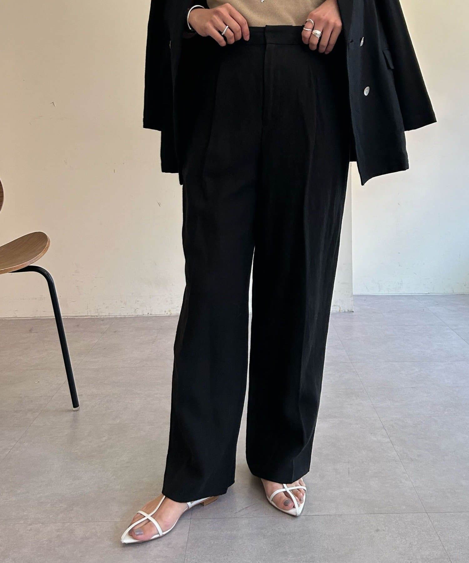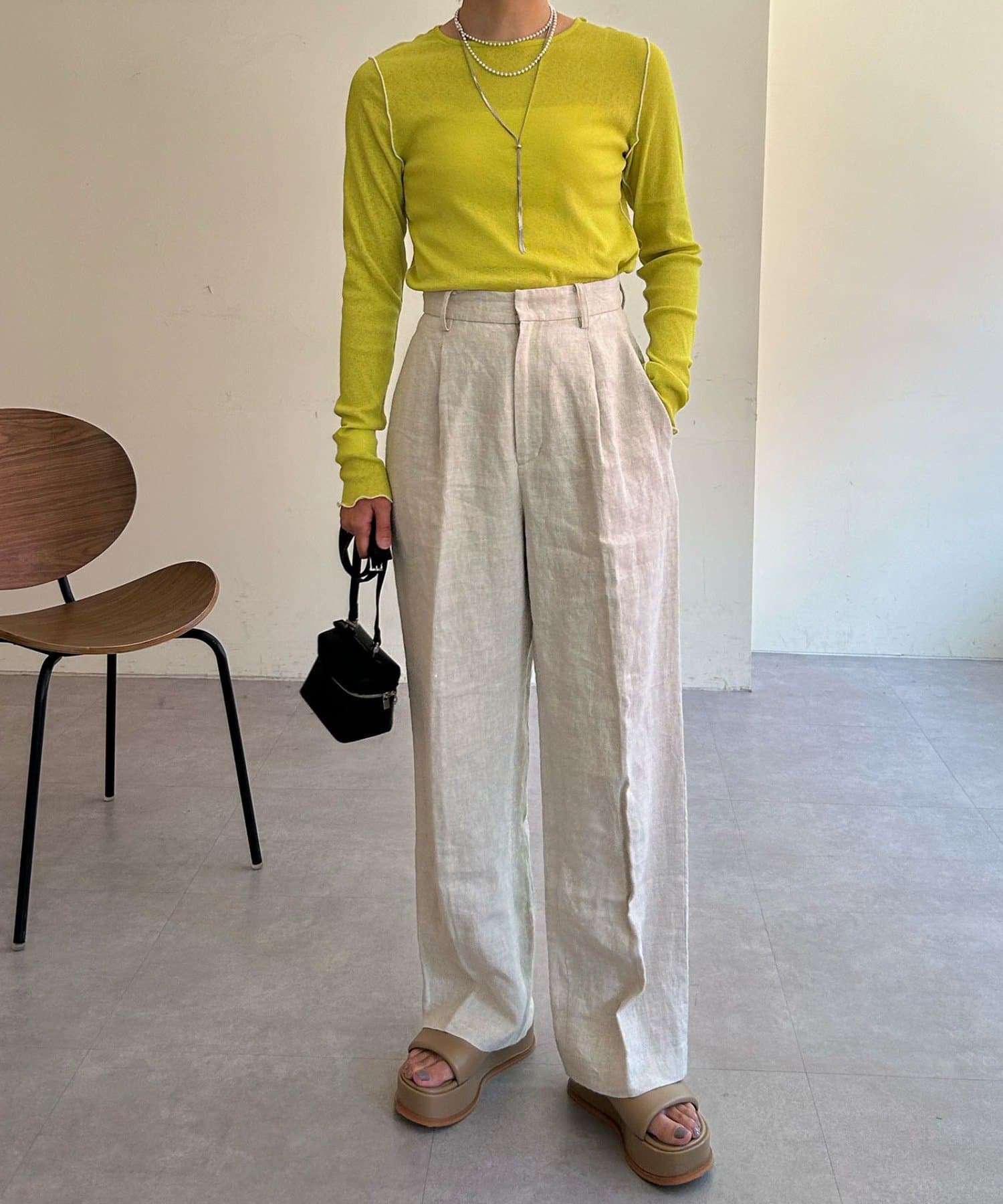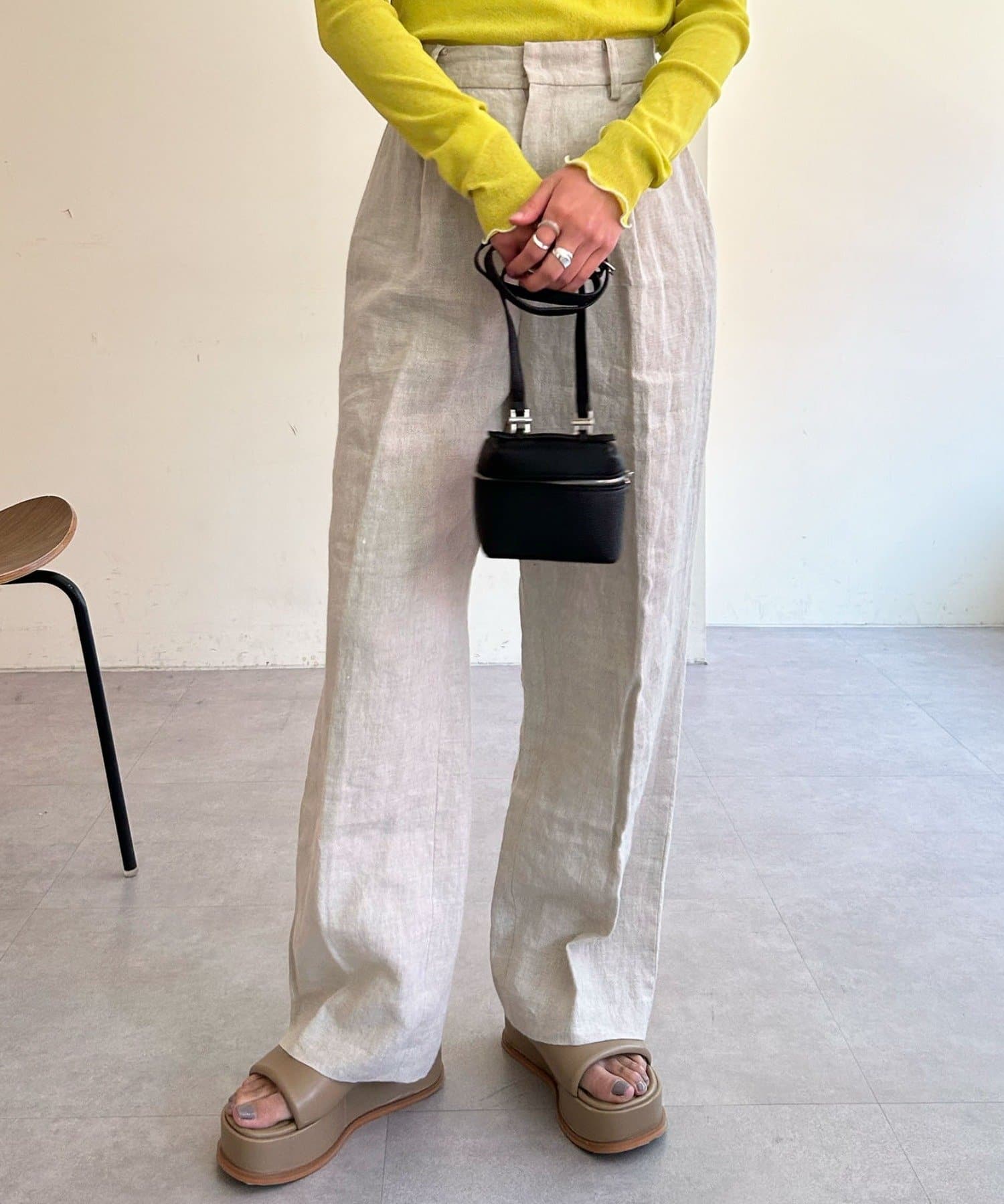 夏に涼しく履けてスタイリングが決まりやすいリネンタックパンツ