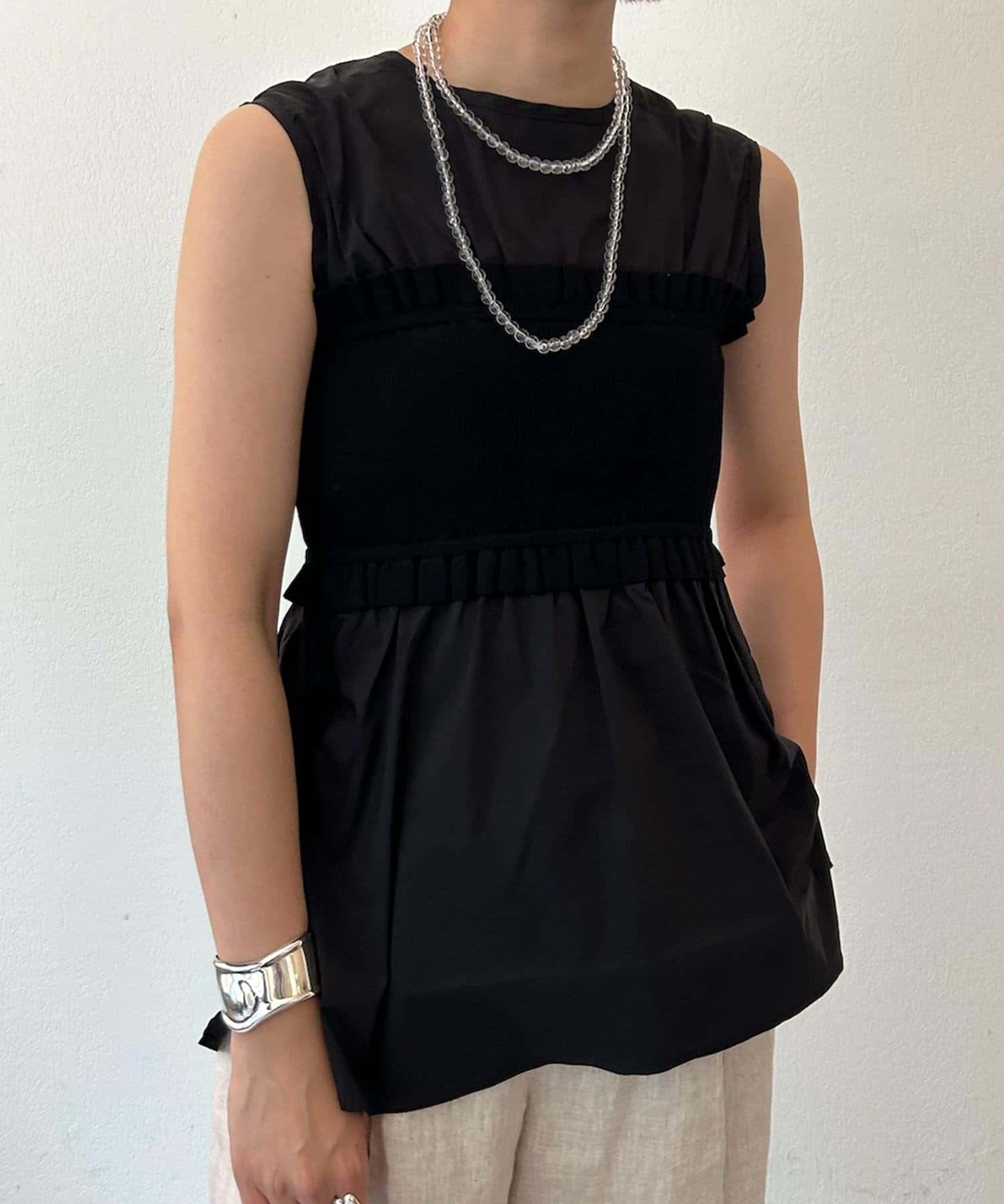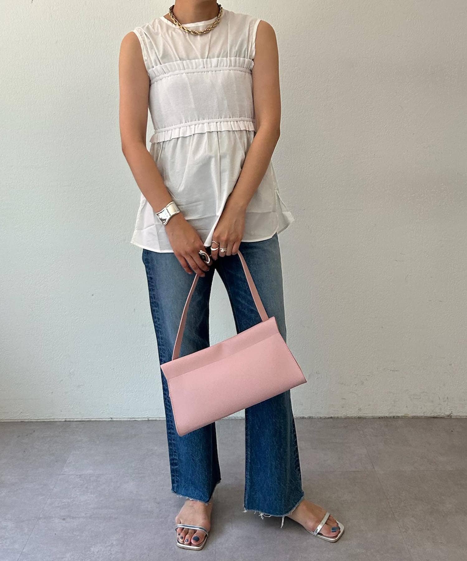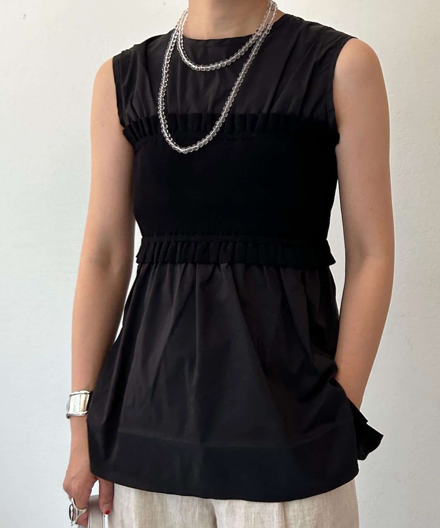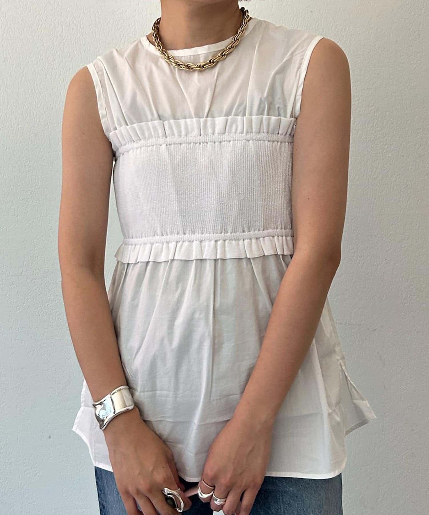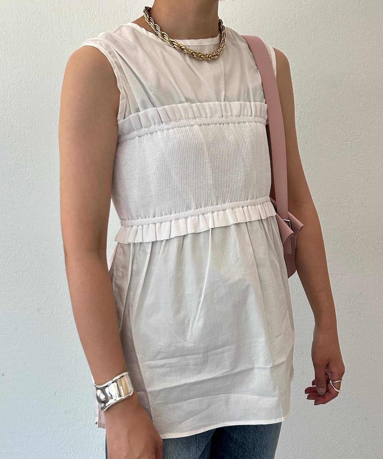 異素材を組み合わせることでスタイリングにこなれ感もプラス。