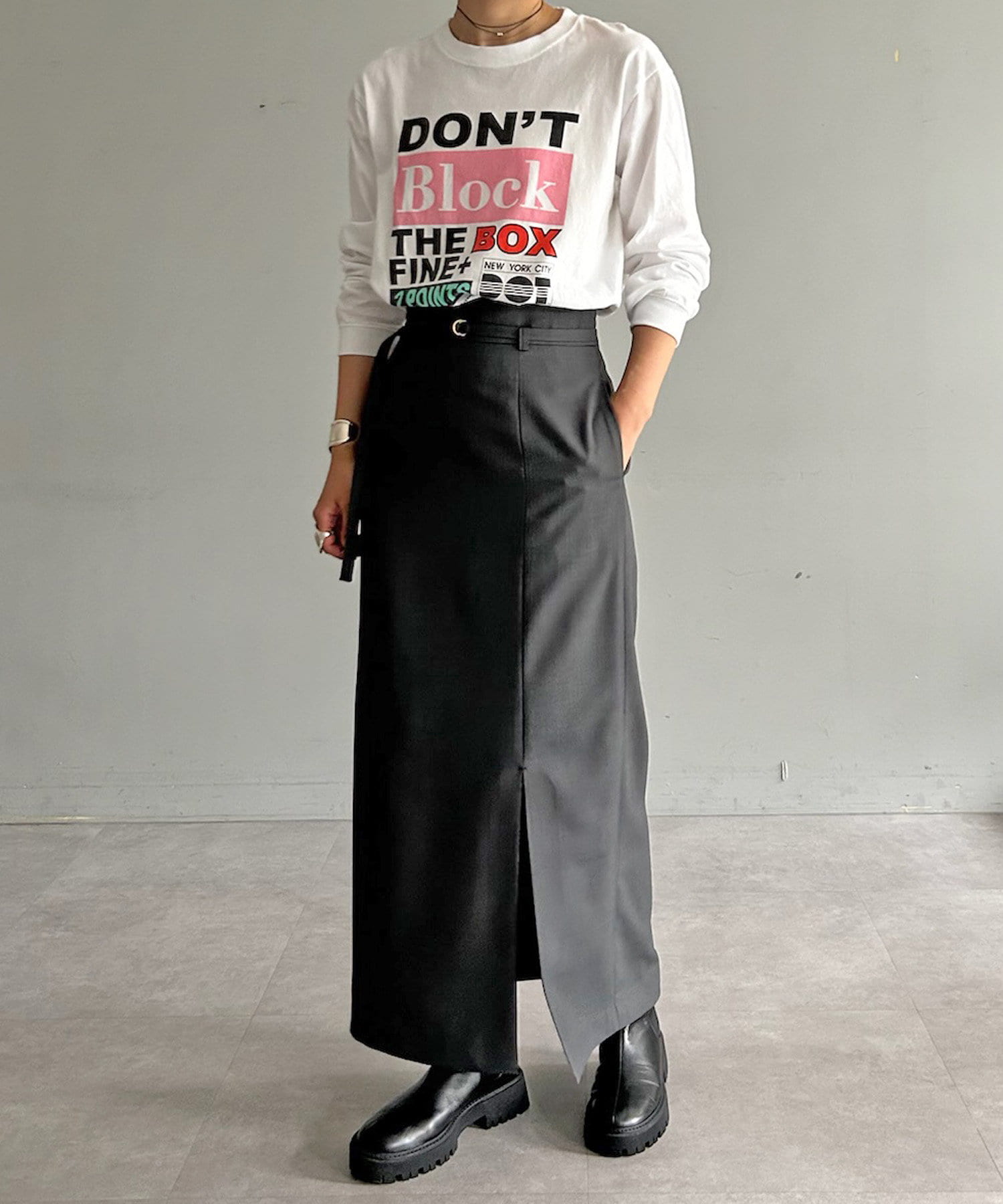 【SHENERY】ベルテッドタイトマキシスカート