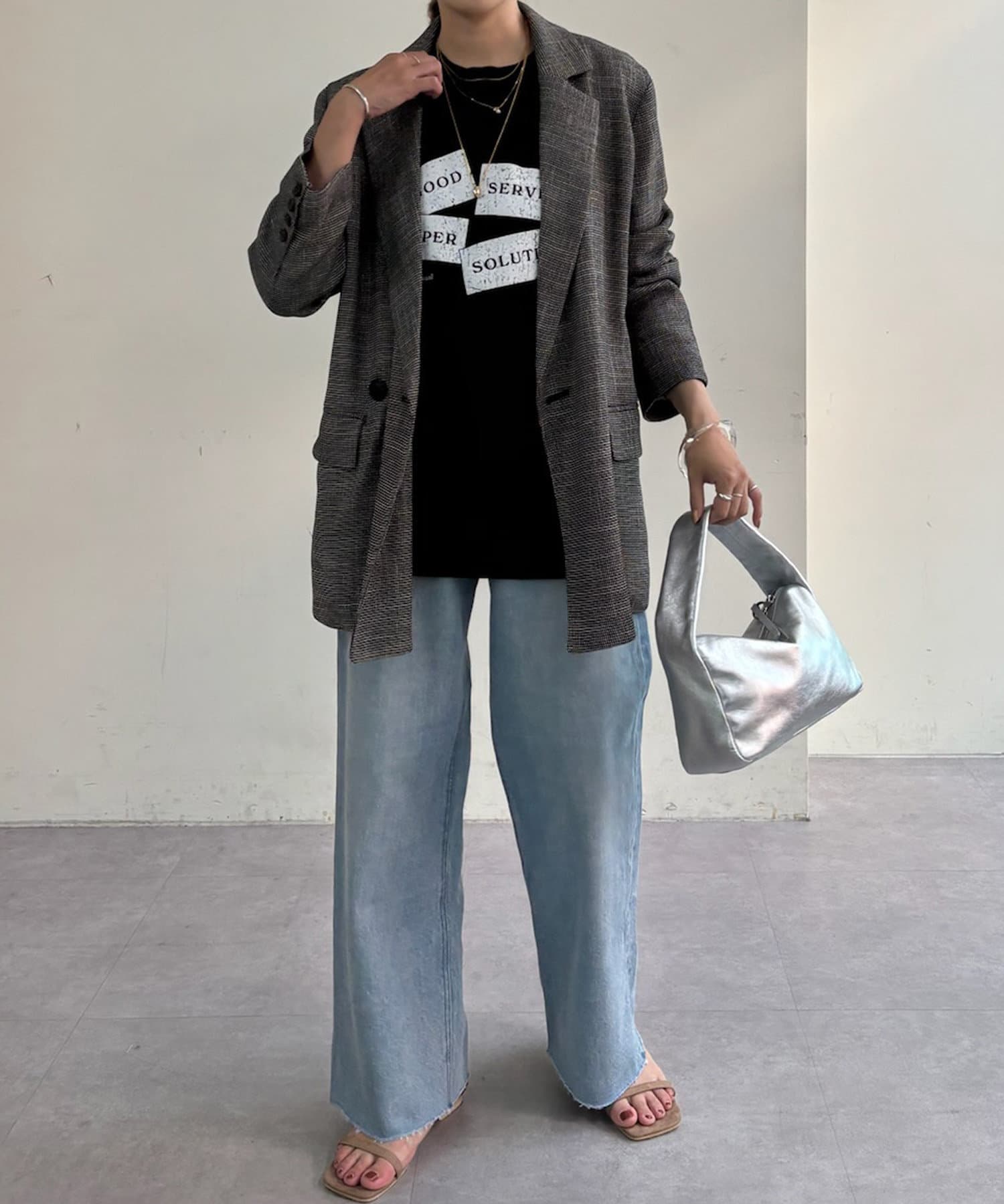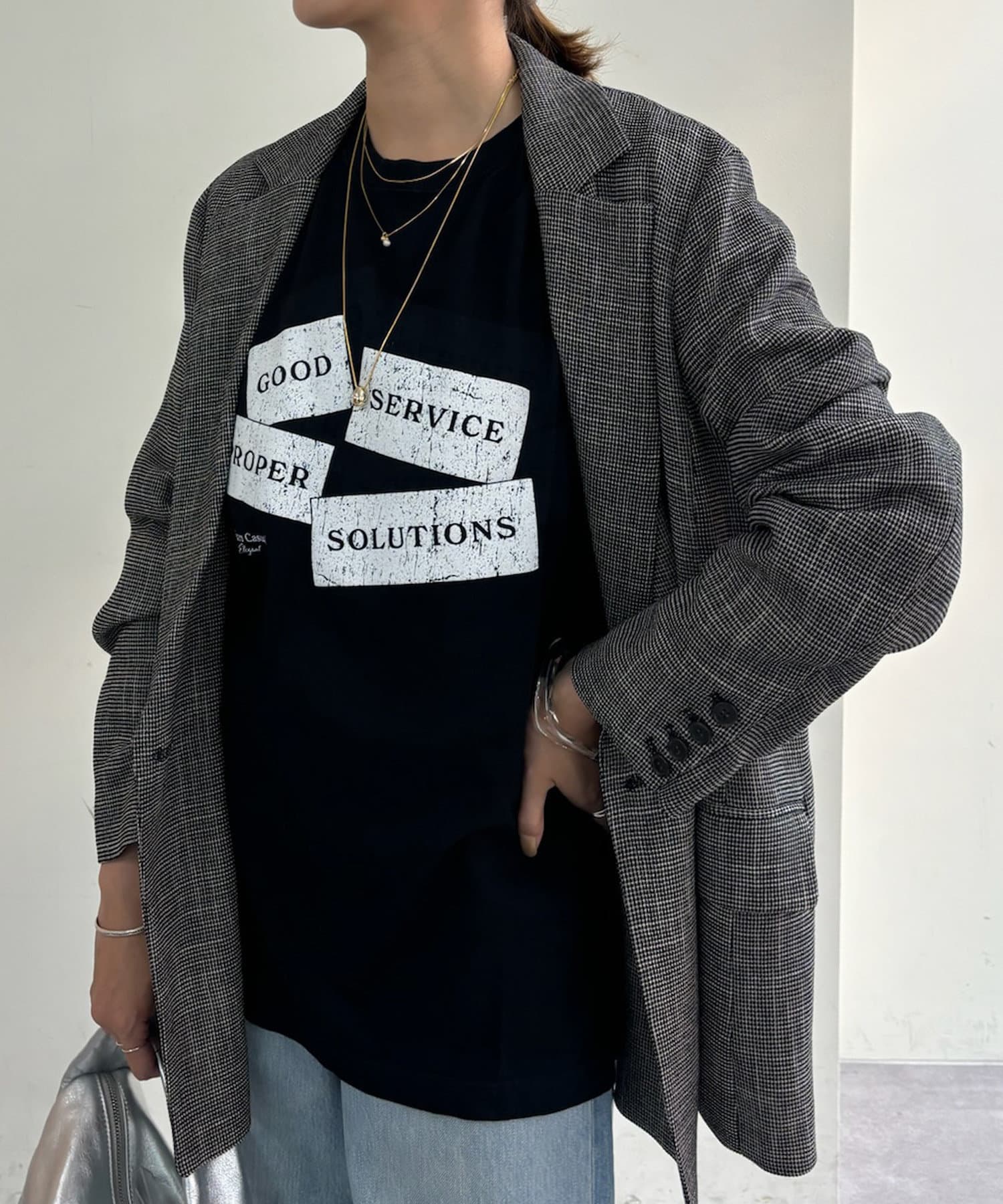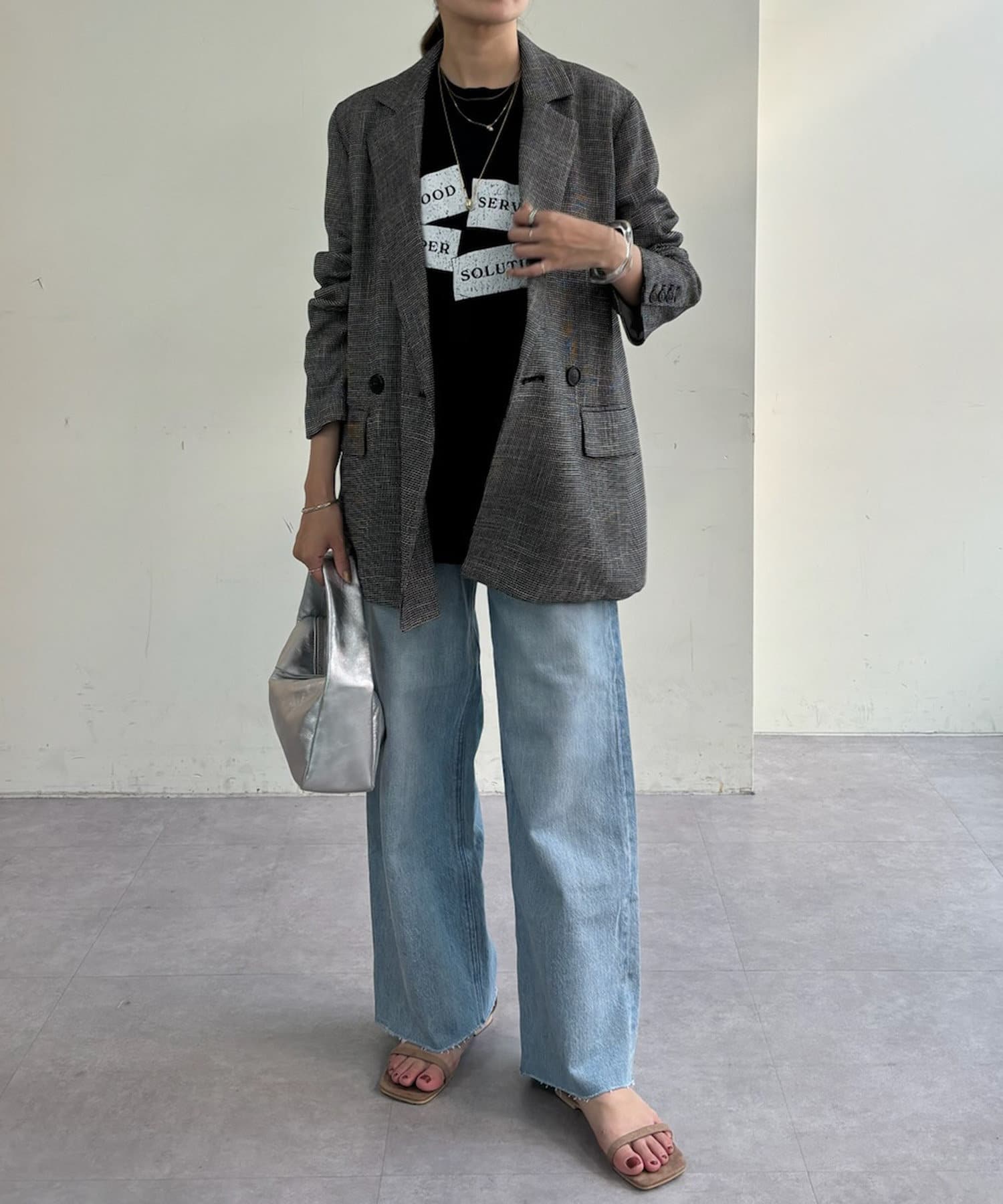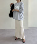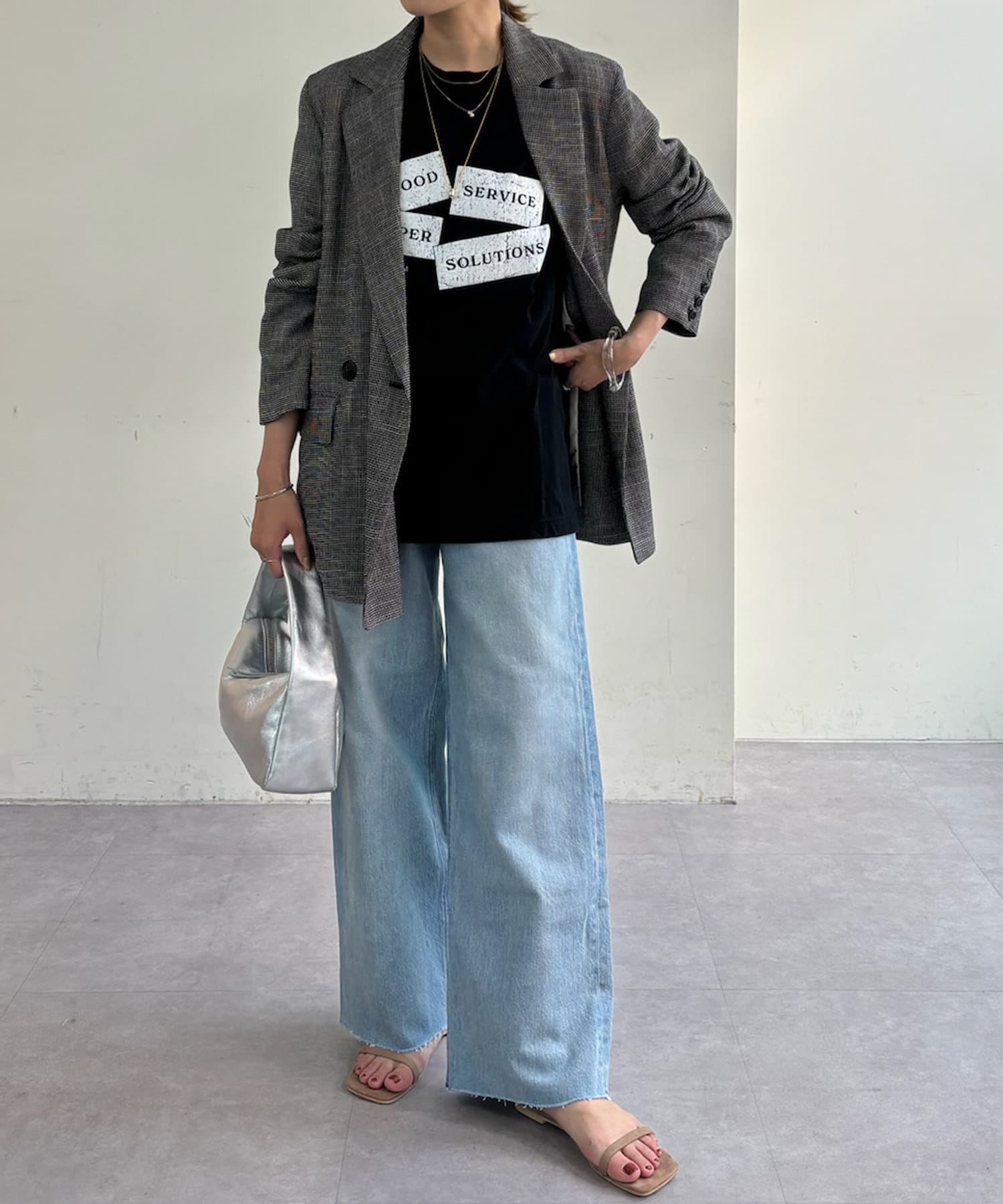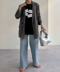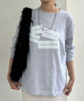 胸元のプリントは目を惹きながらも絶妙なデザインで、コーディネートのアクセントに。