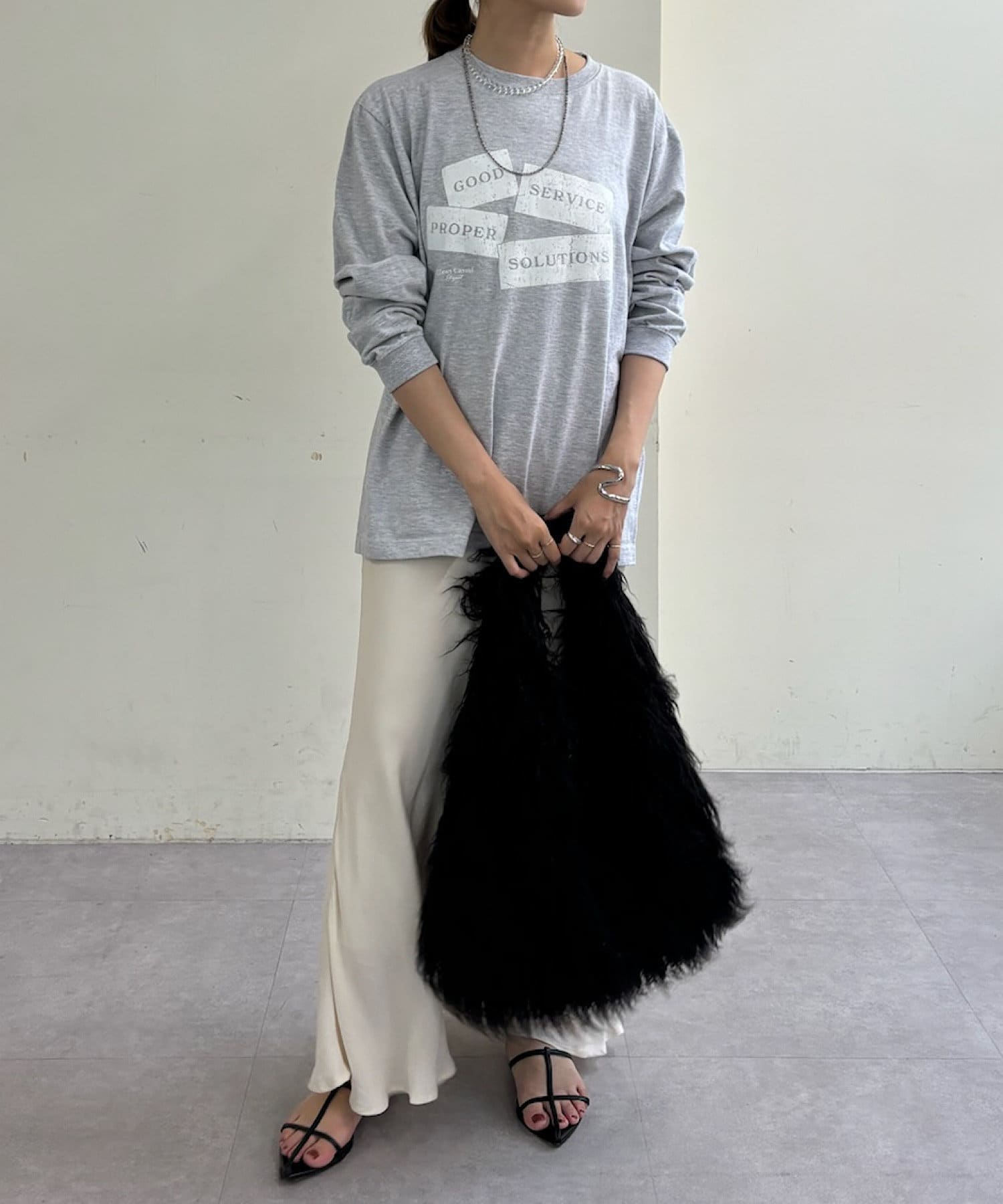 シンプルなデザインなので、トレンドのロングスカートからパンツスタイル、