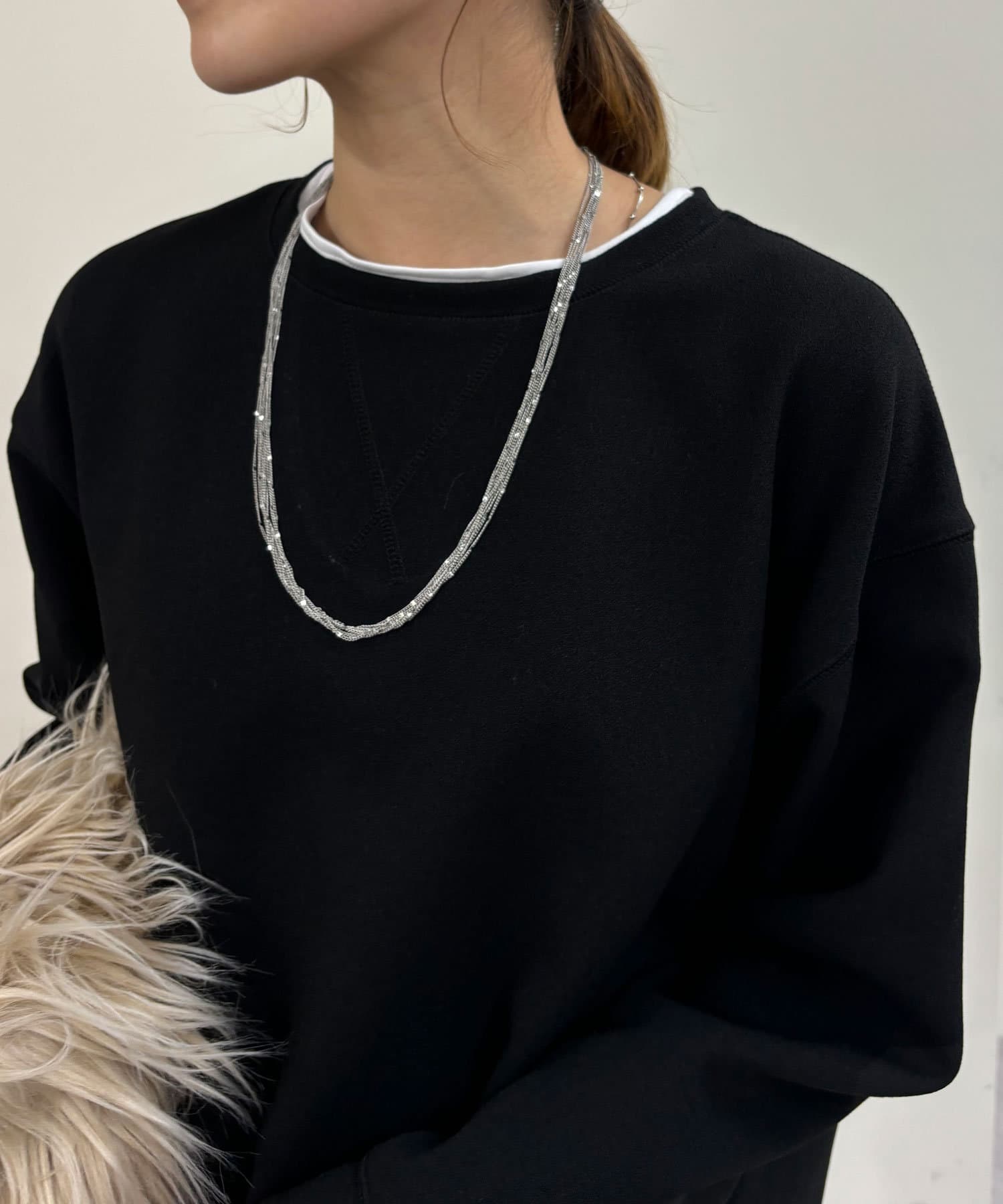 Vガゼットを配したコンパクトなクルーネックがラフな印象をプラス。