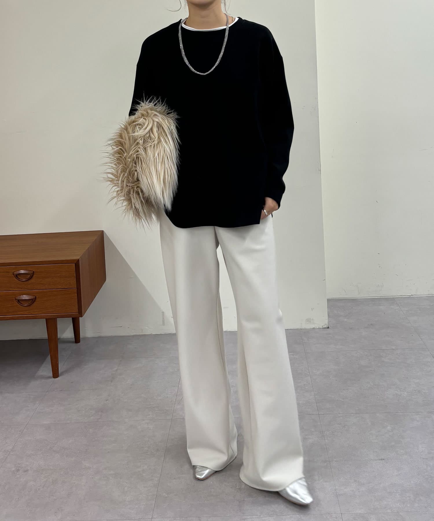 きれいめとカジュアル感を兼ね備えたトレンド感のある表情で、オンオフで活躍出来るアイテムです。
