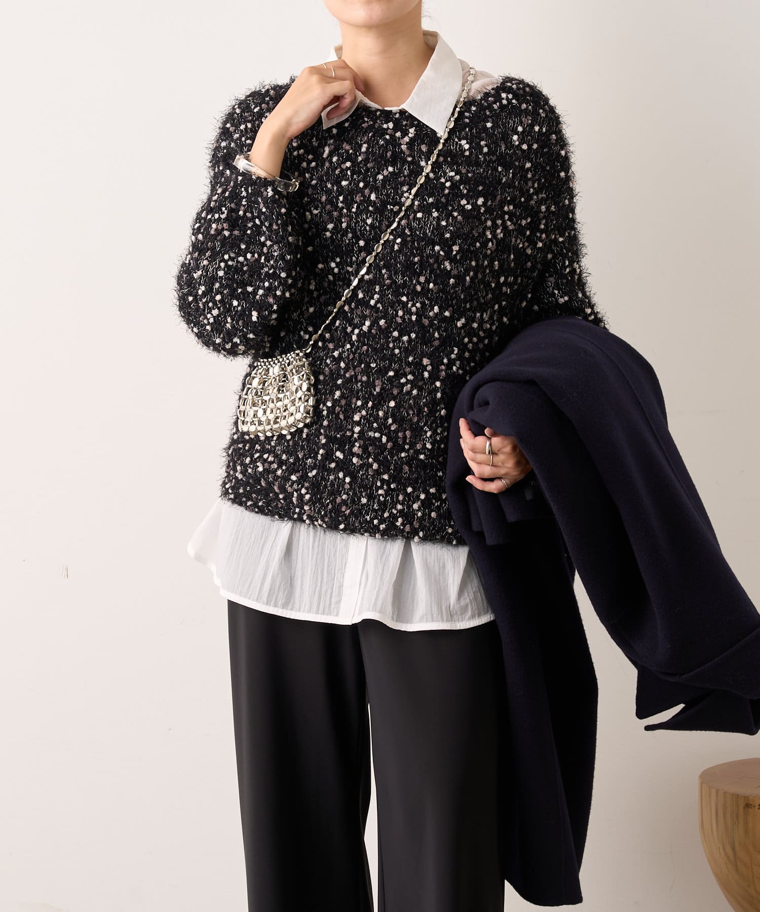 ルーズなシルエットで大人っぽく仕上がる、ミックスカラーニット