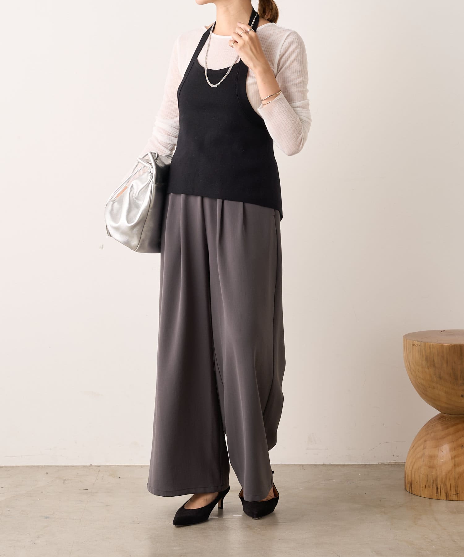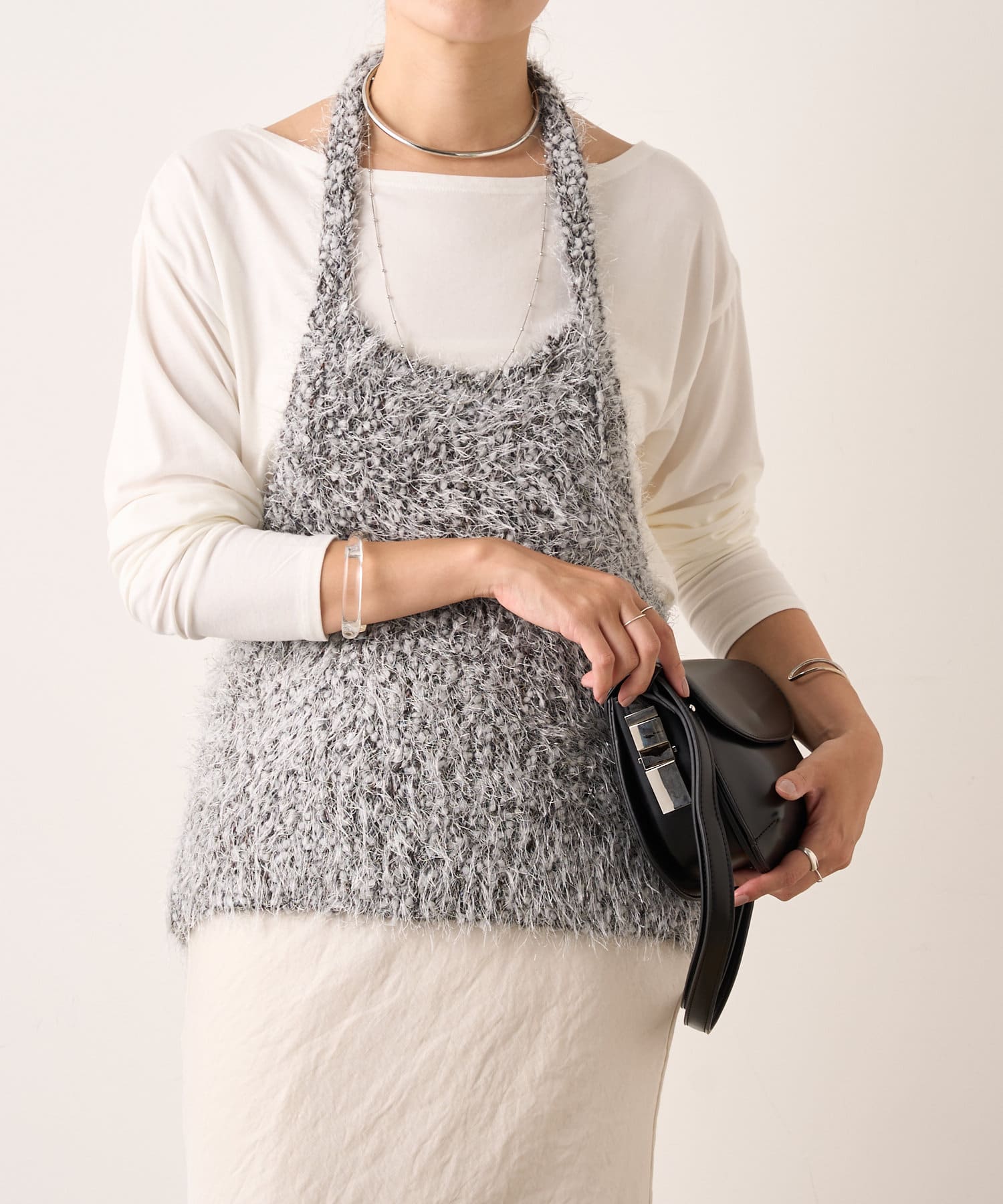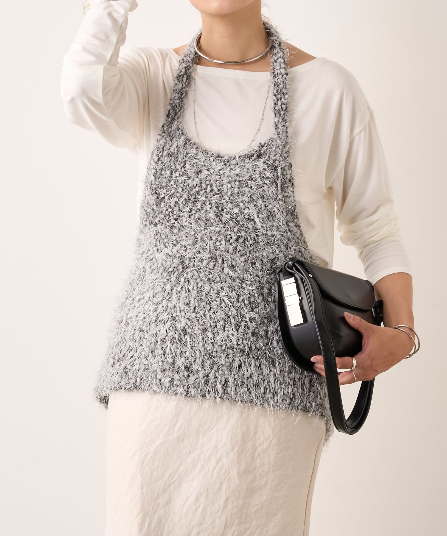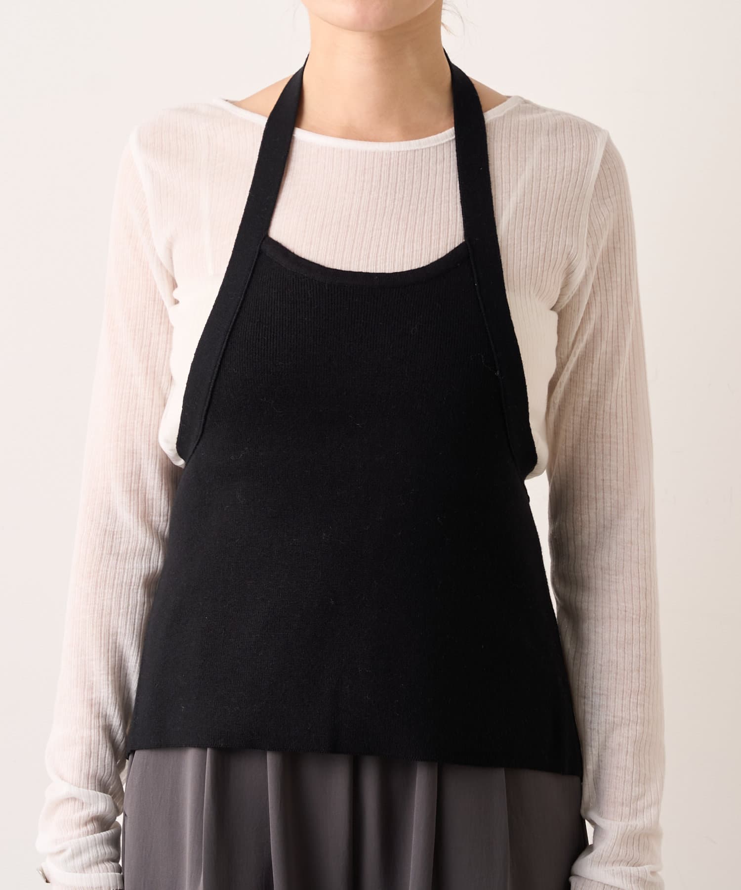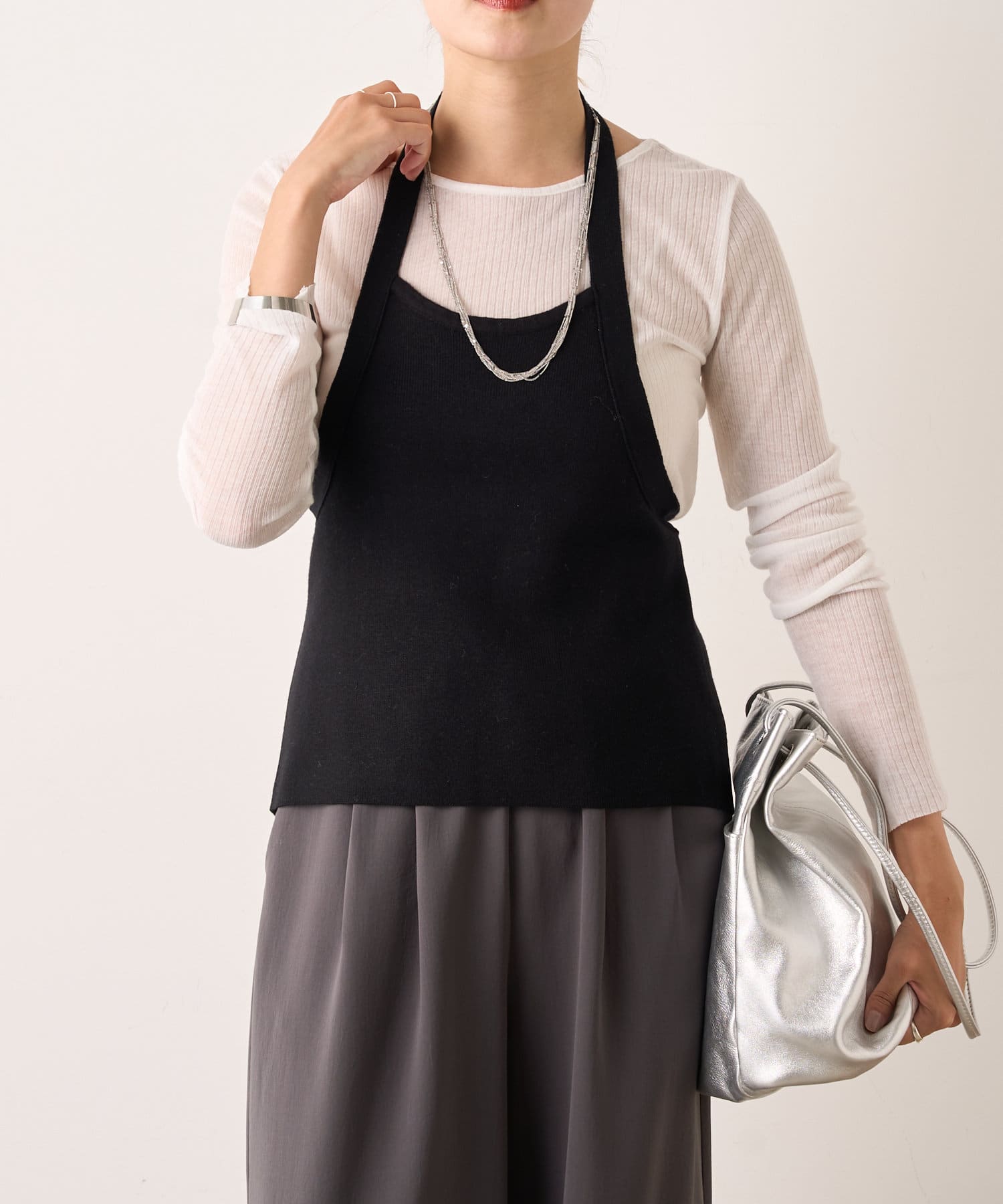 大人っぽいシャープなラインとホルターデザインがポイントのニット