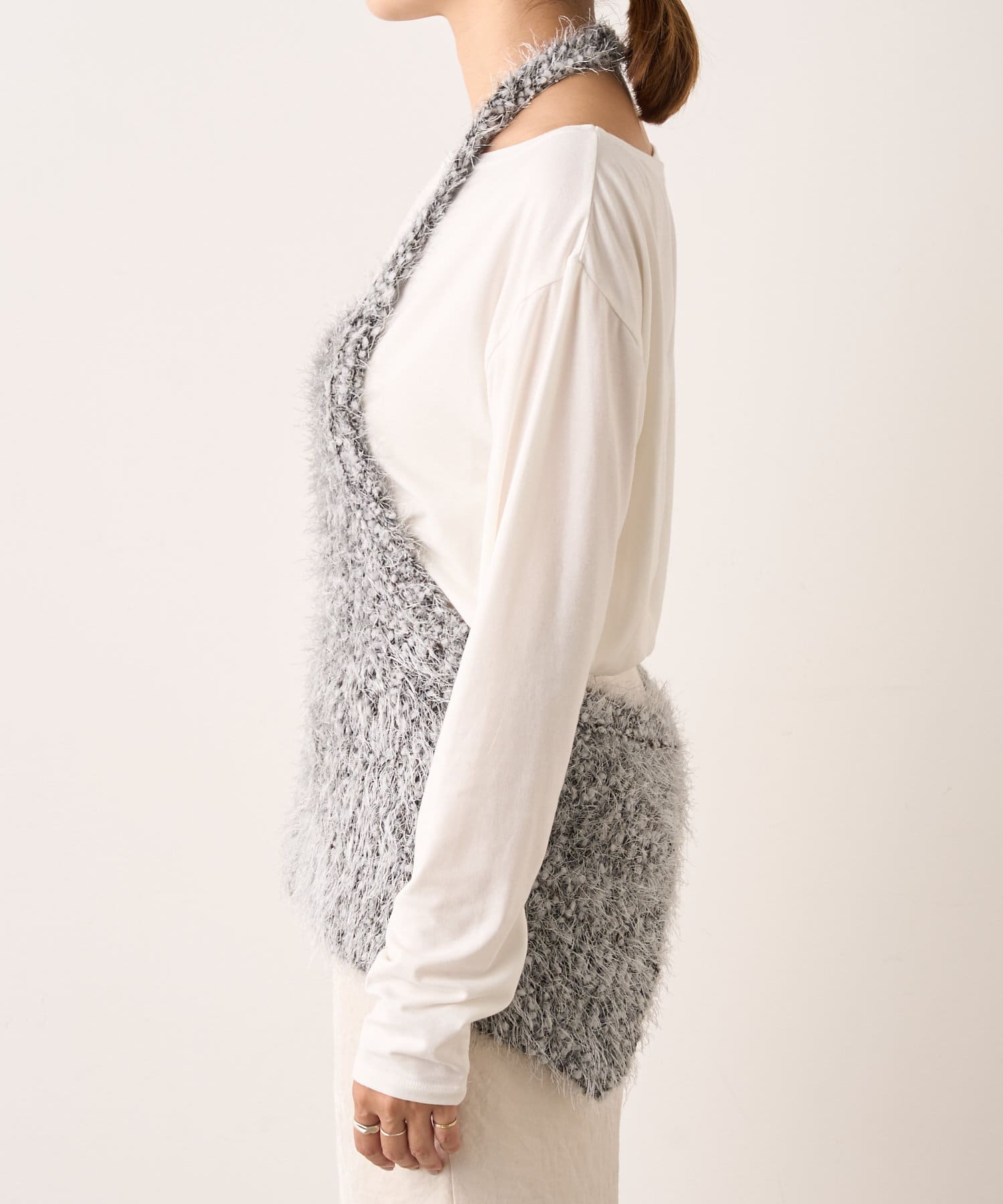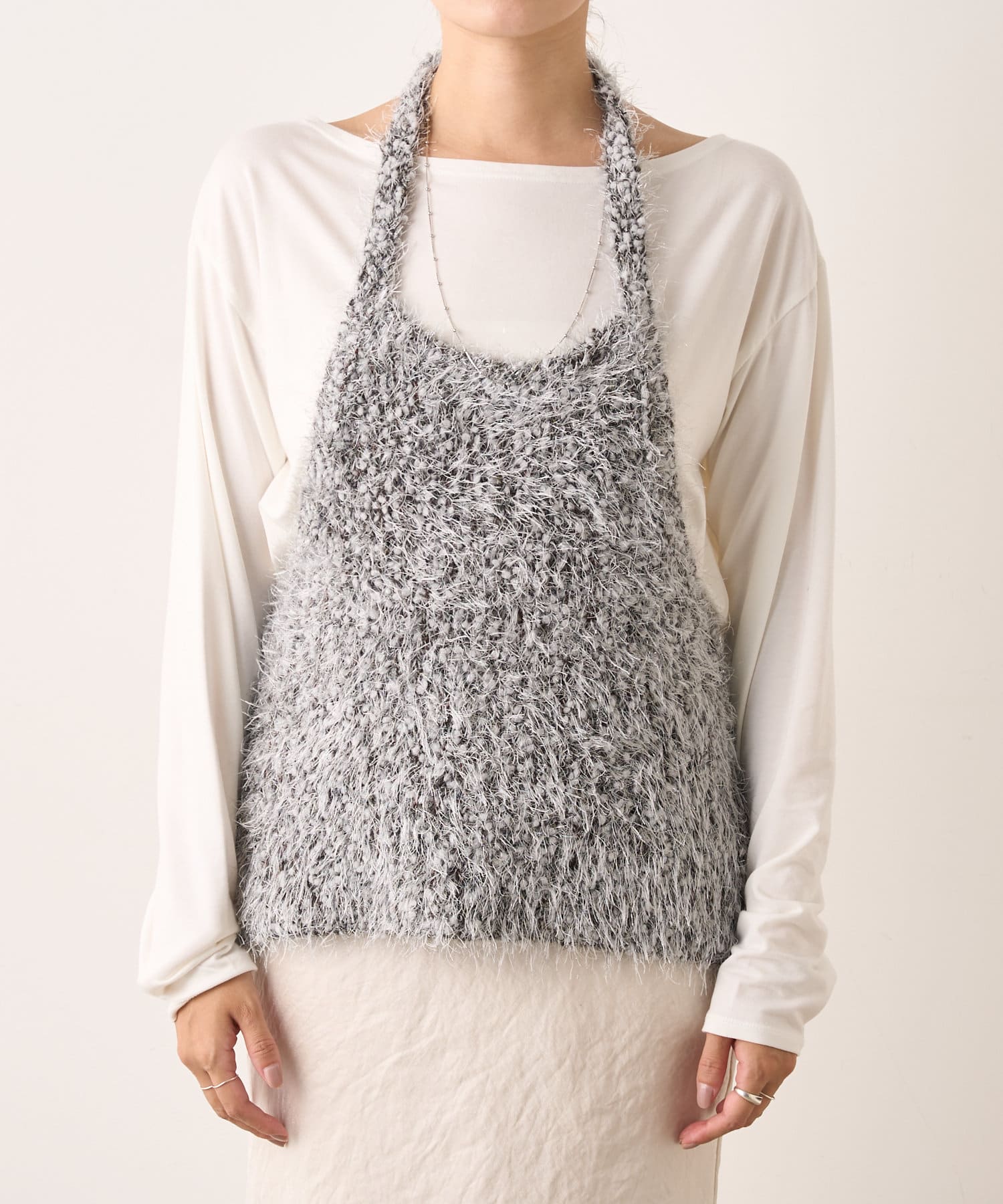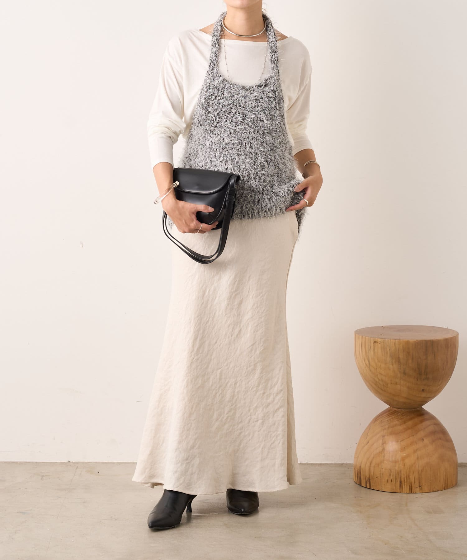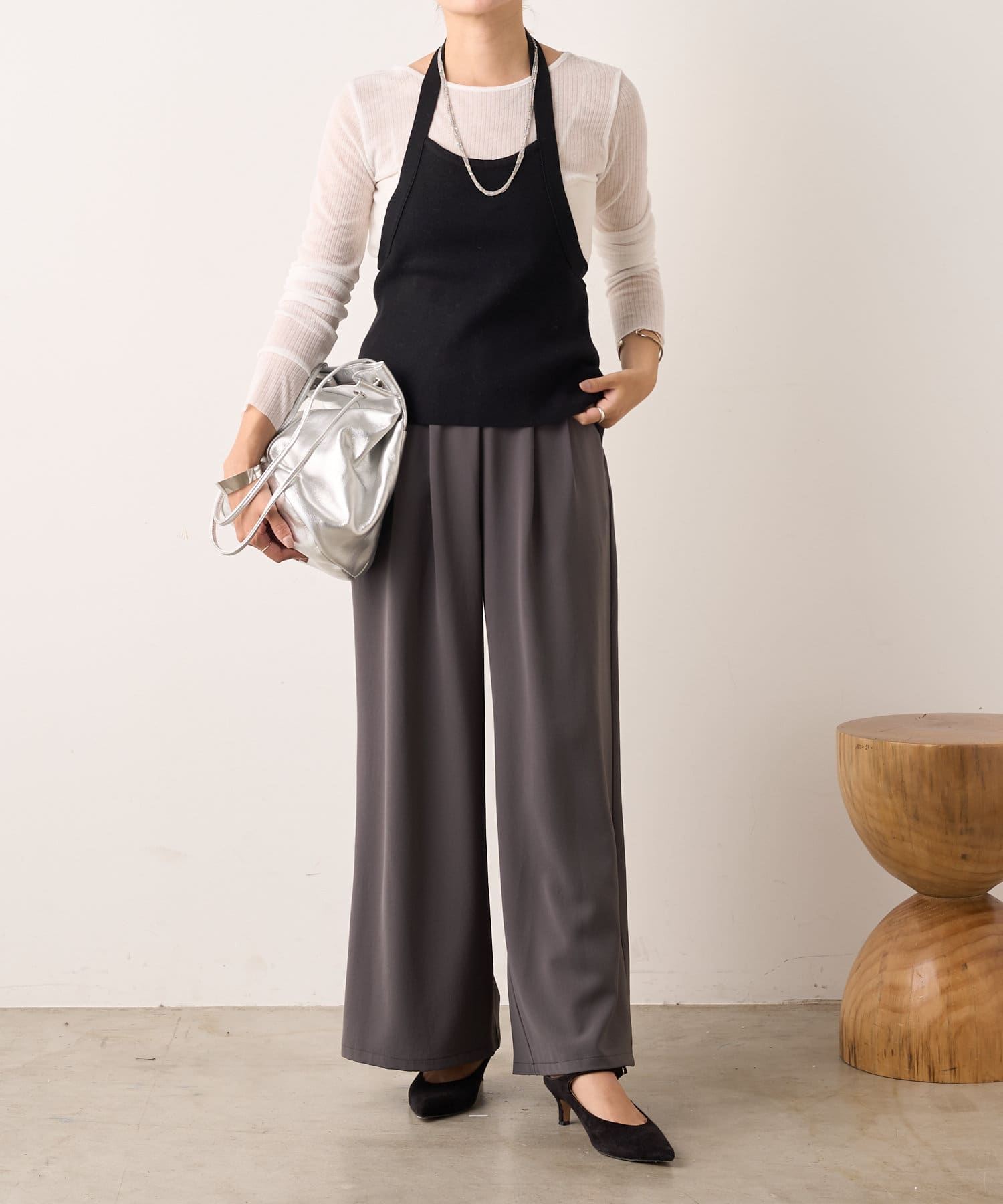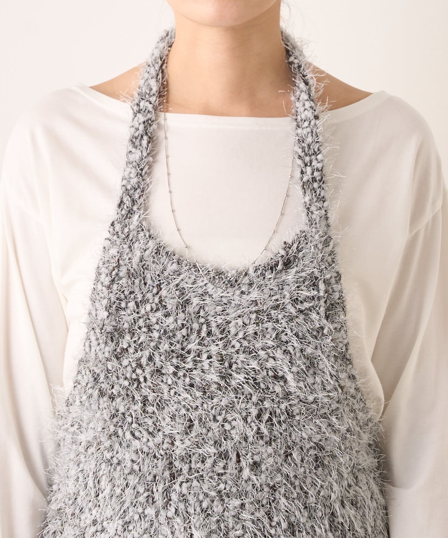 大人っぽいシャープなラインとホルターデザインがポイントのニット