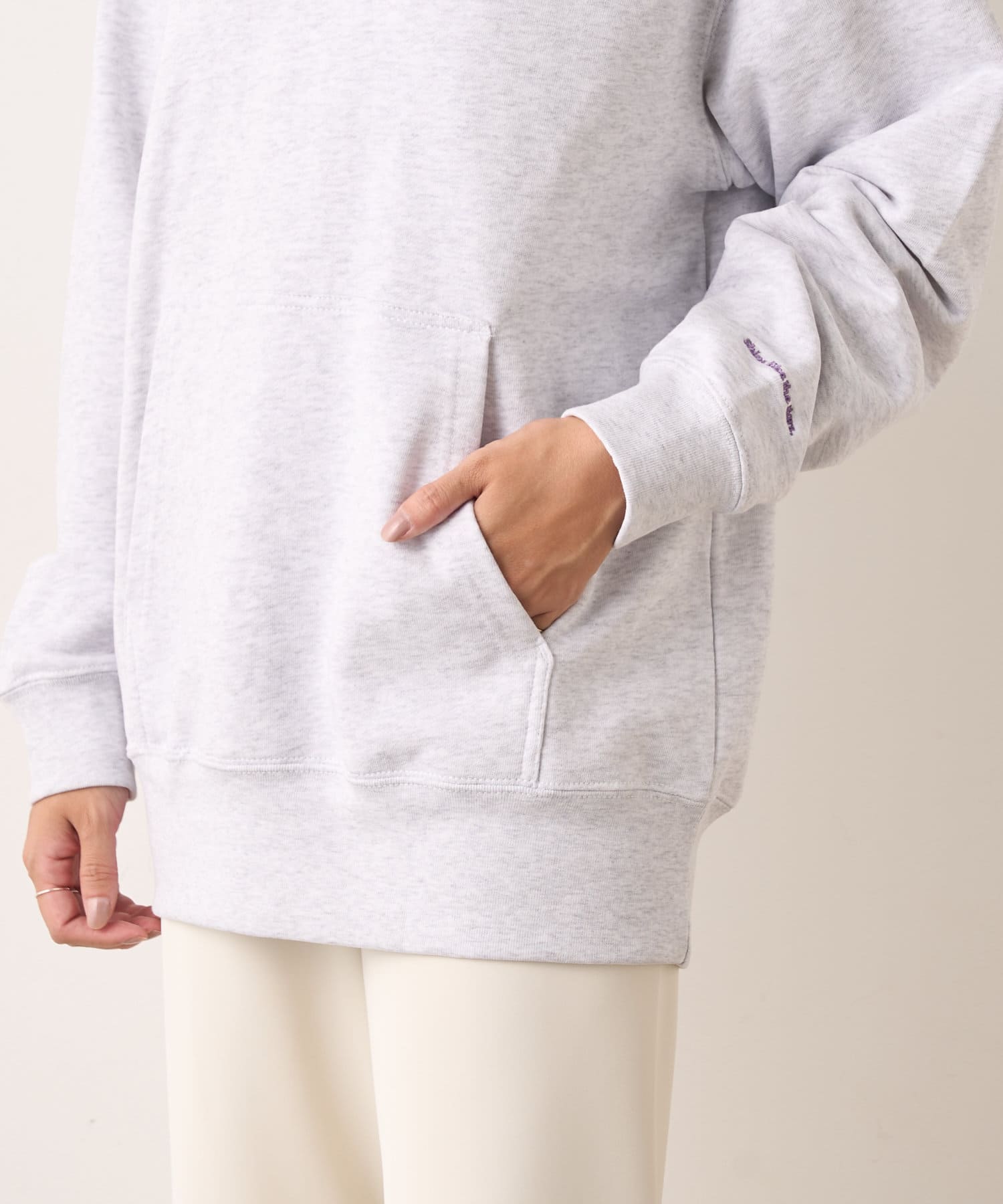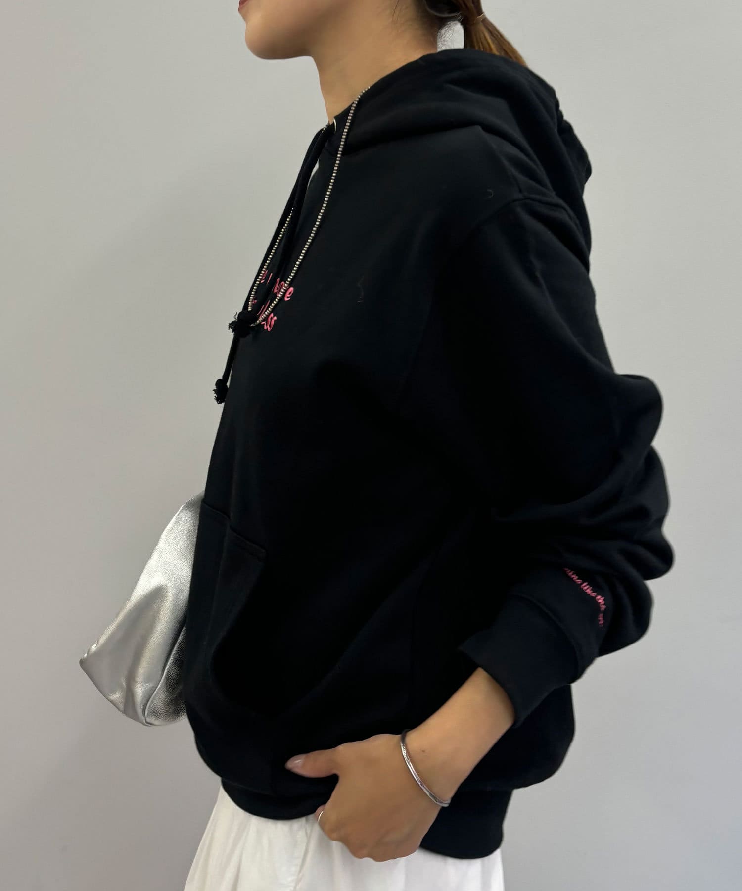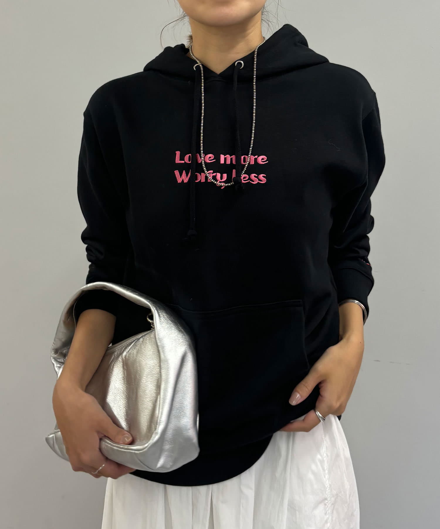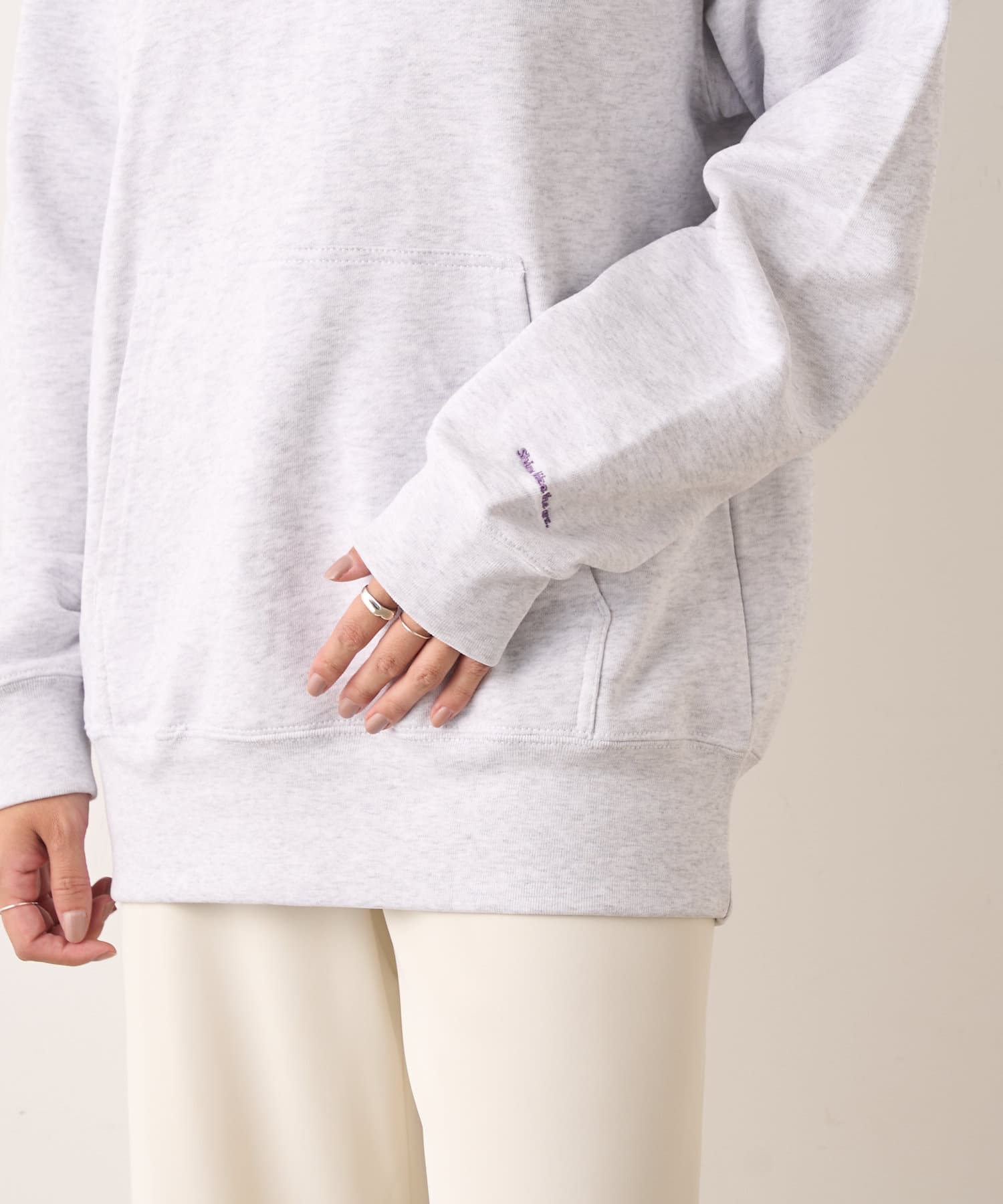 大人カジュアルコーデにピッタリの刺繍フーディー