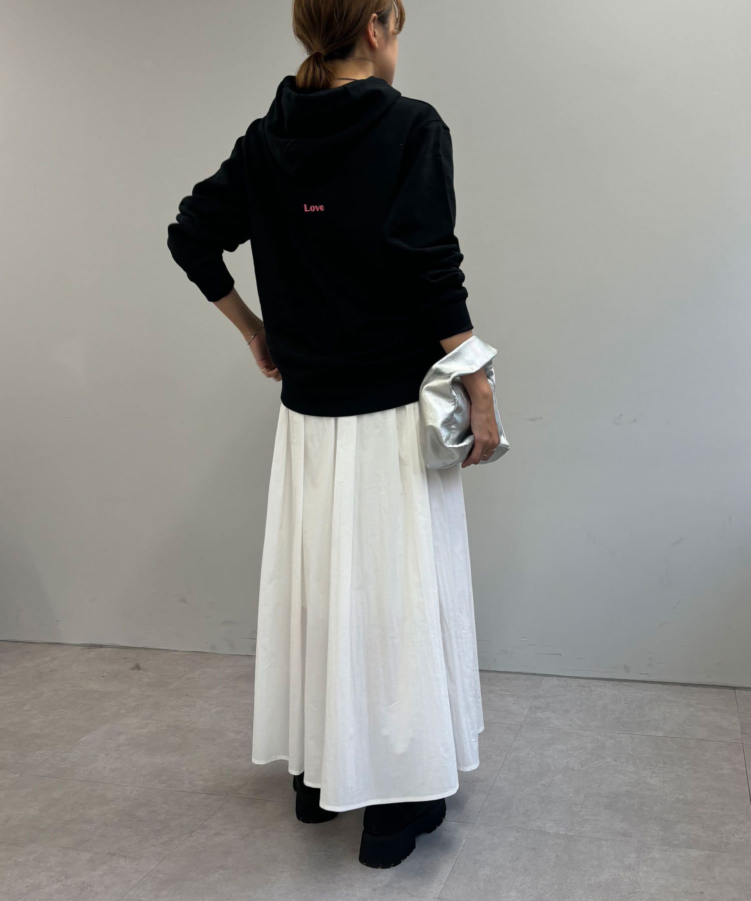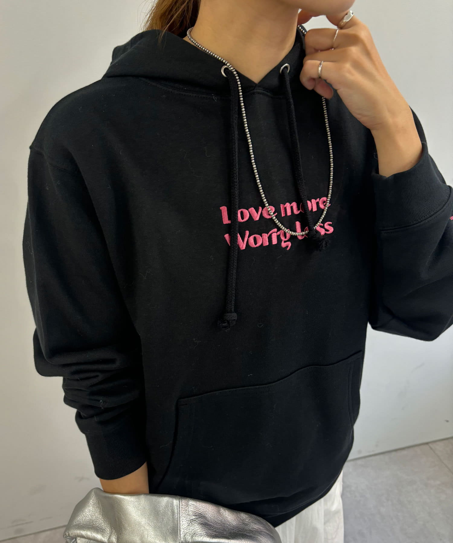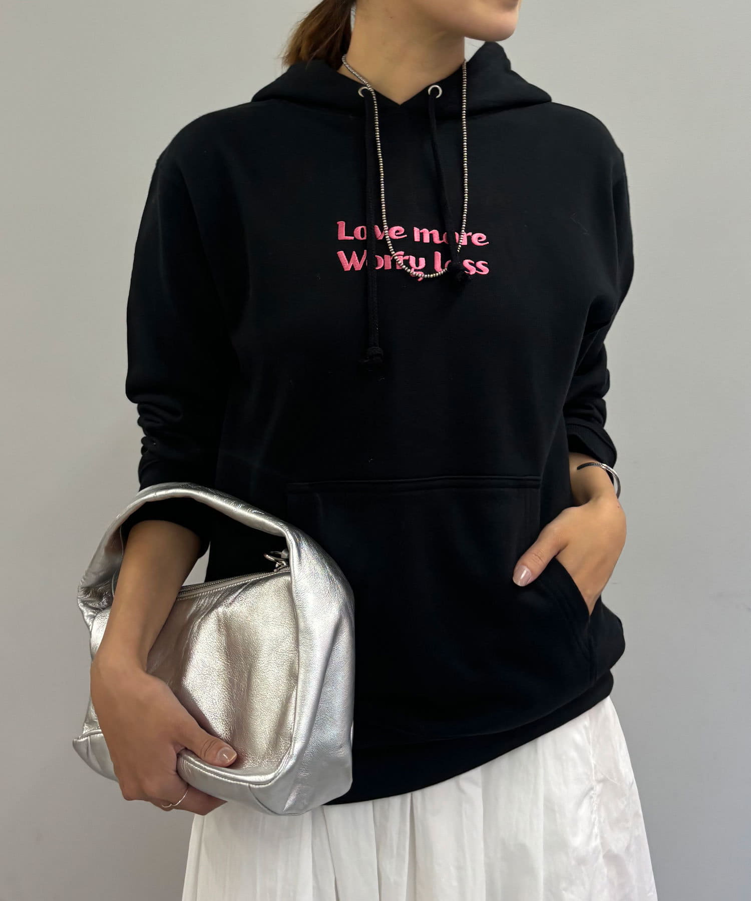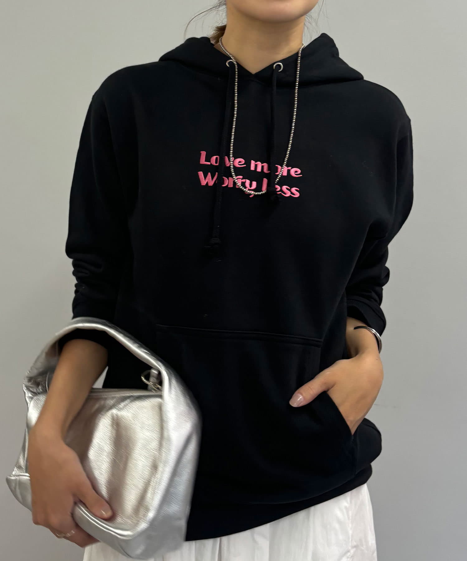 大人カジュアルコーデにピッタリの刺繍フーディー