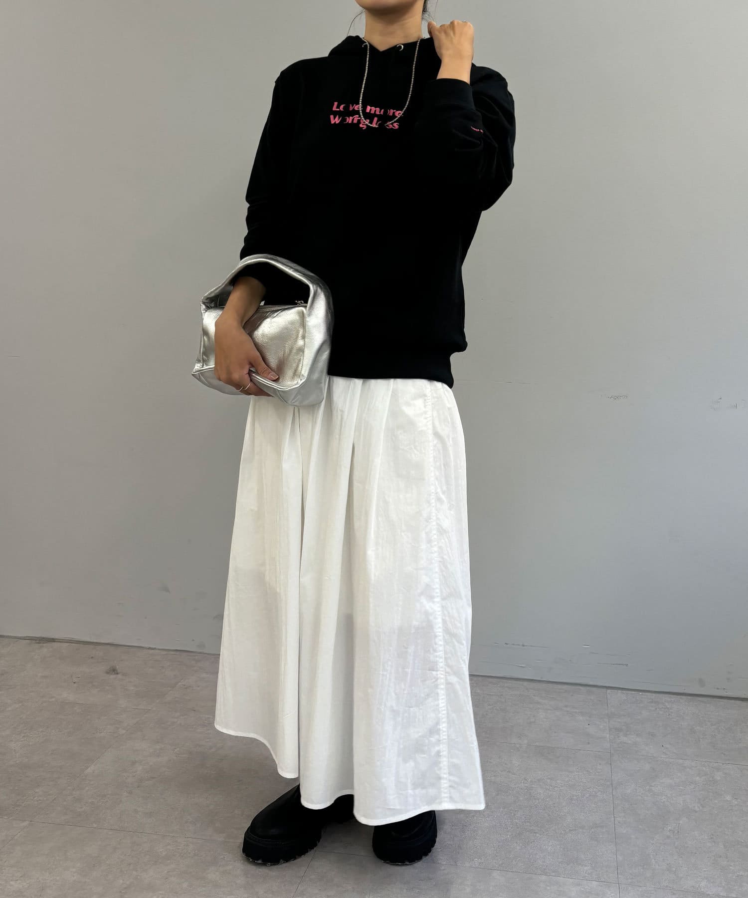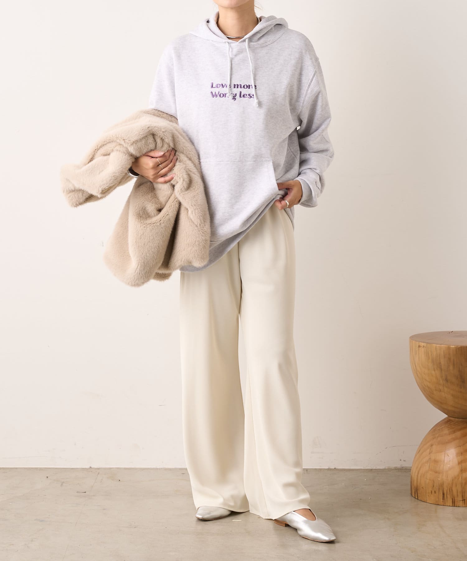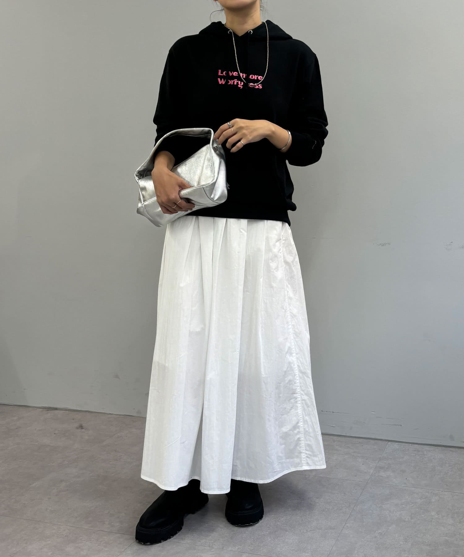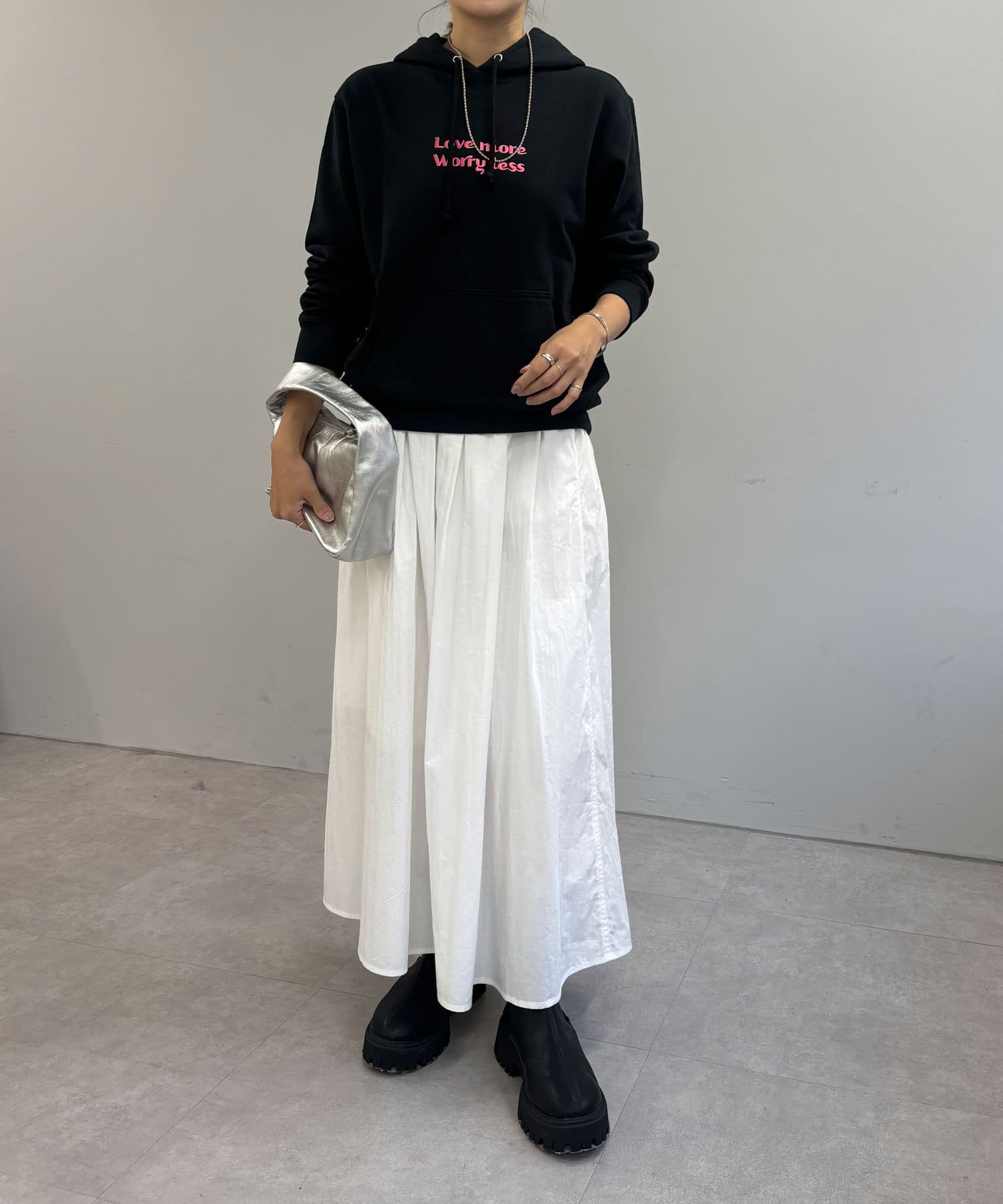 大人カジュアルコーデにピッタリの刺繍フーディー