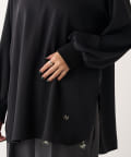 背中のボタンデザインで後ろ姿までおしゃれに決まるバックボタンチュニック。