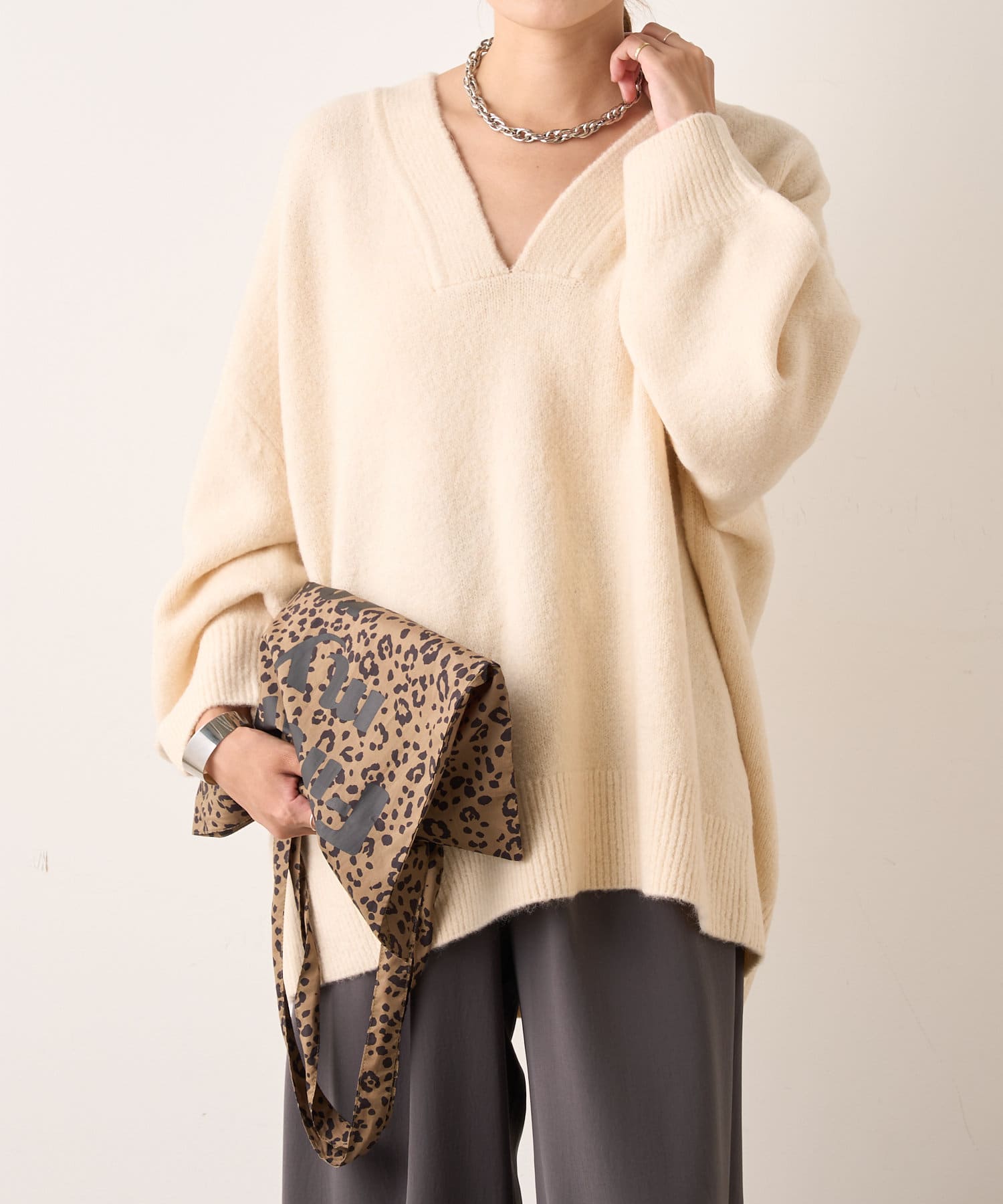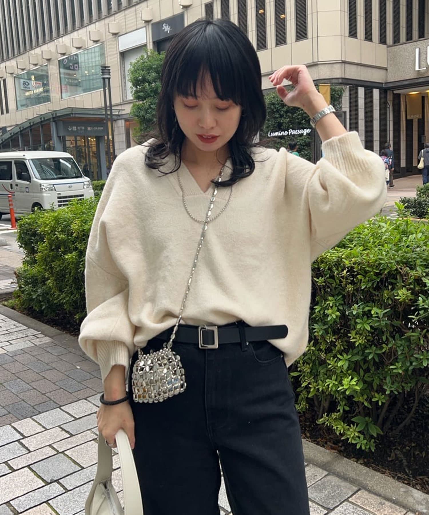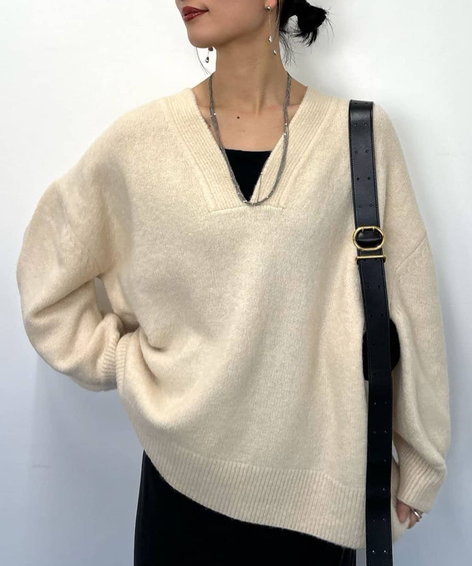 深めのVネックデザインがおしゃれなプルオーバーニット