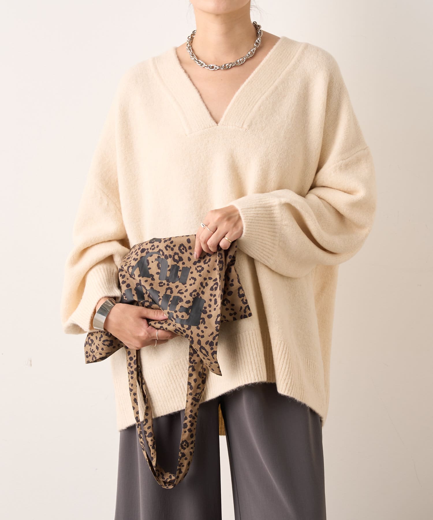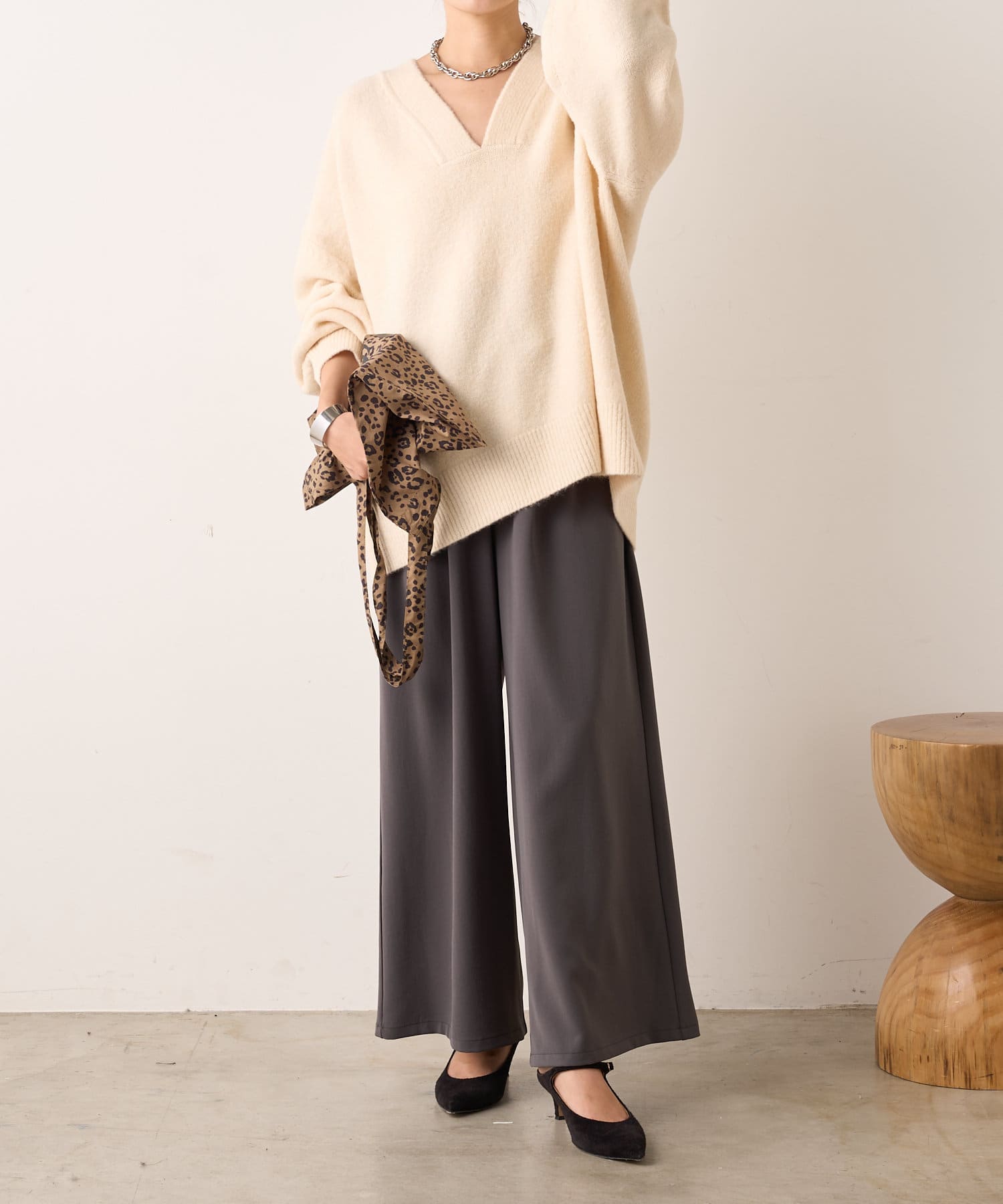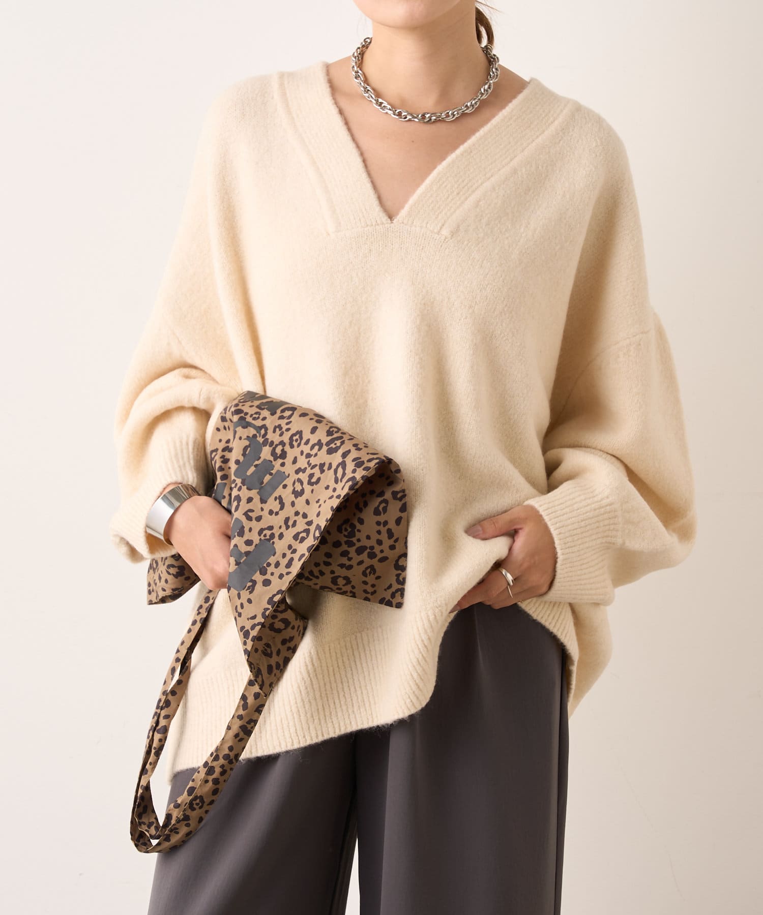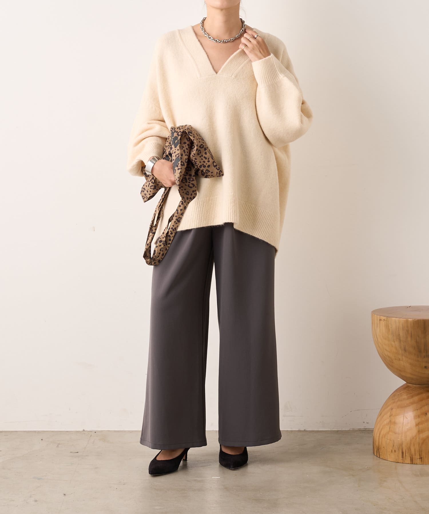 深めのVネックデザインがおしゃれなプルオーバーニット