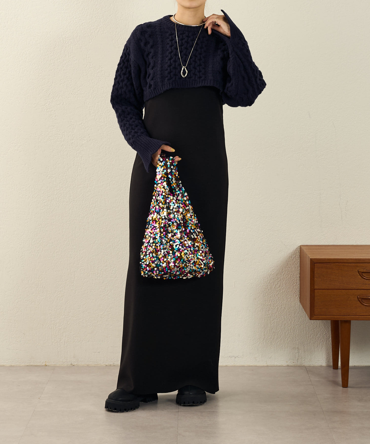 ケーブルなのにショート丈というところがなんとも言えない可愛さで、シャツやチュニックとの相性◎