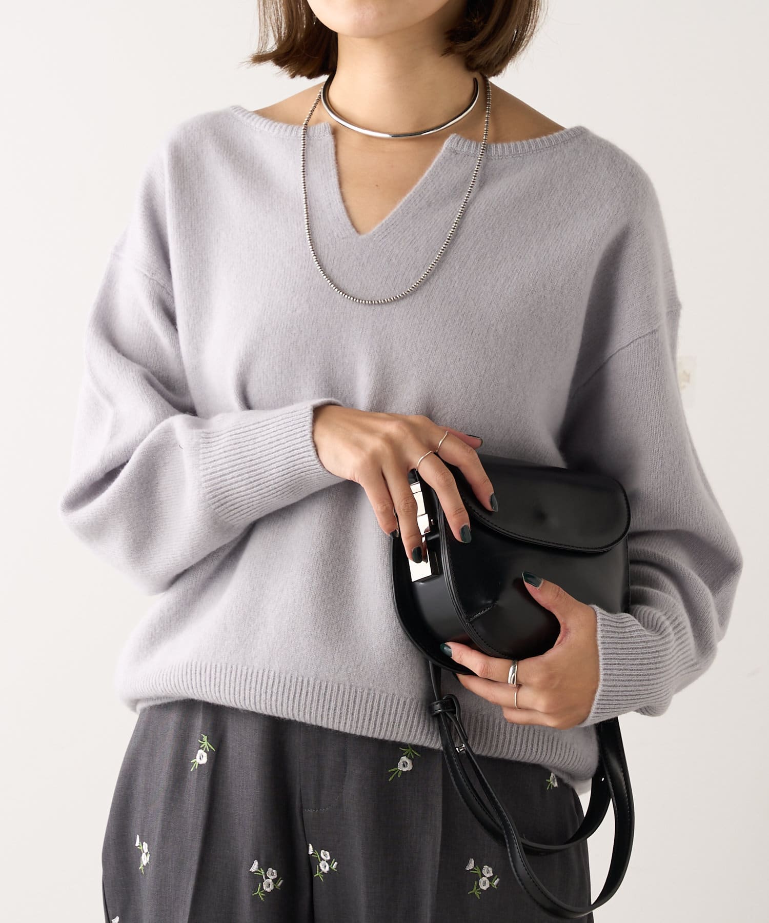 スキッパーデザインが首元を綺麗に見せてくれます。