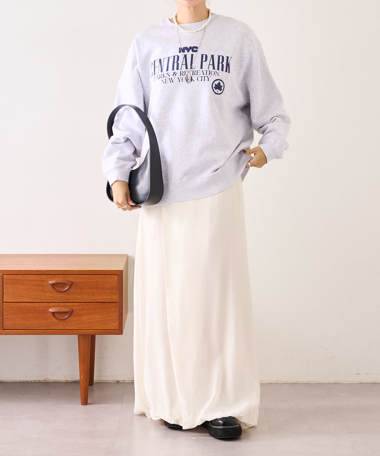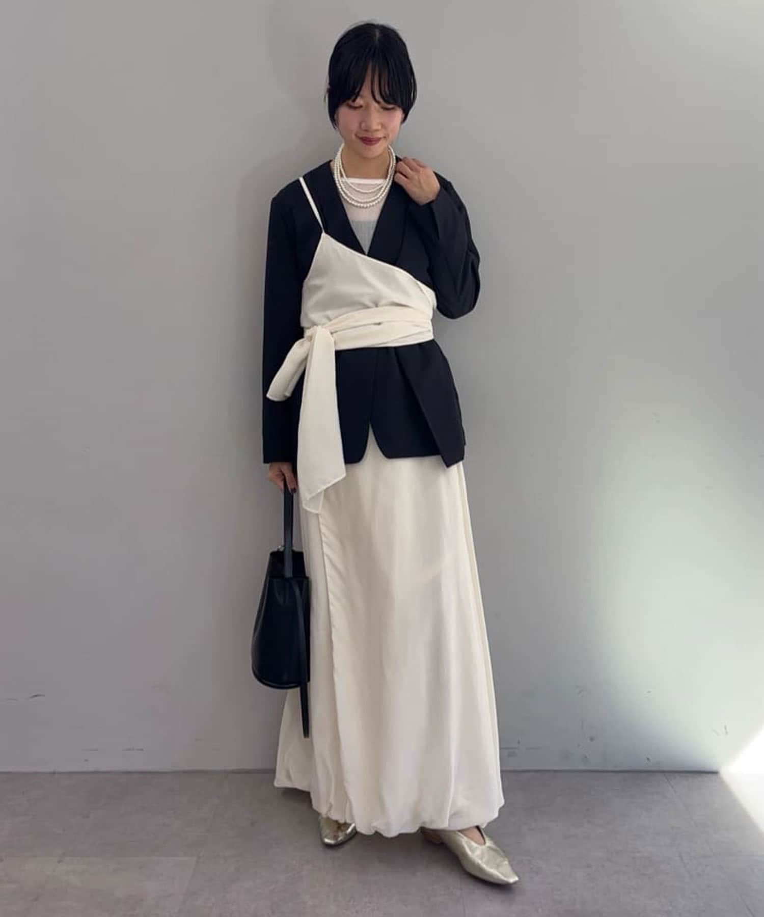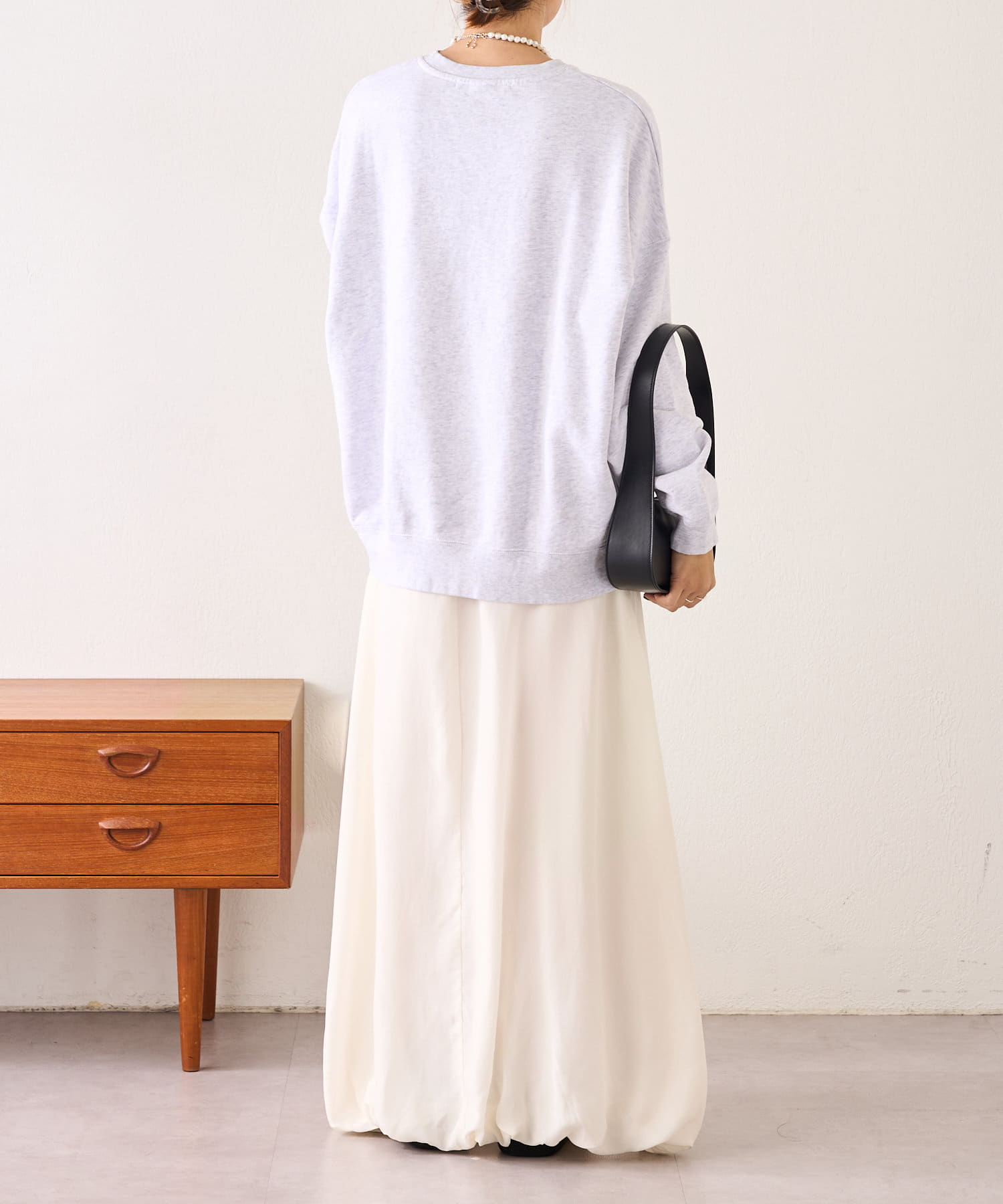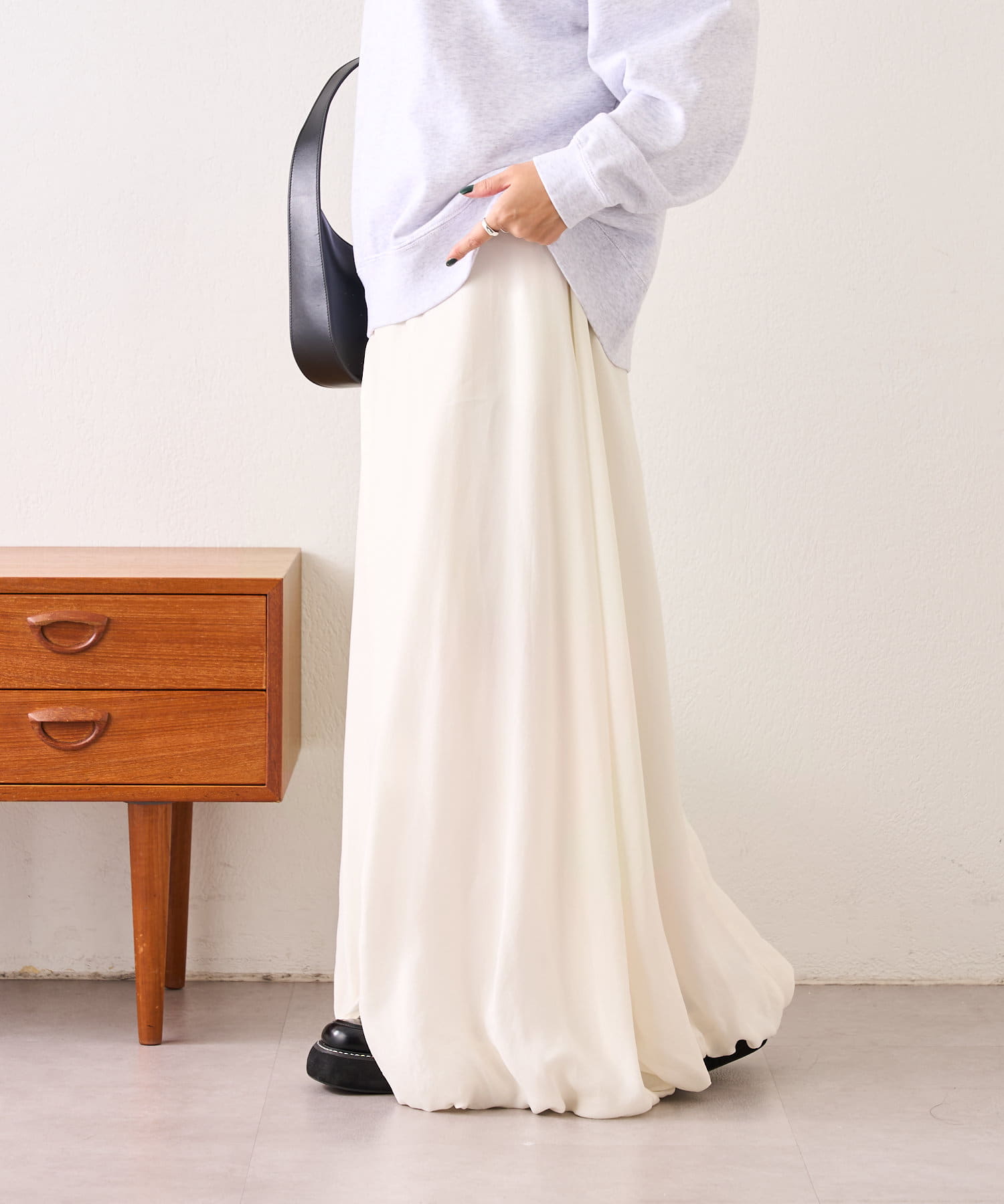 トレンドだから取り入れてみたい!と思いつつ、ボリュームが出すぎるとうまくコーディネートが出来ない。。。なんてお悩みの方も多いはず! 落ち感がありストレートシルエットのバルーンスカートが登場です。