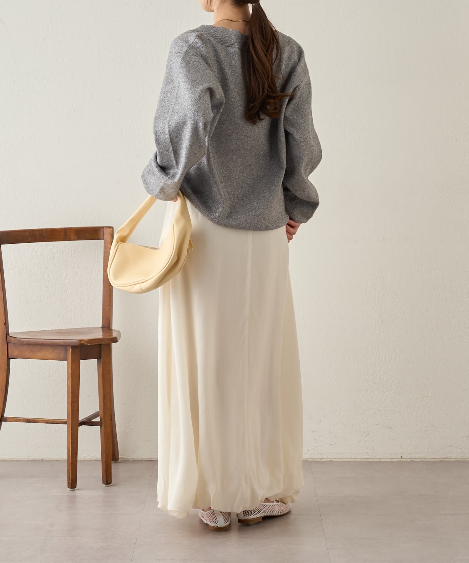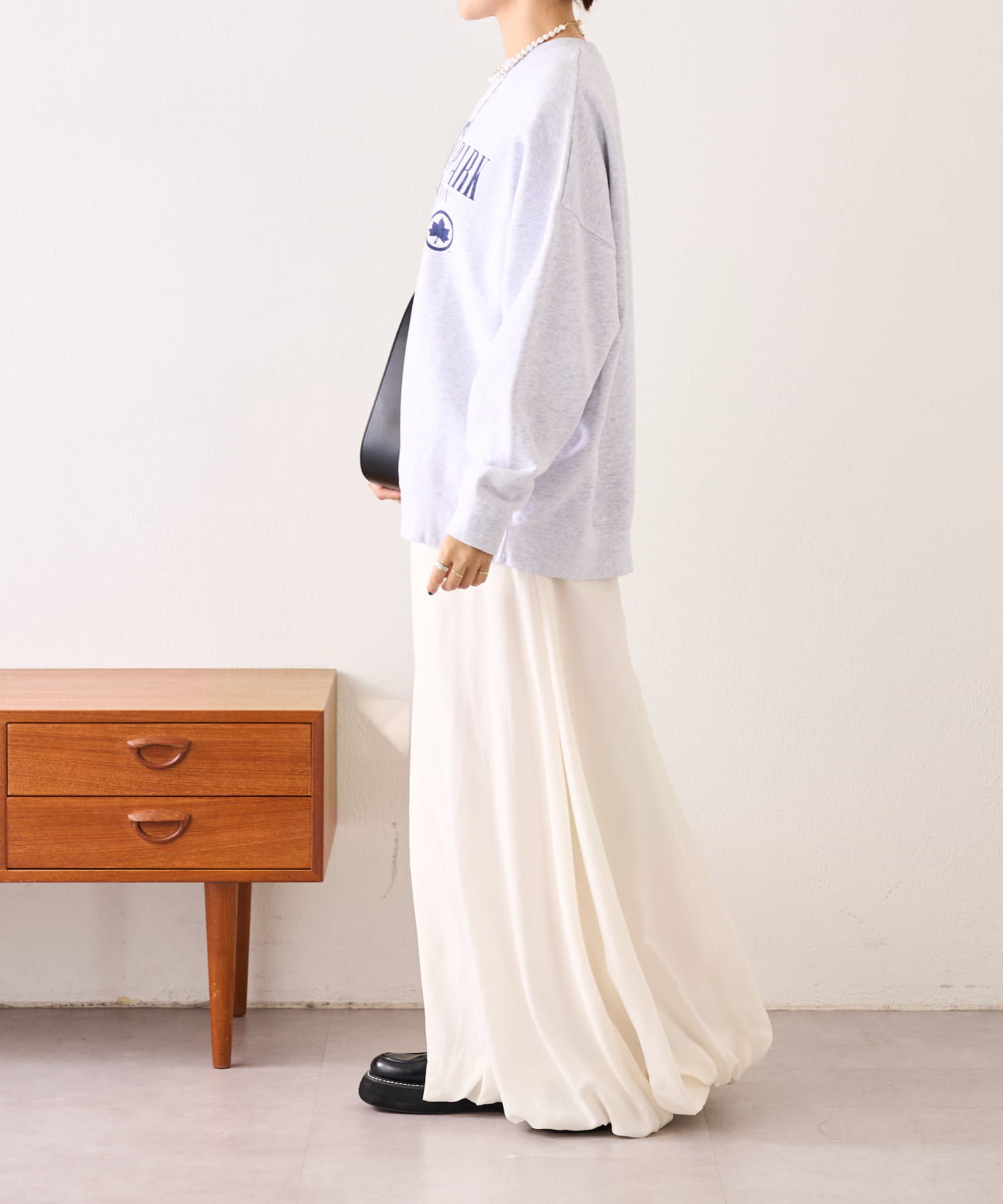 スリットは前後どちらでも着用していただける2WAYで、ショートトップスでもボリュームトップスでも相性の良い、