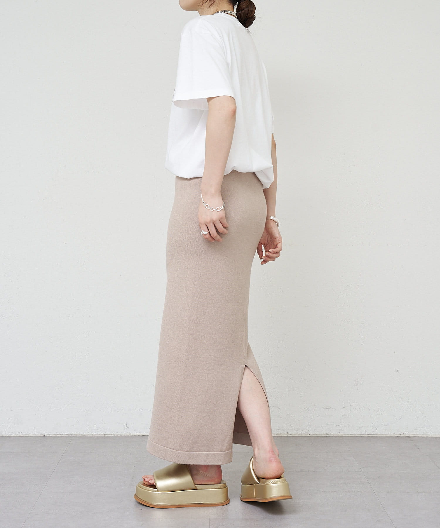 すとんとしたタイトシルエットになっているので、美しい脚のラインを演出します。