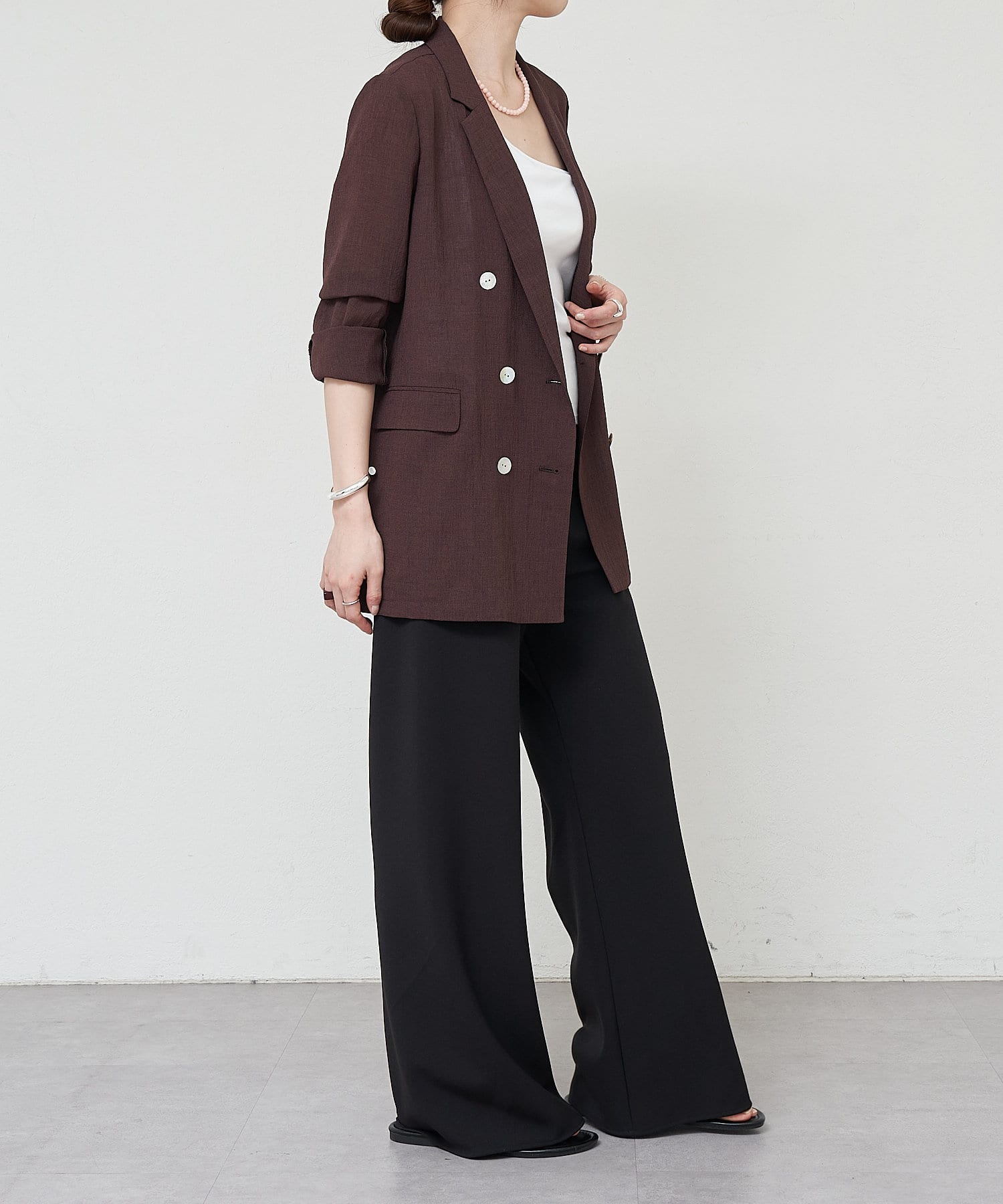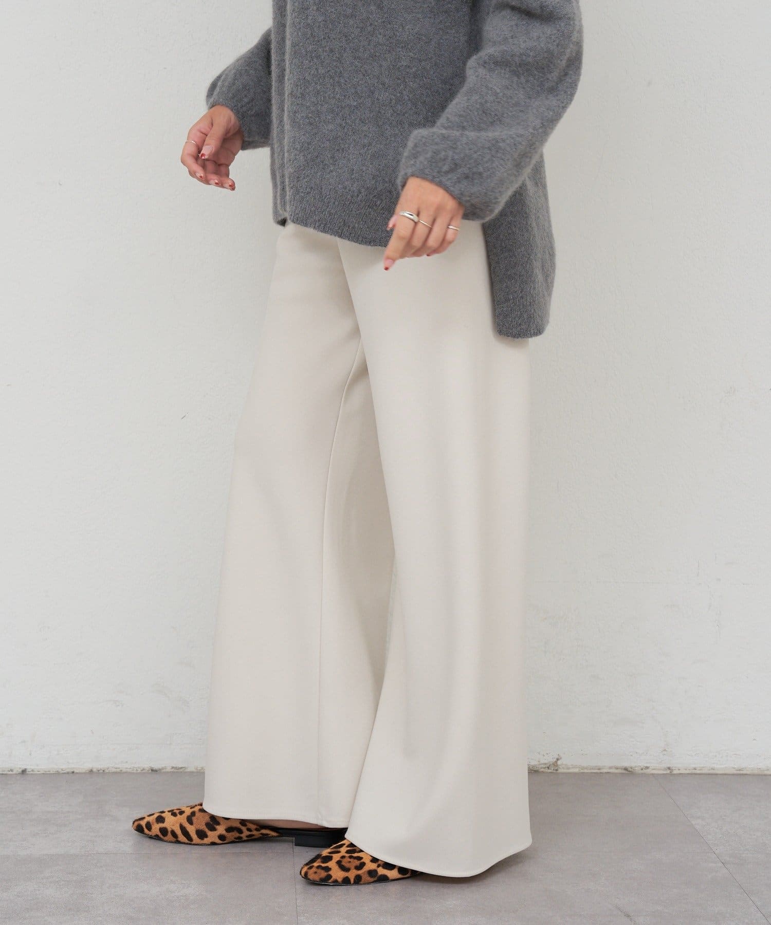 ・ON/OFF問わず使えてスッキリ見えが叶うワイドパンツ。