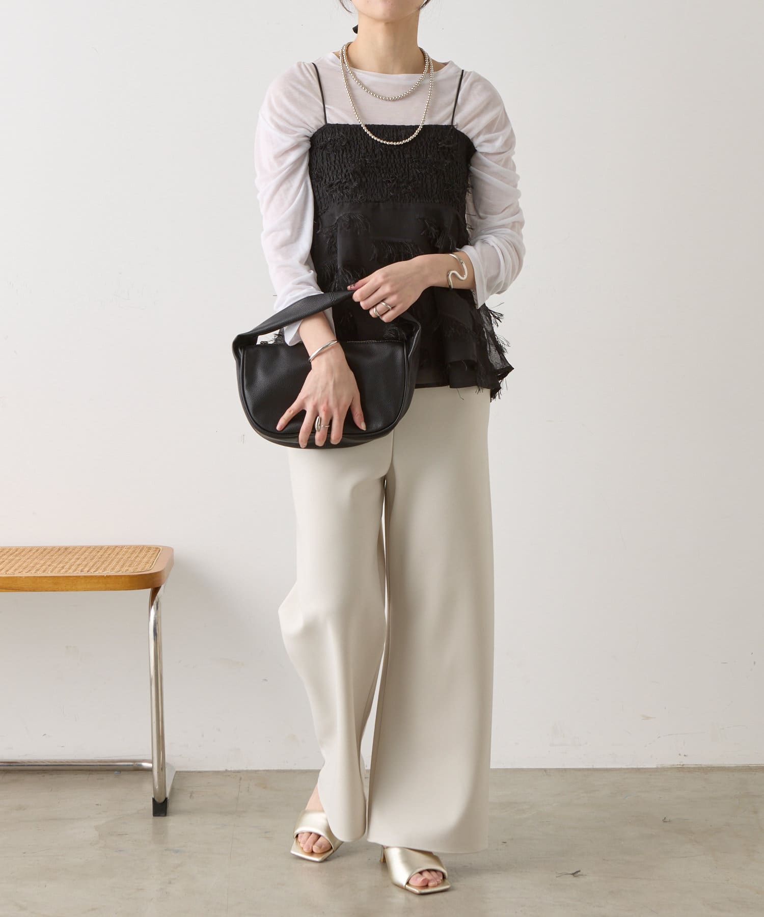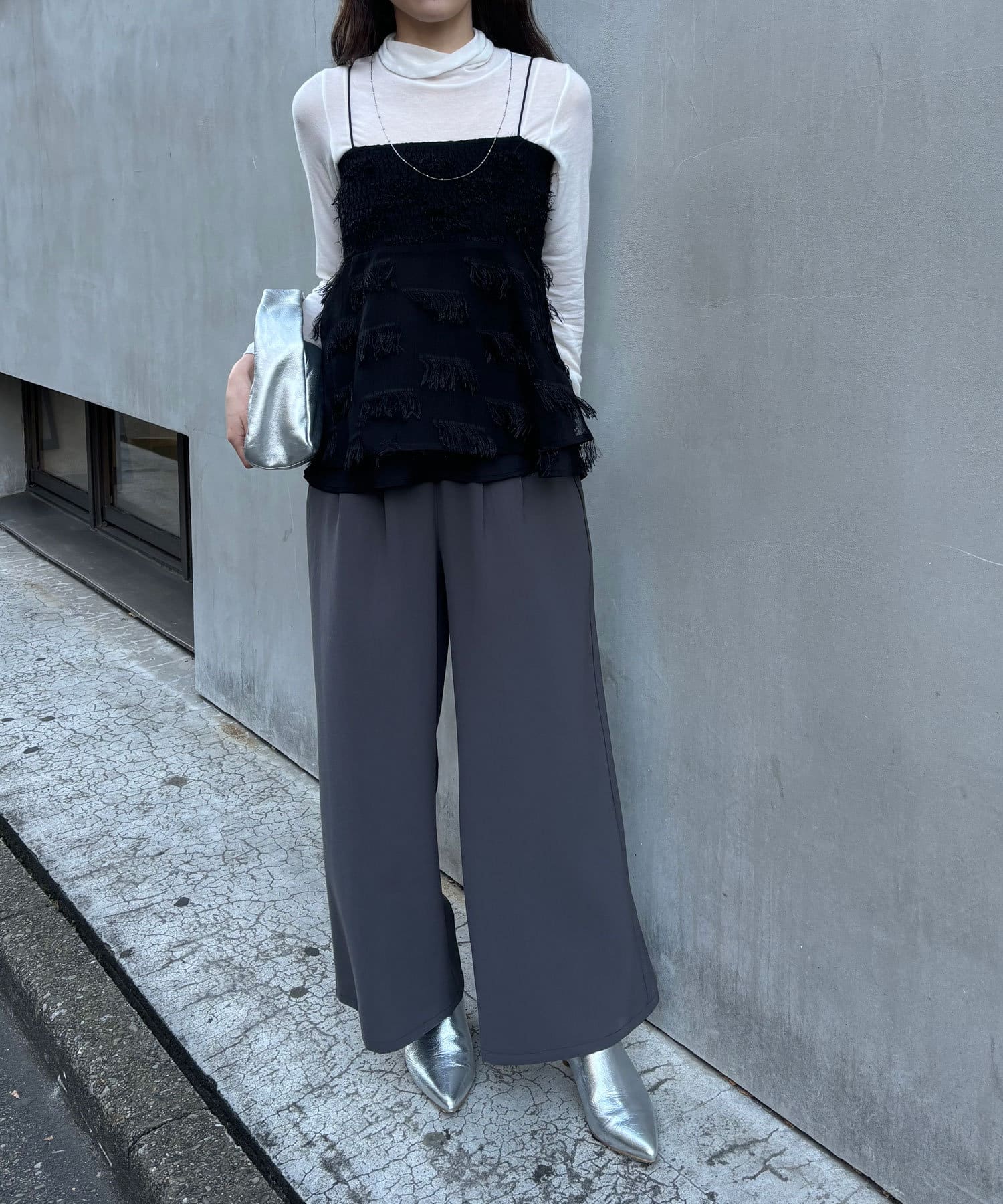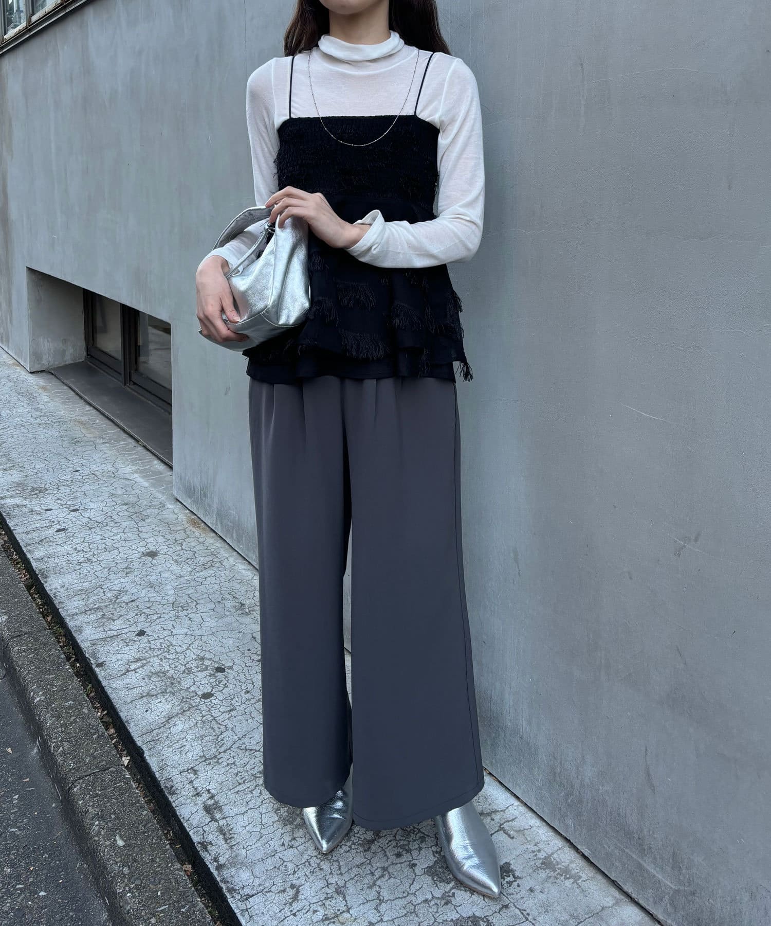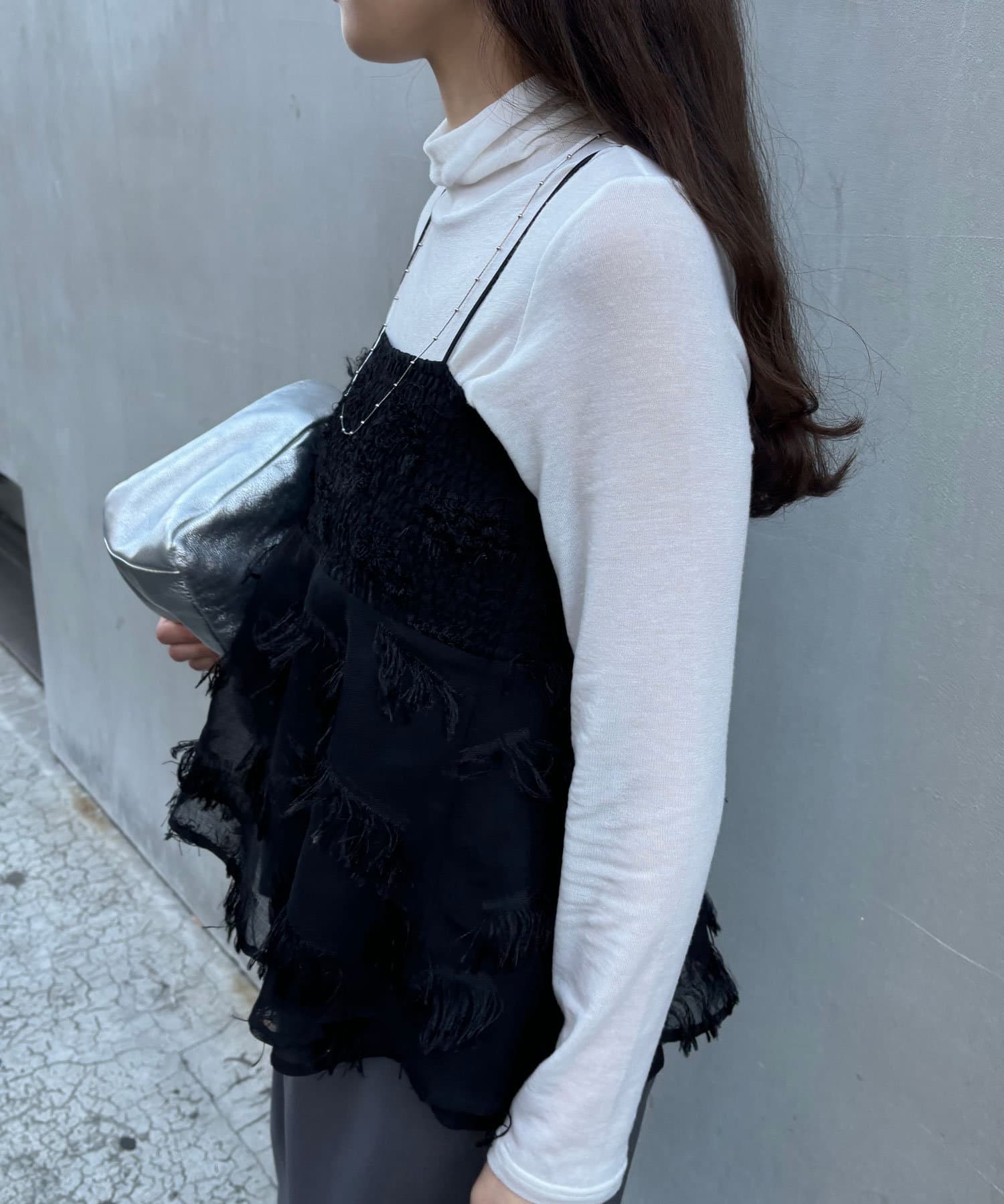 キャミソールのインナーにタートルネックやロンTeeを合わせるコーディネートもおすすめです。