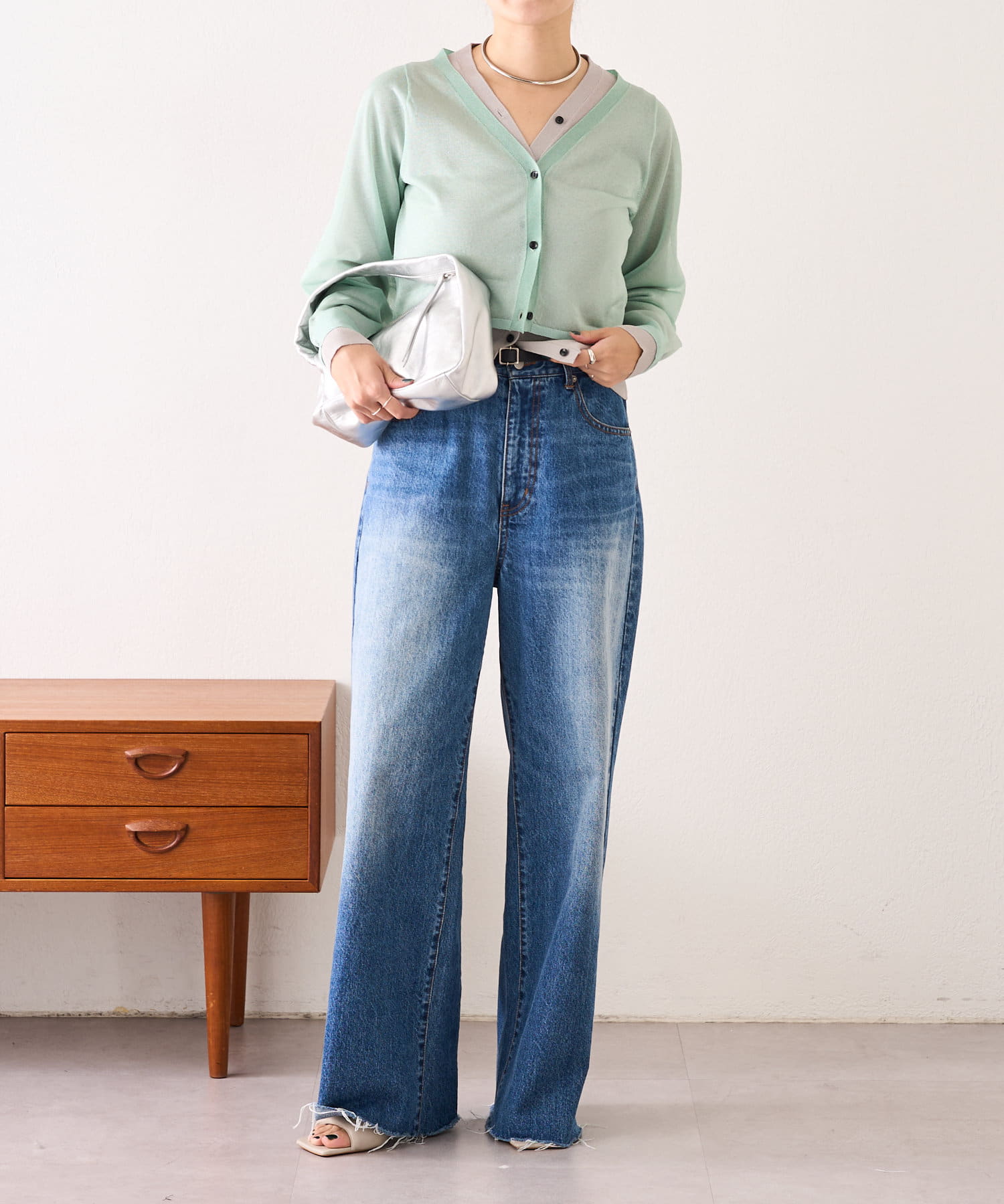 着るだけでおしゃれ見えするレイヤードカーディガン。