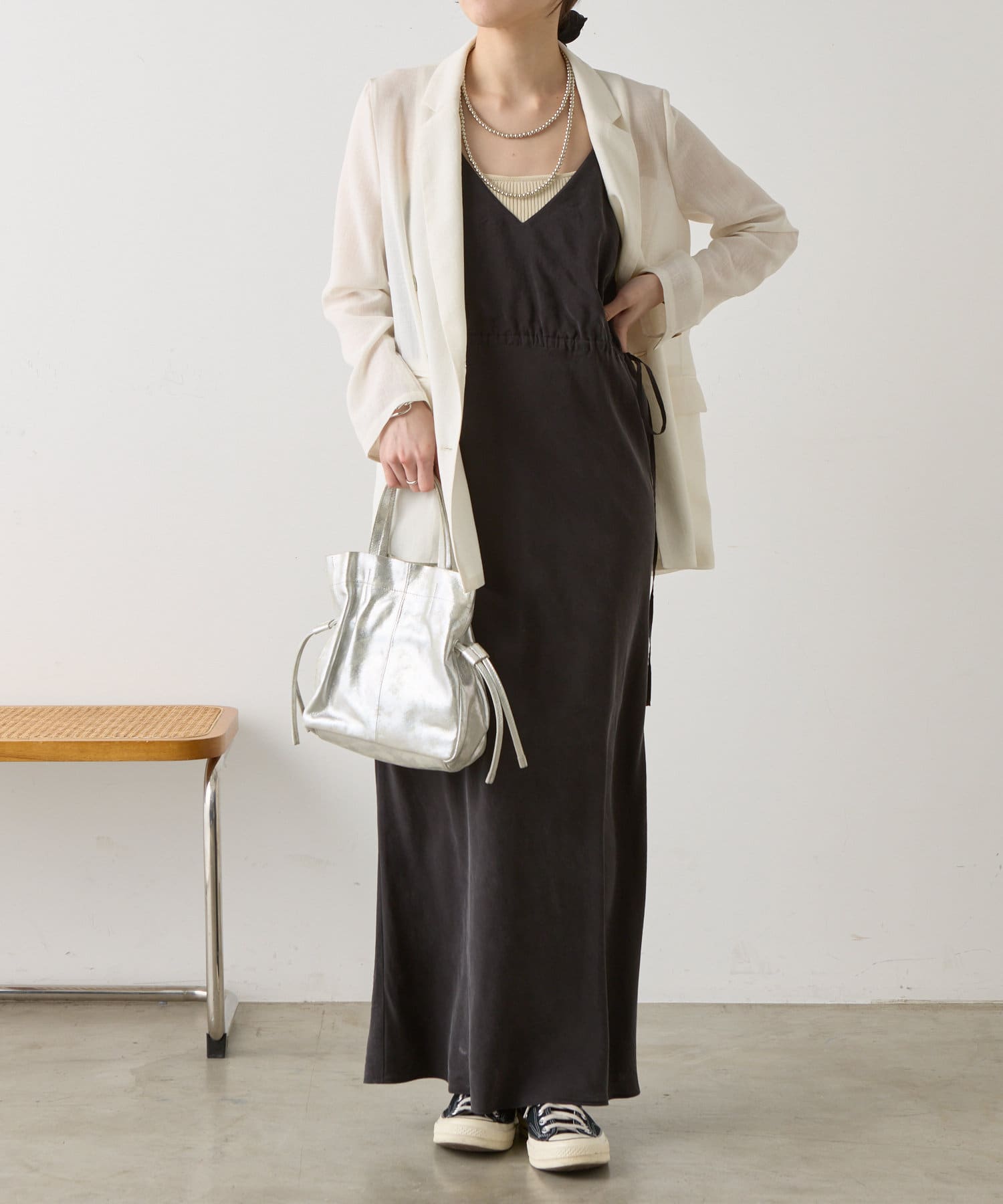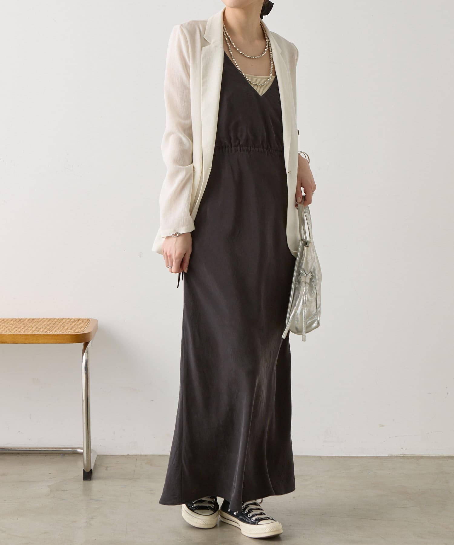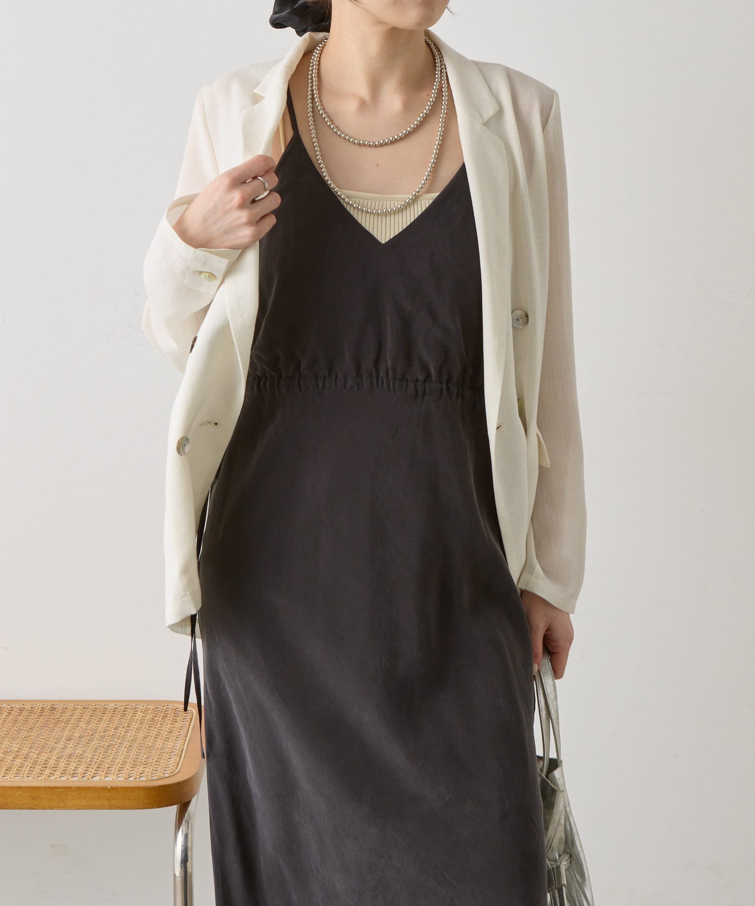 シルキータッチで大人ムードな素材を使用したキャミドレス。