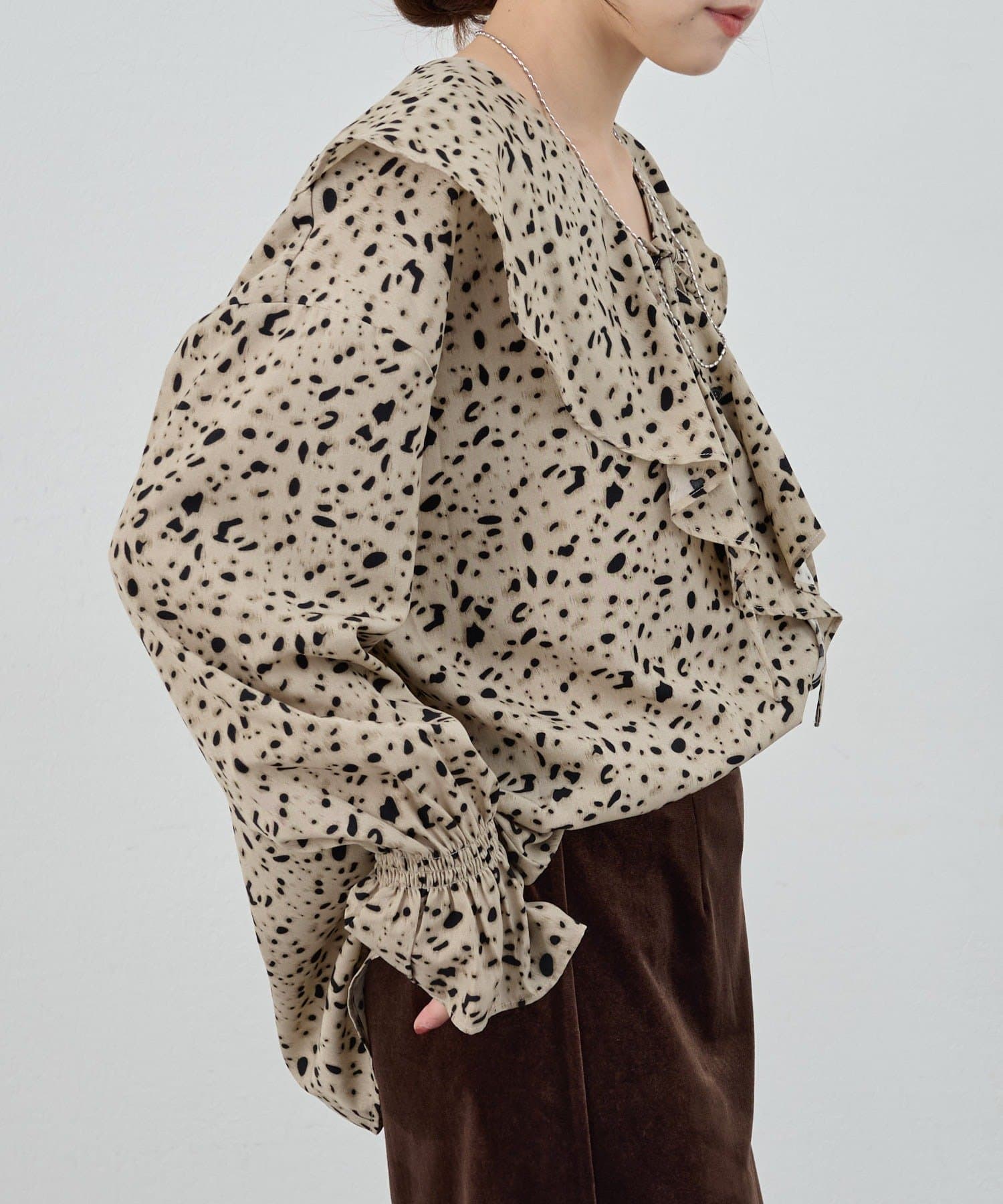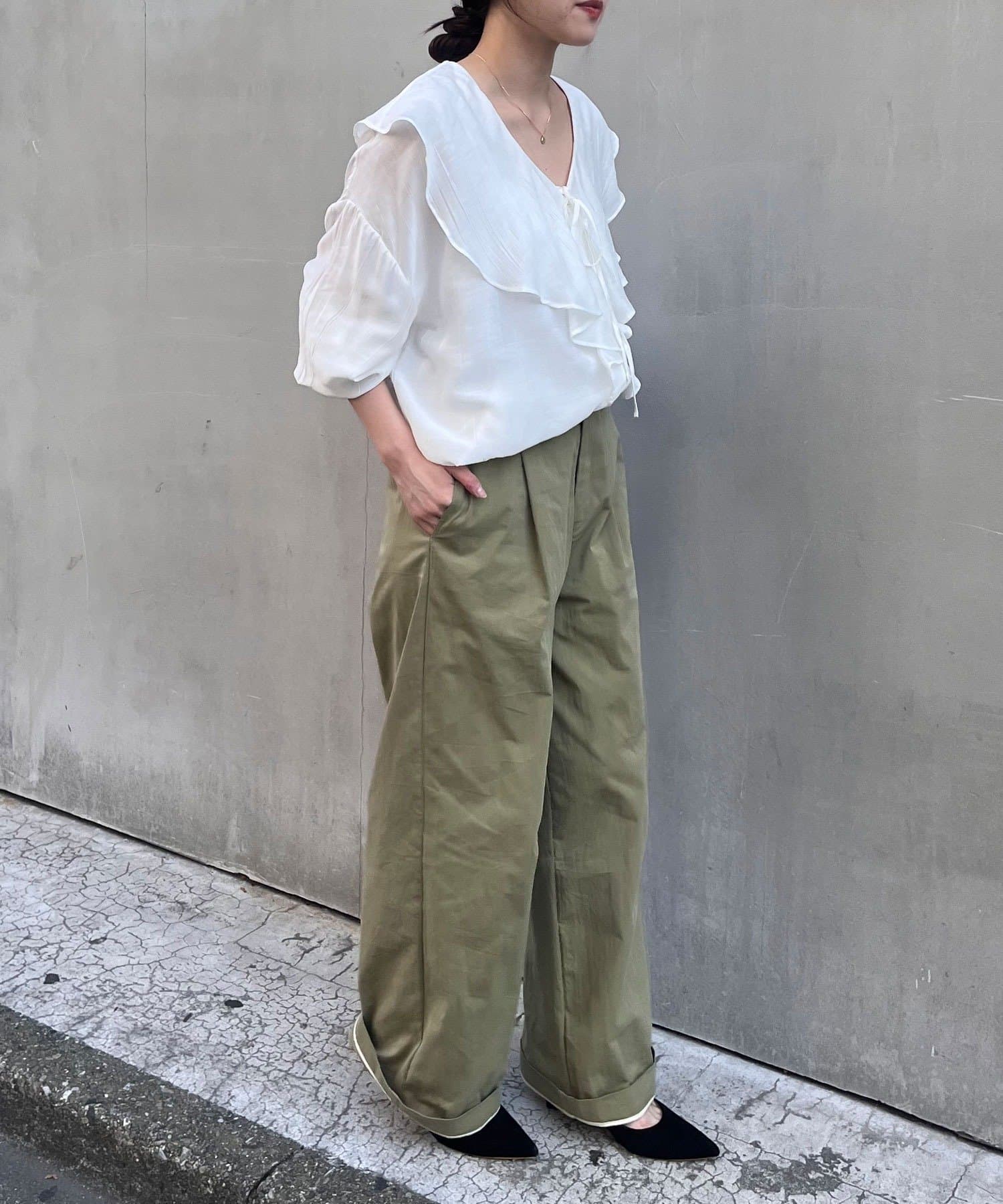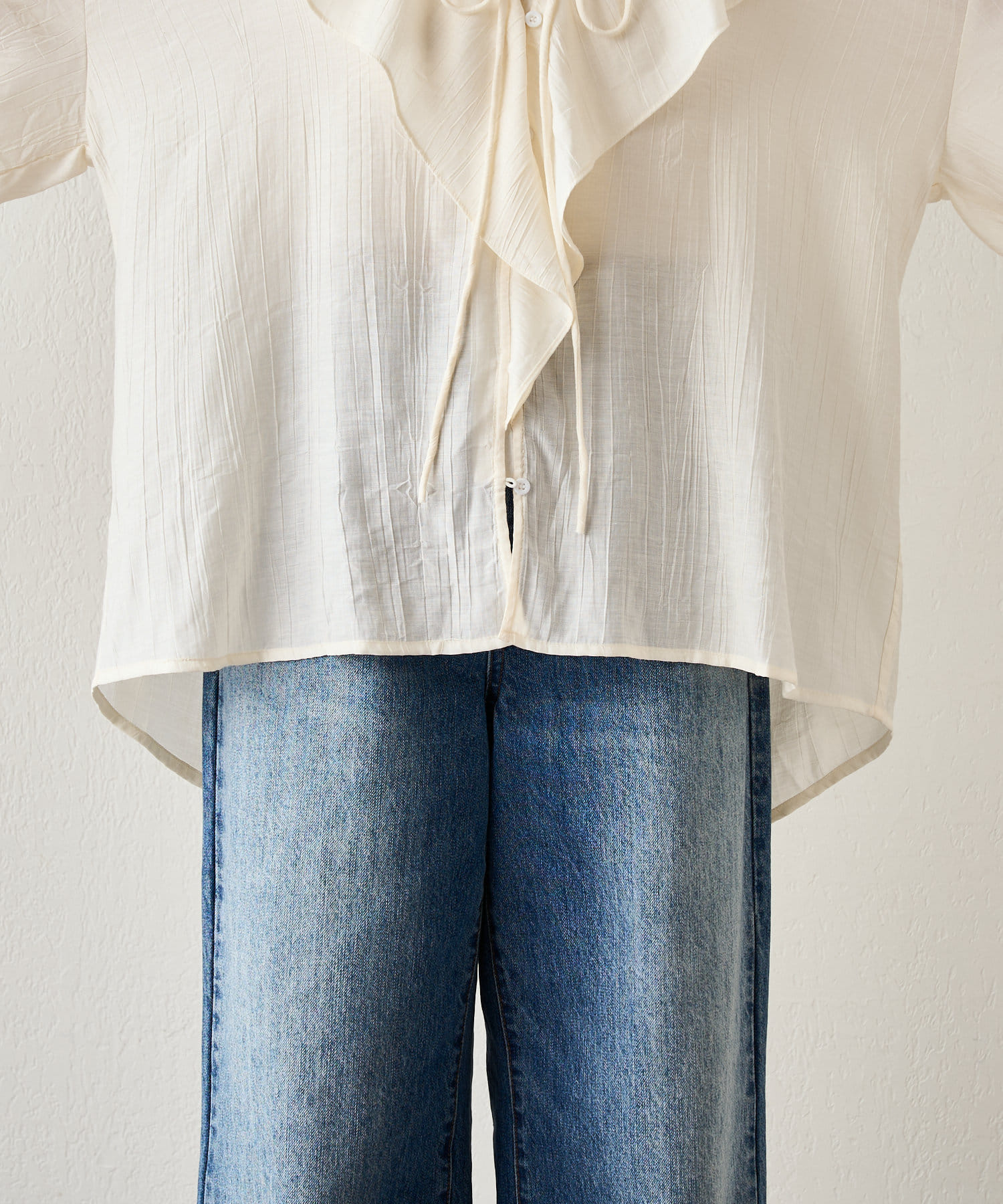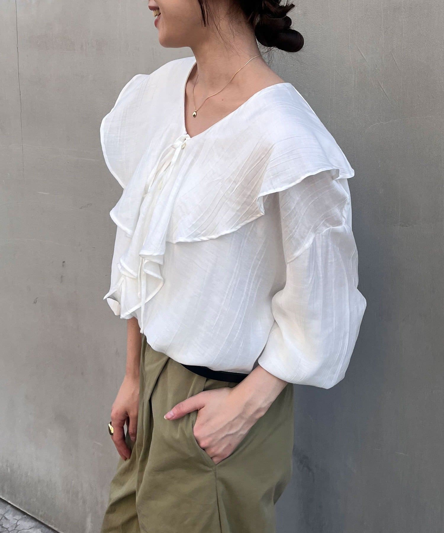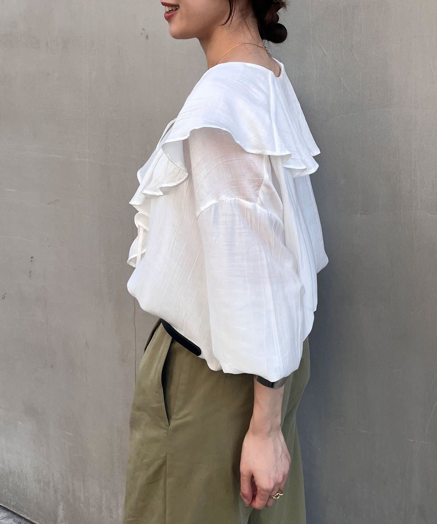 ボリュームのあるフリル衿が大人可愛いブラウス