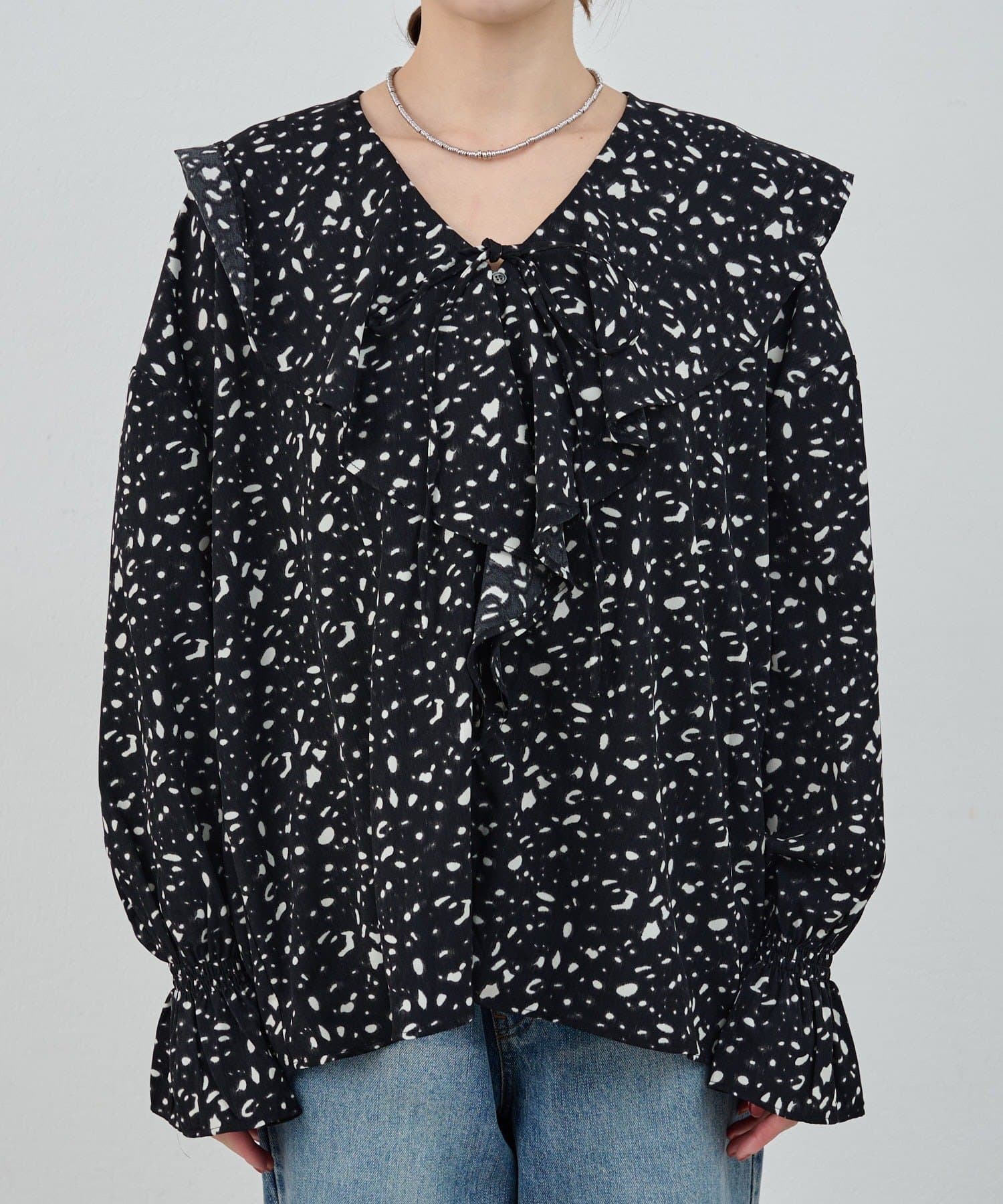 フリル付きのビックカラーはお顔周りを華やかな印象に。