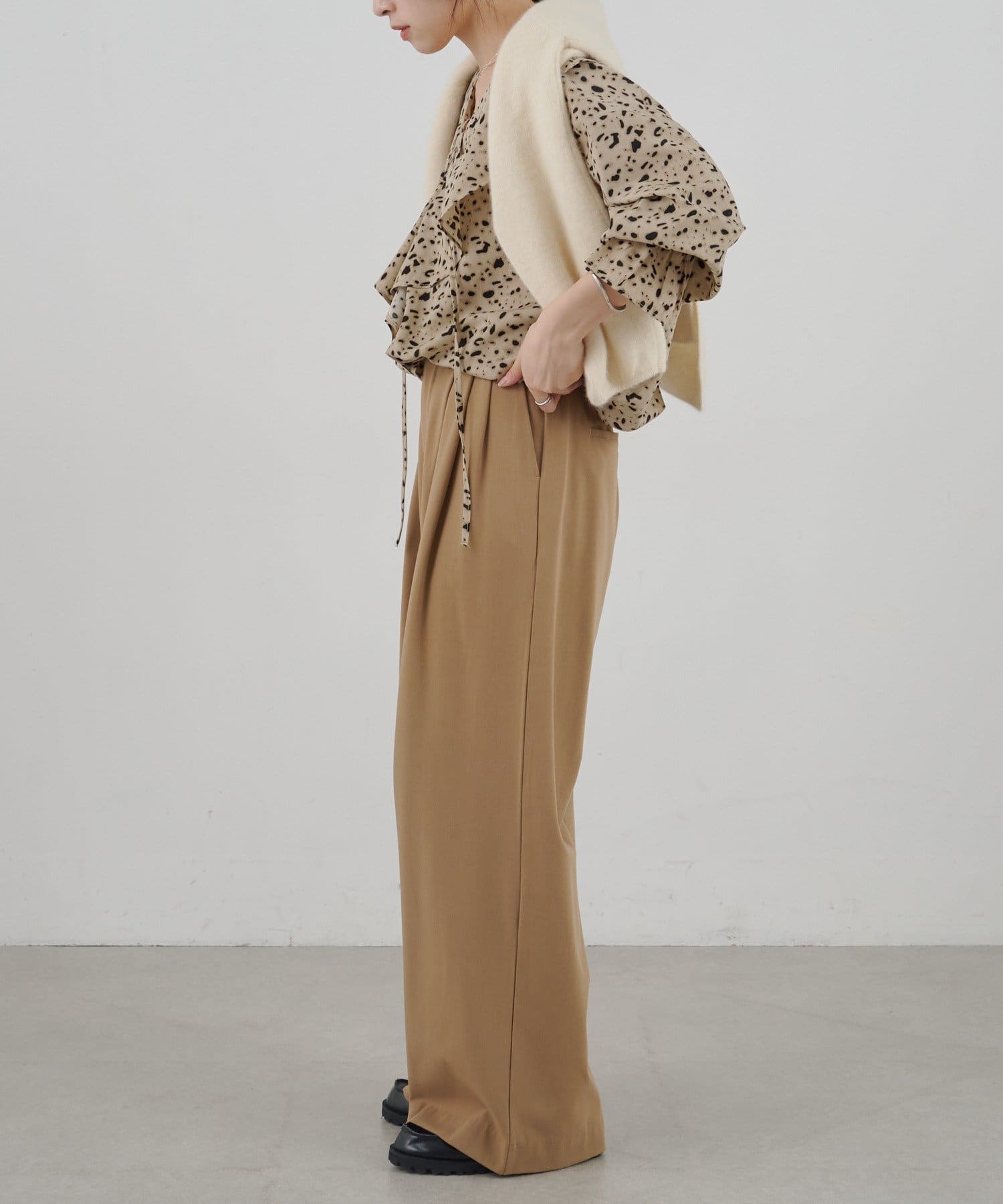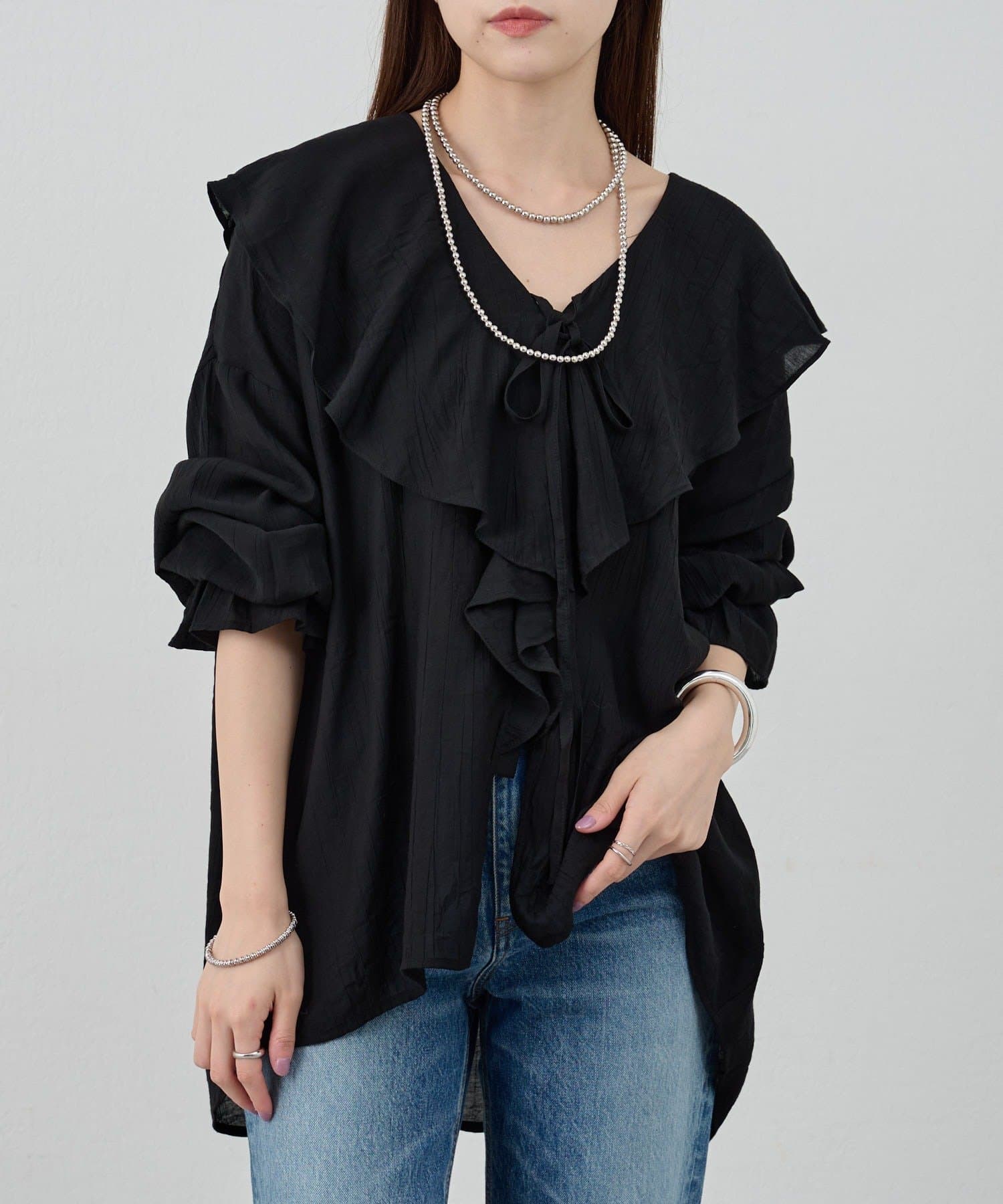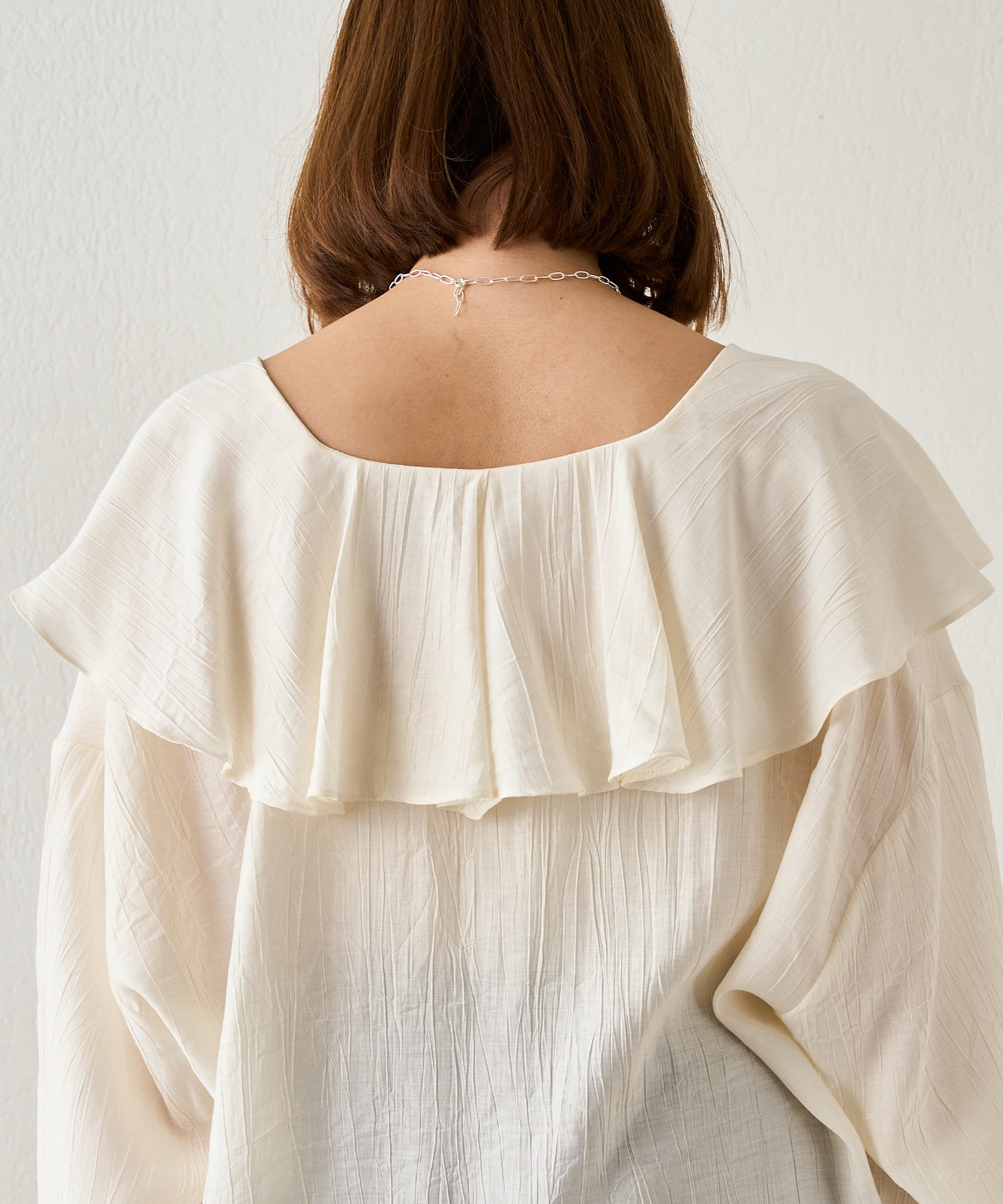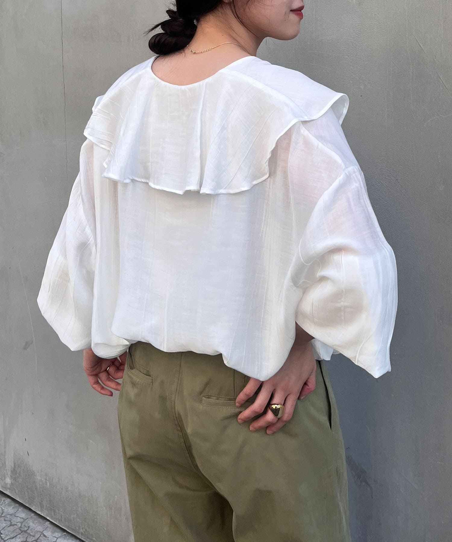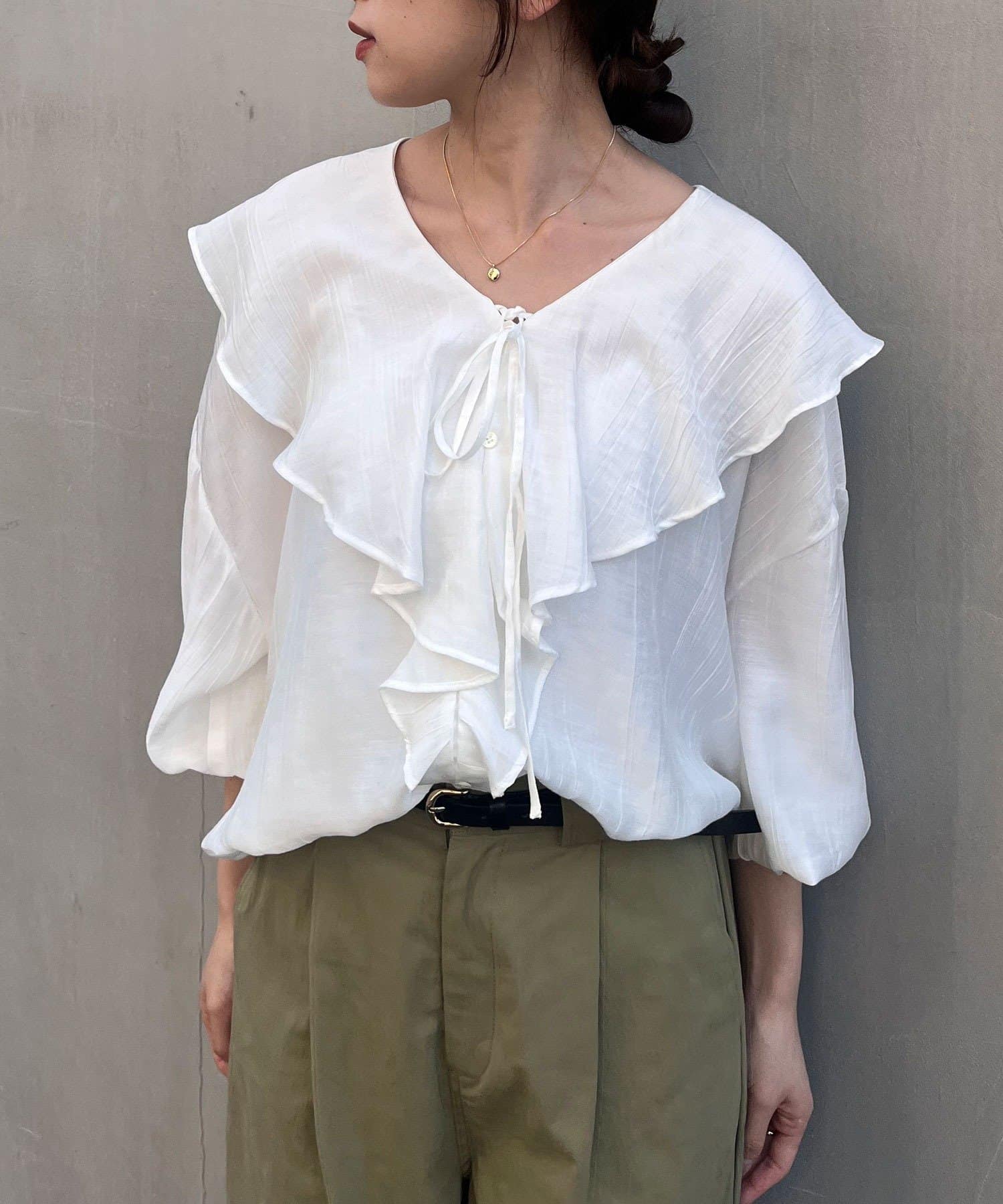 ボリュームのあるフリル衿が大人可愛いブラウス