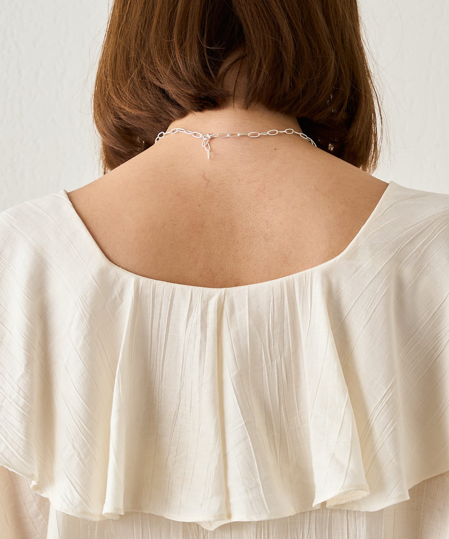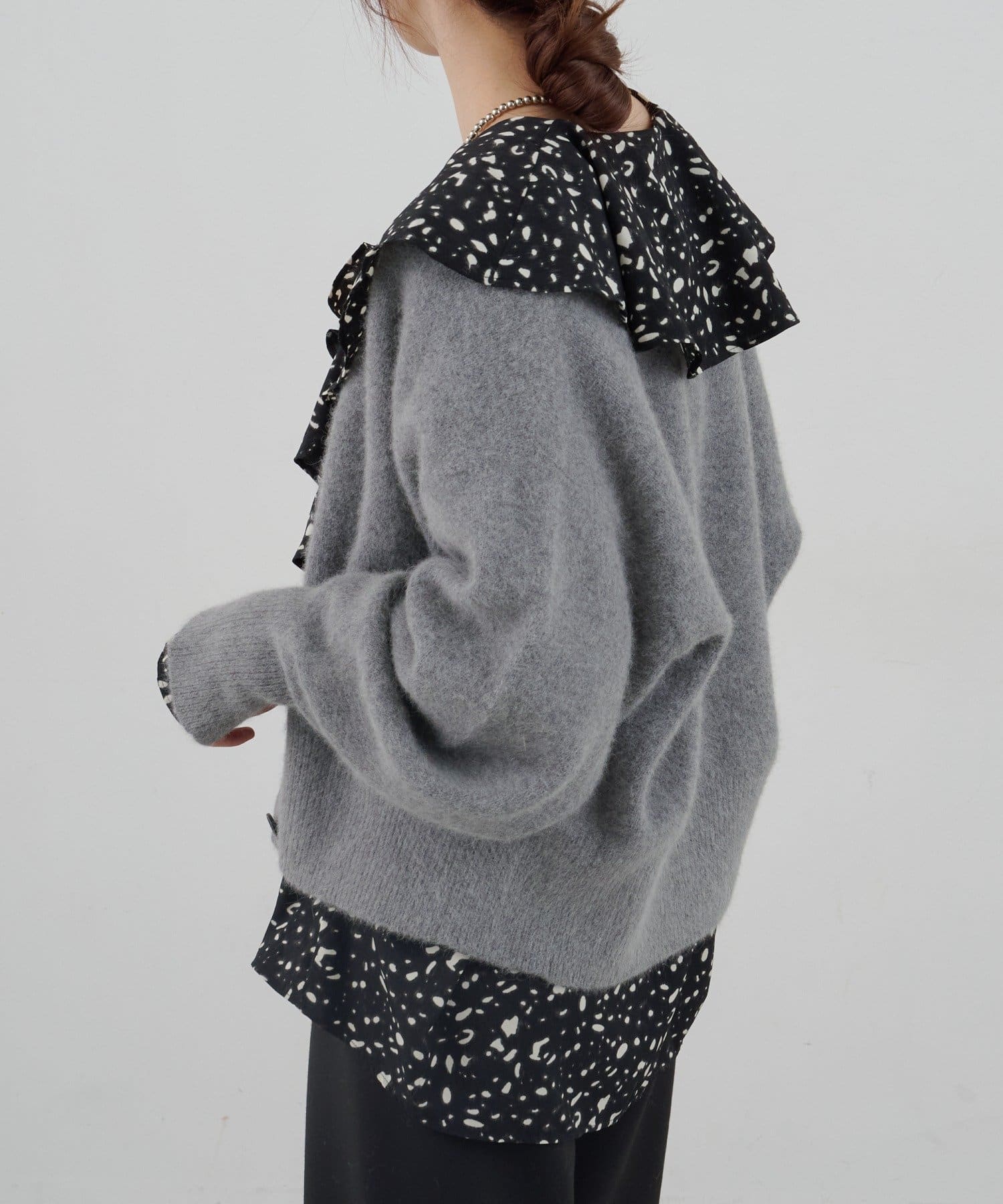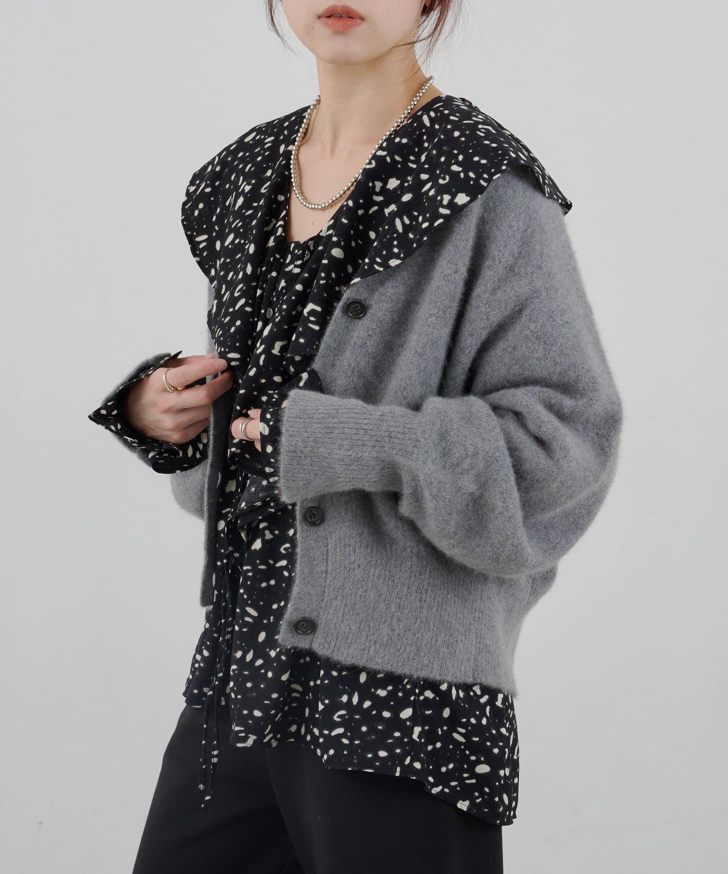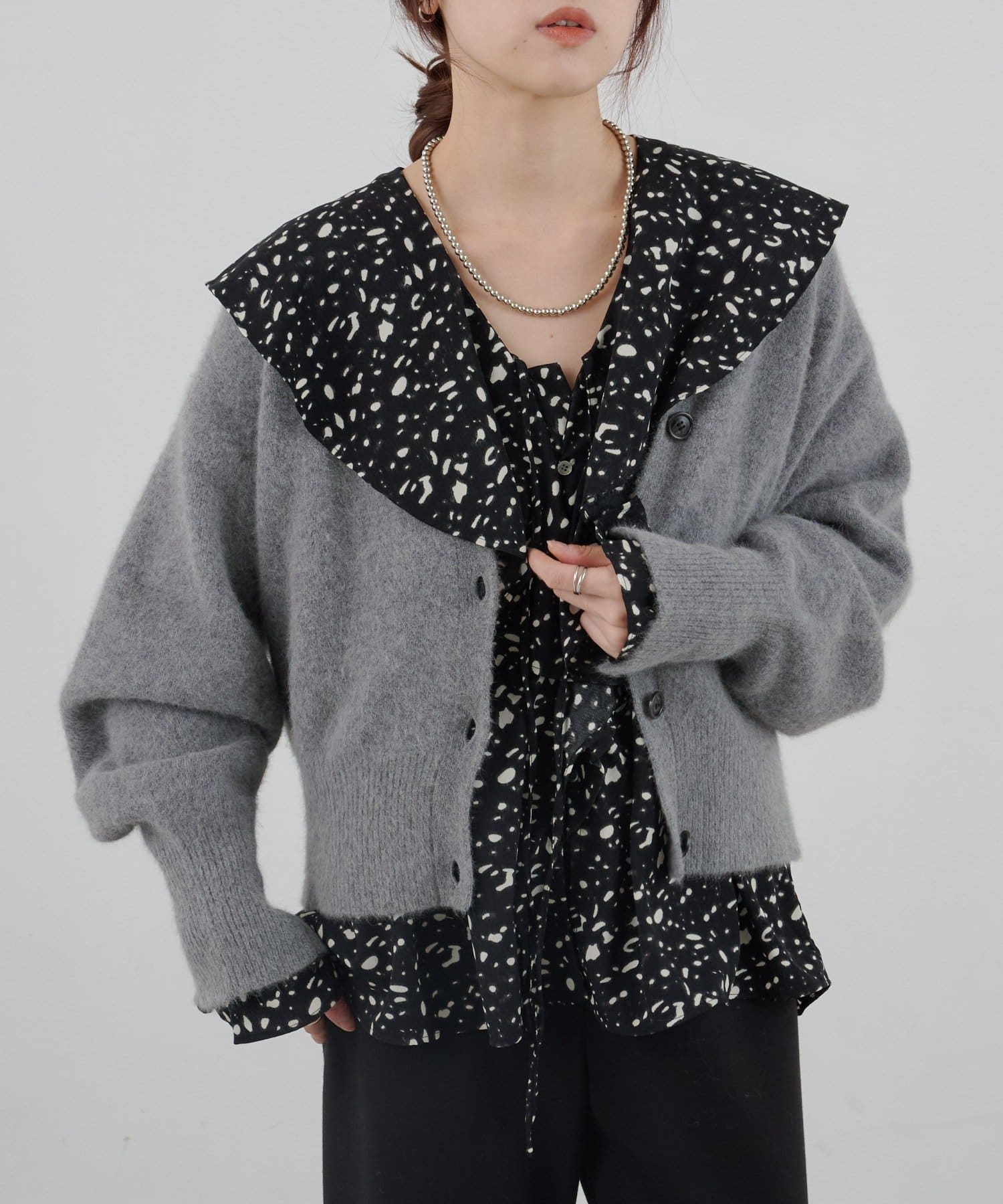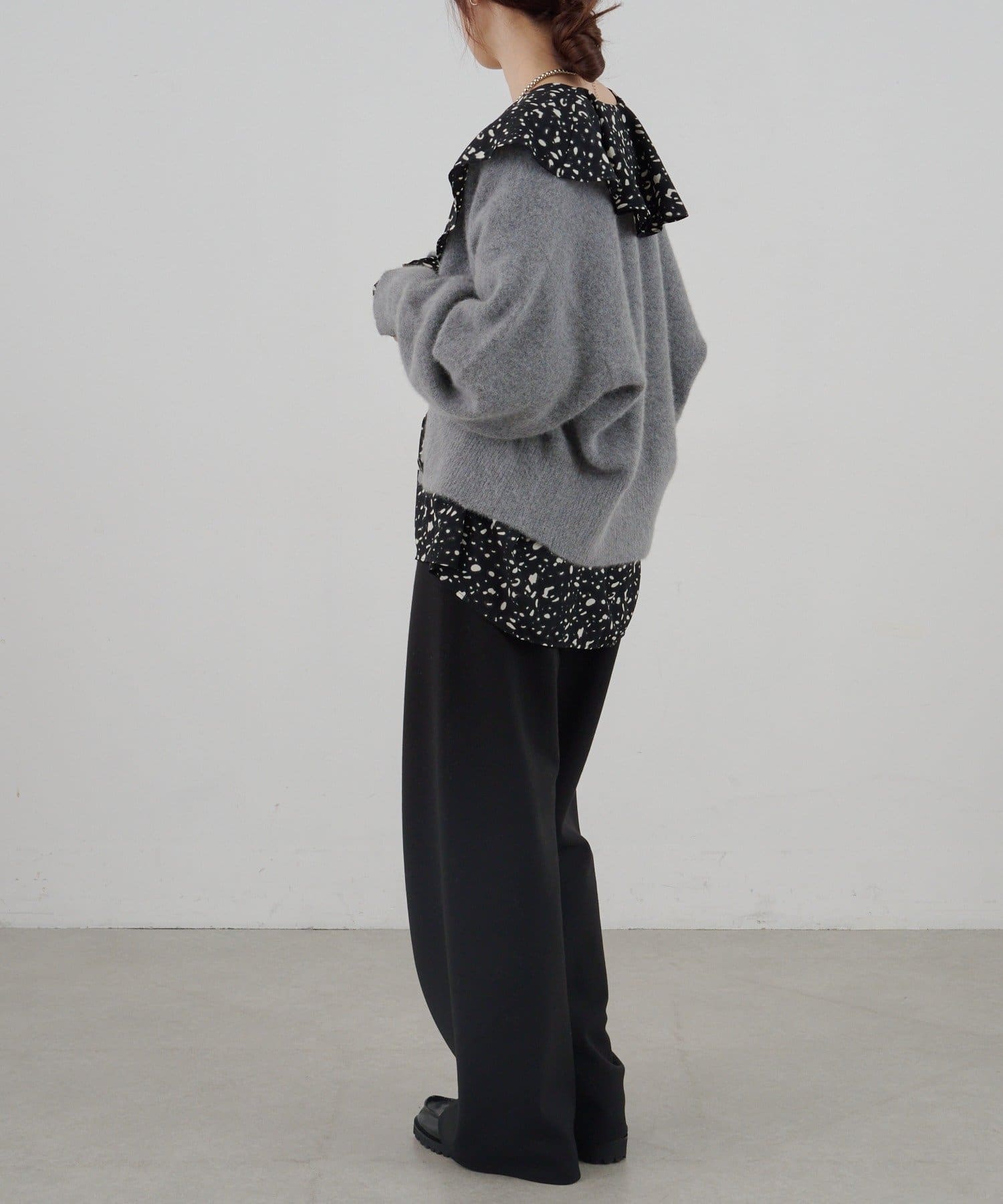 フリル付きのビックカラーはお顔周りを華やかな印象に。