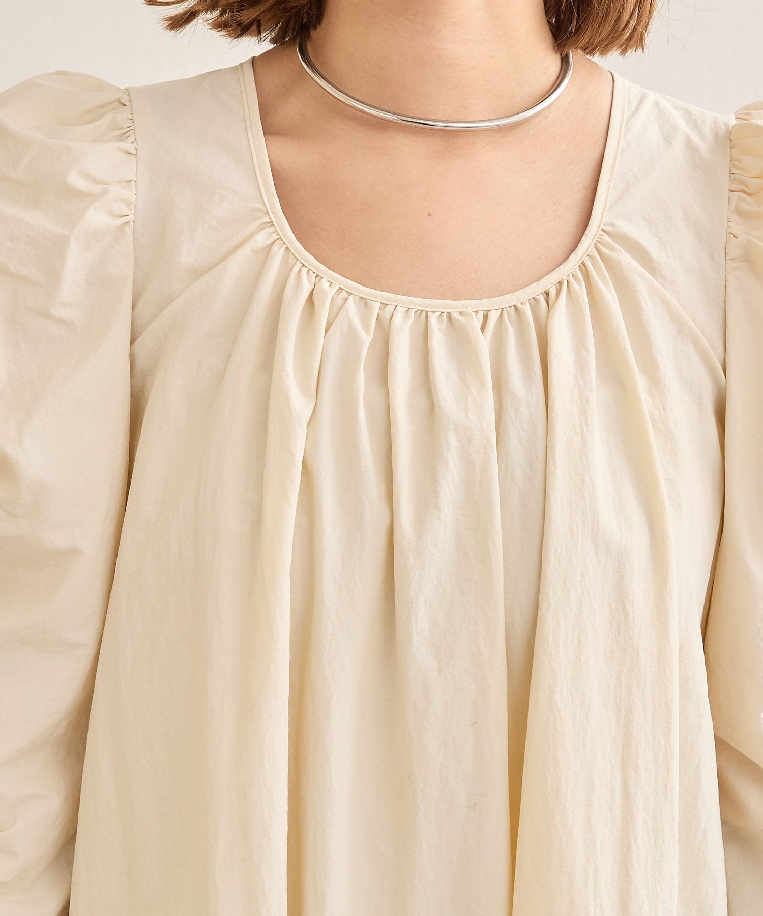 Uネックに開いたデコルテラインが女性らしく顔周りもスッキリ見せてくれます。