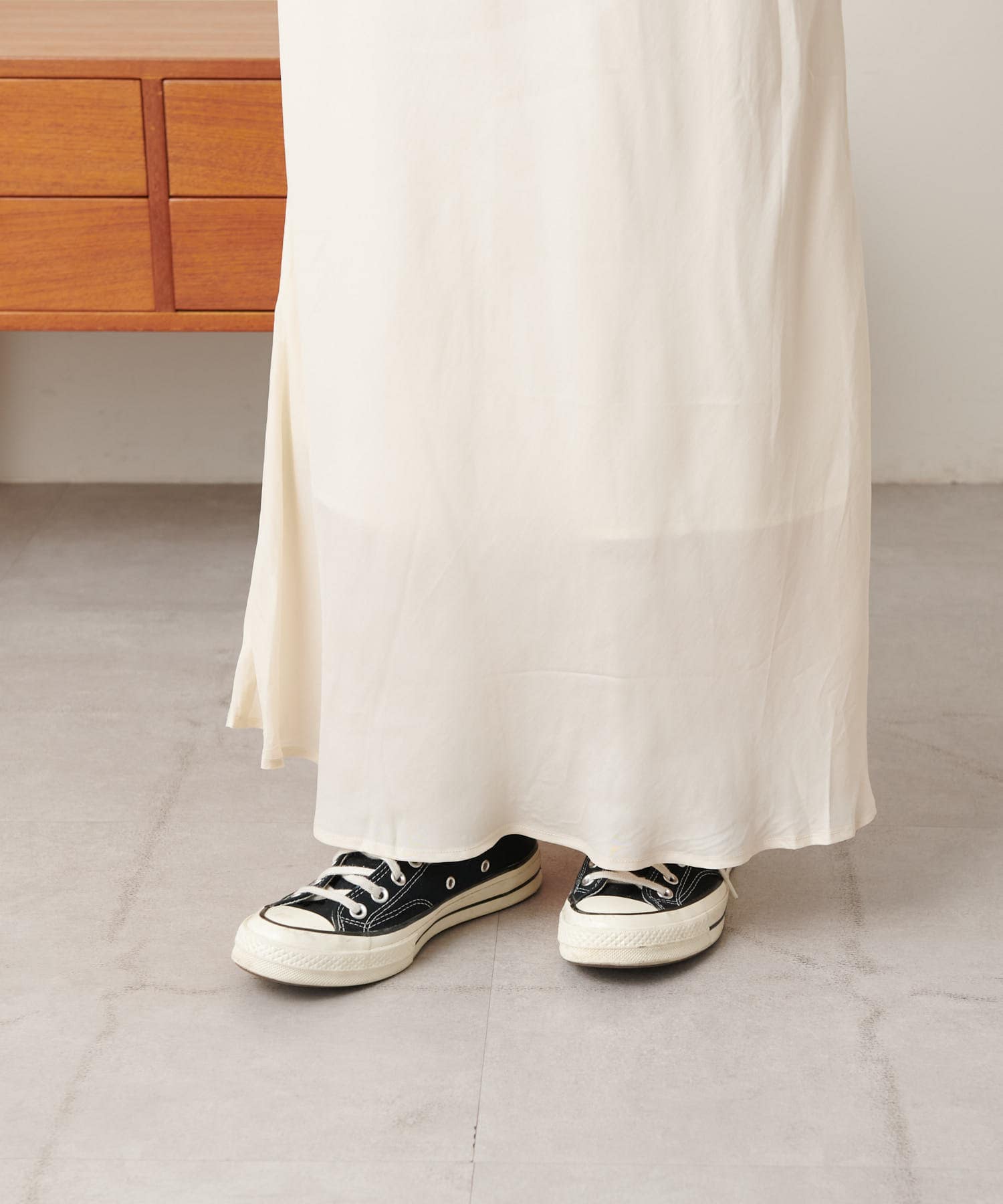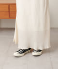 足元はヒールで大人っぽくもスニーカーでカジュアルにも合わせられる万能スカート。