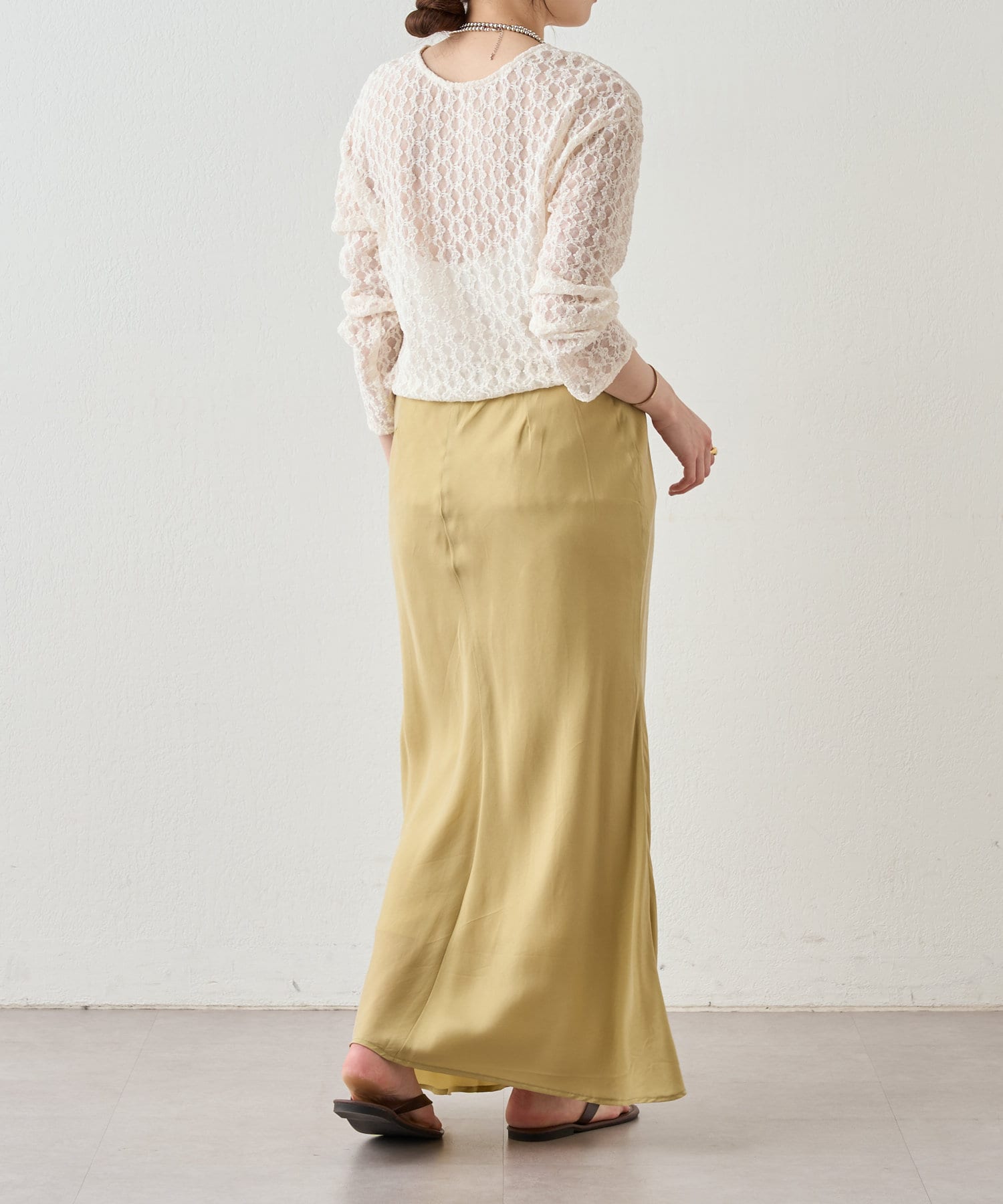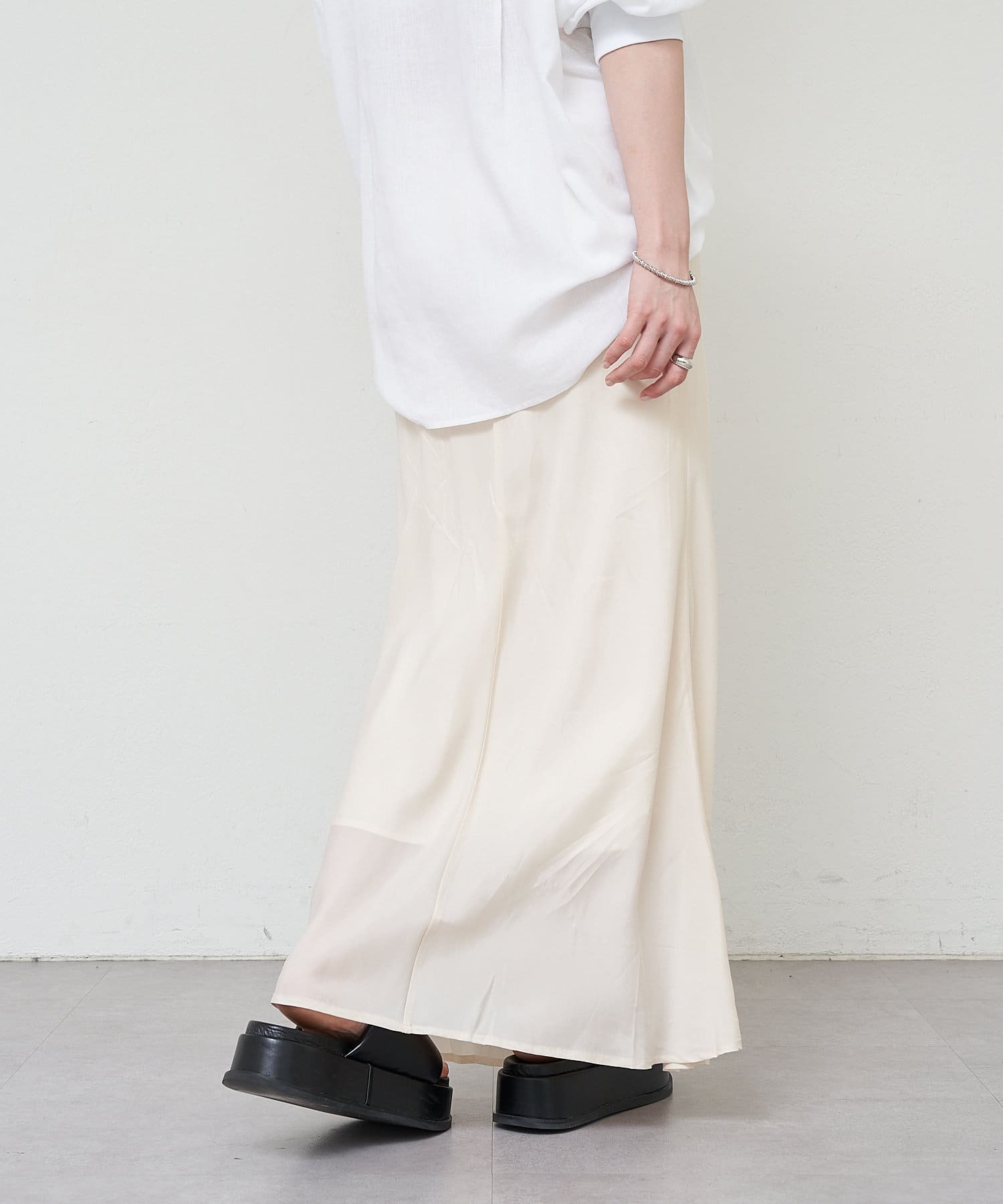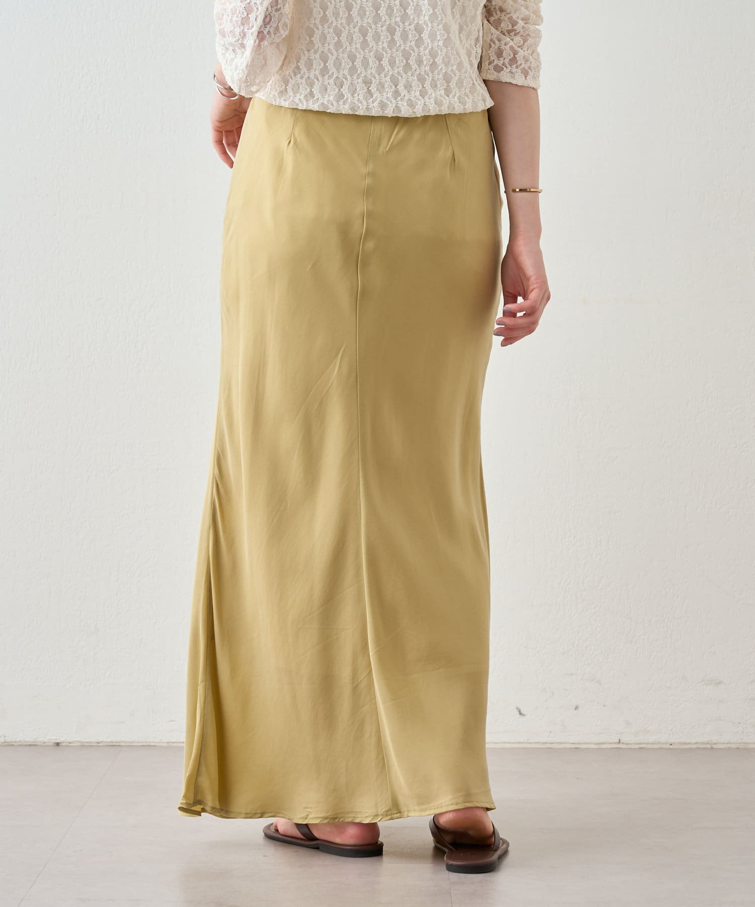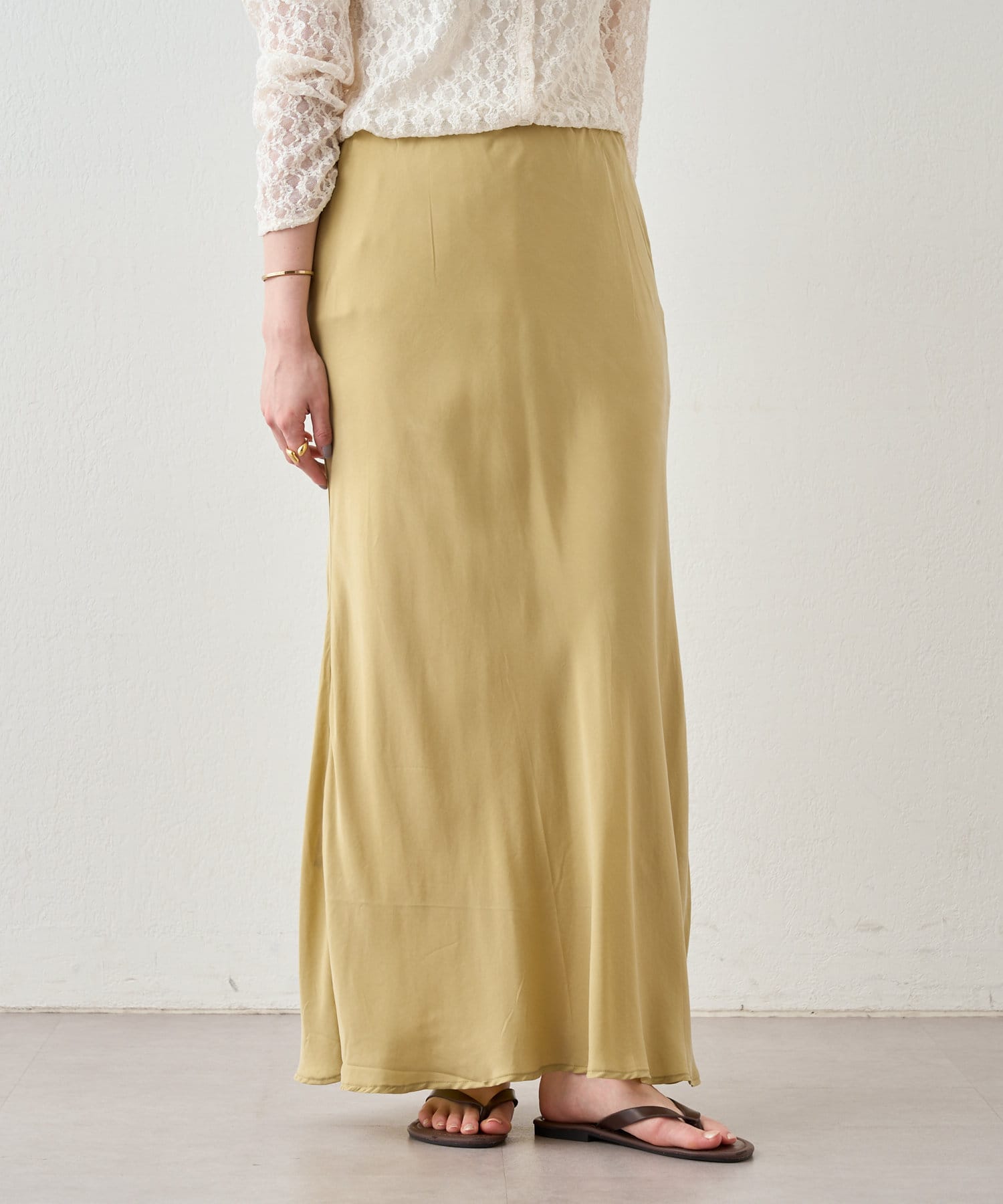 女性らしく、程よい光沢感のあるキュプラスカート。