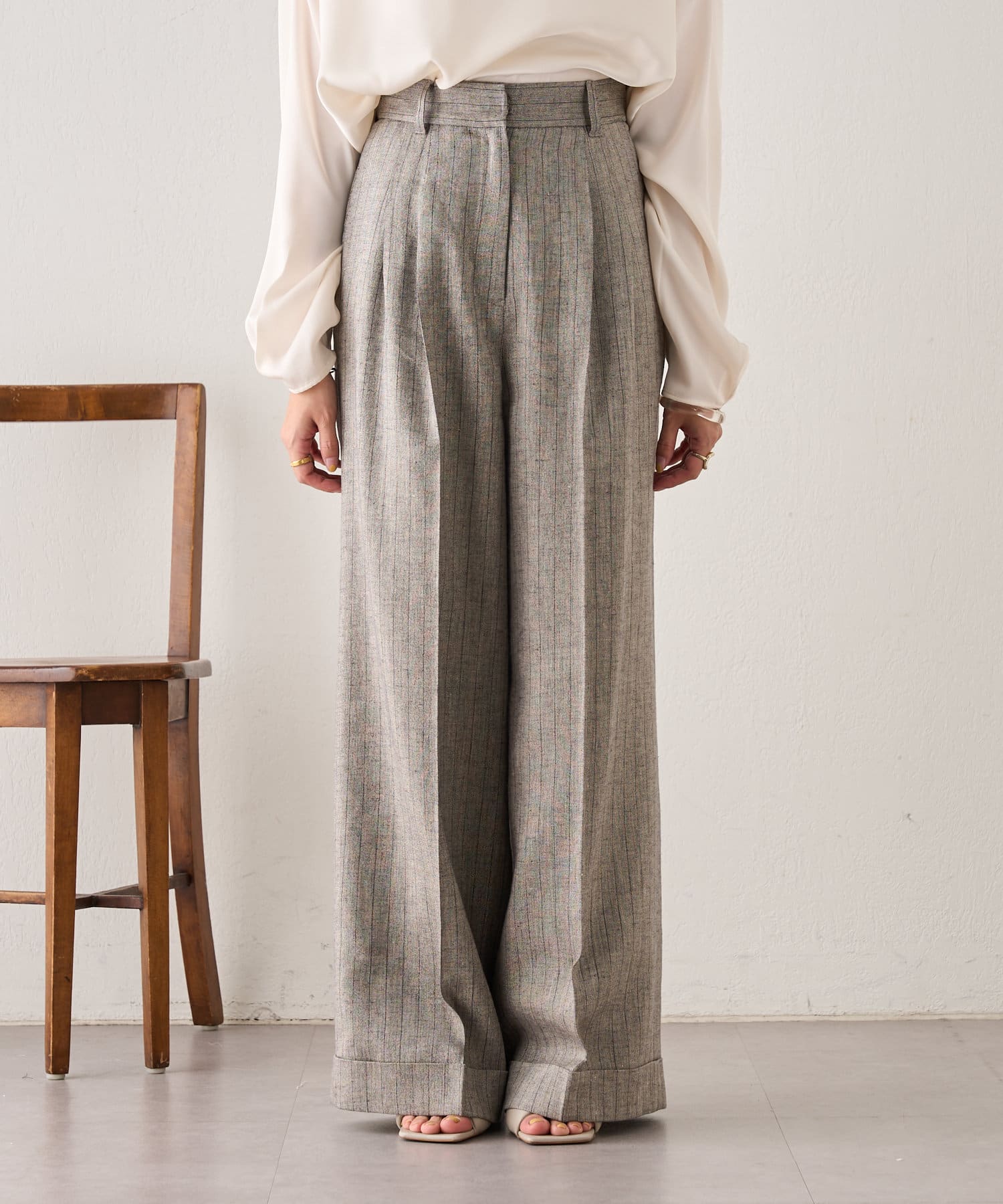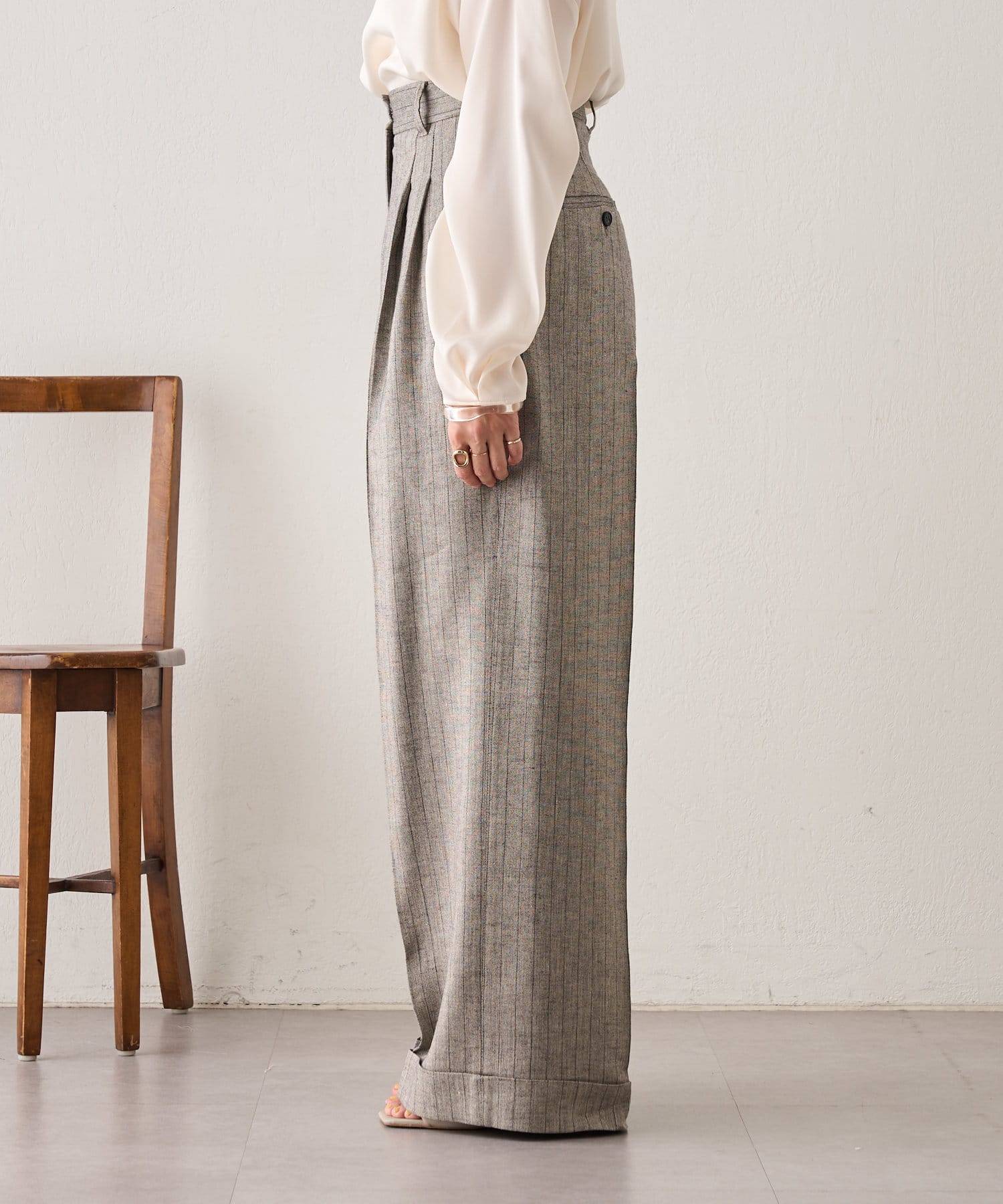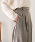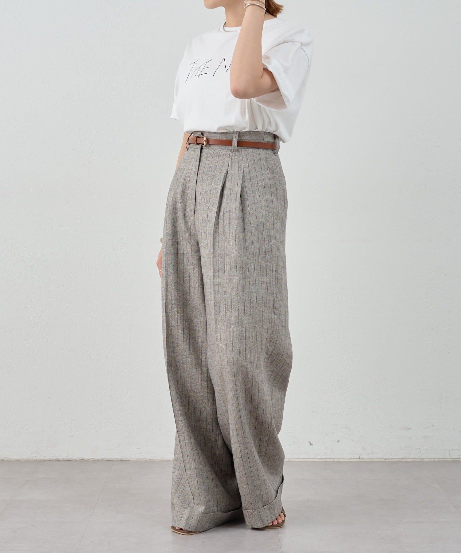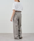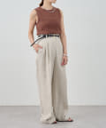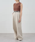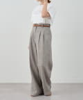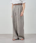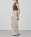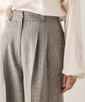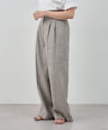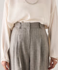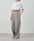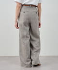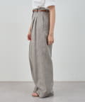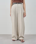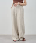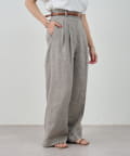 リネンのツイル素材にラメ糸を打ち込んだ光沢のあるリネン素材を使用したワイドパンツ。