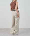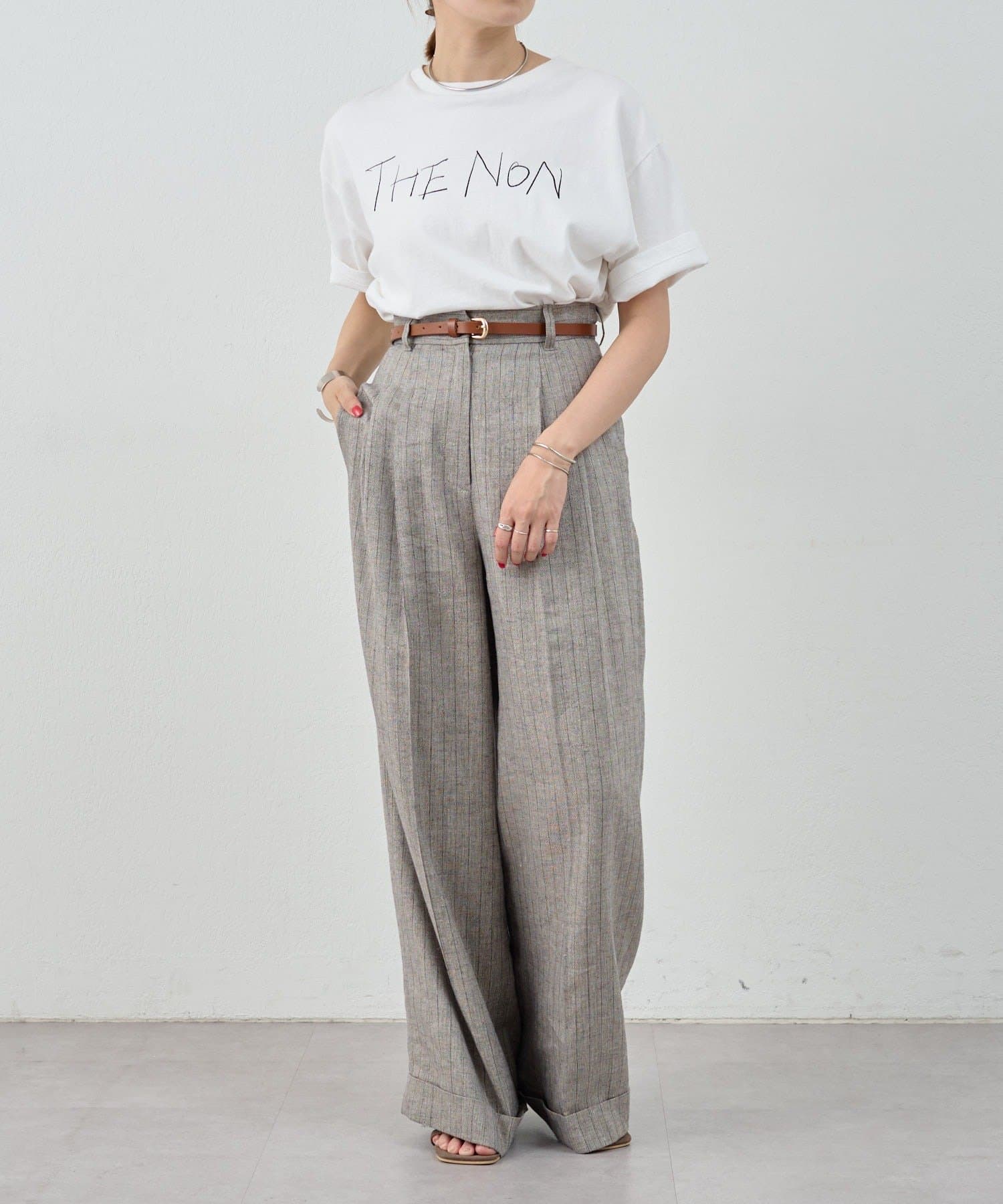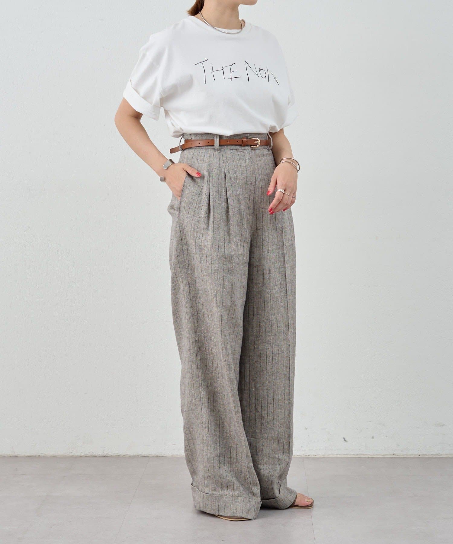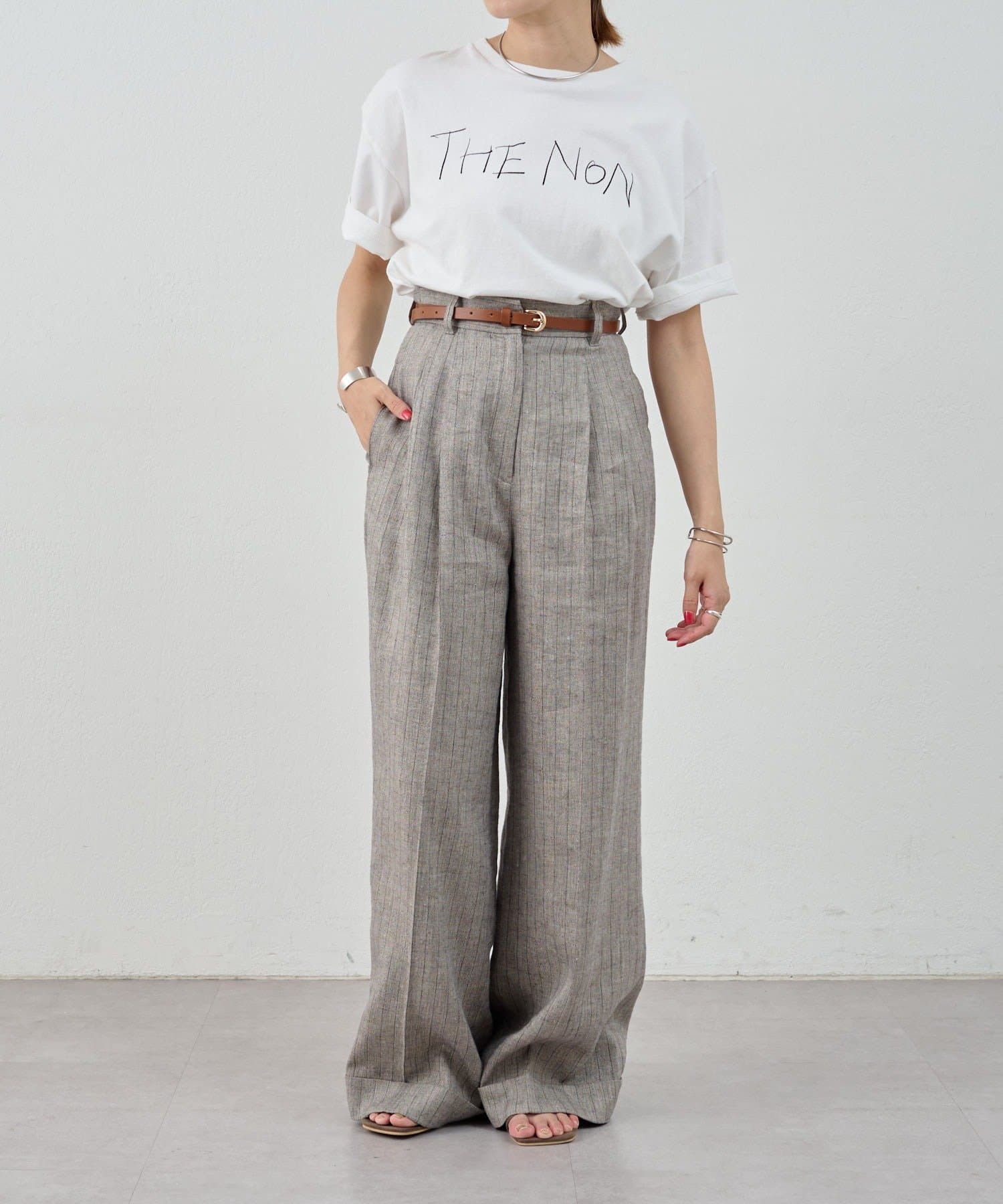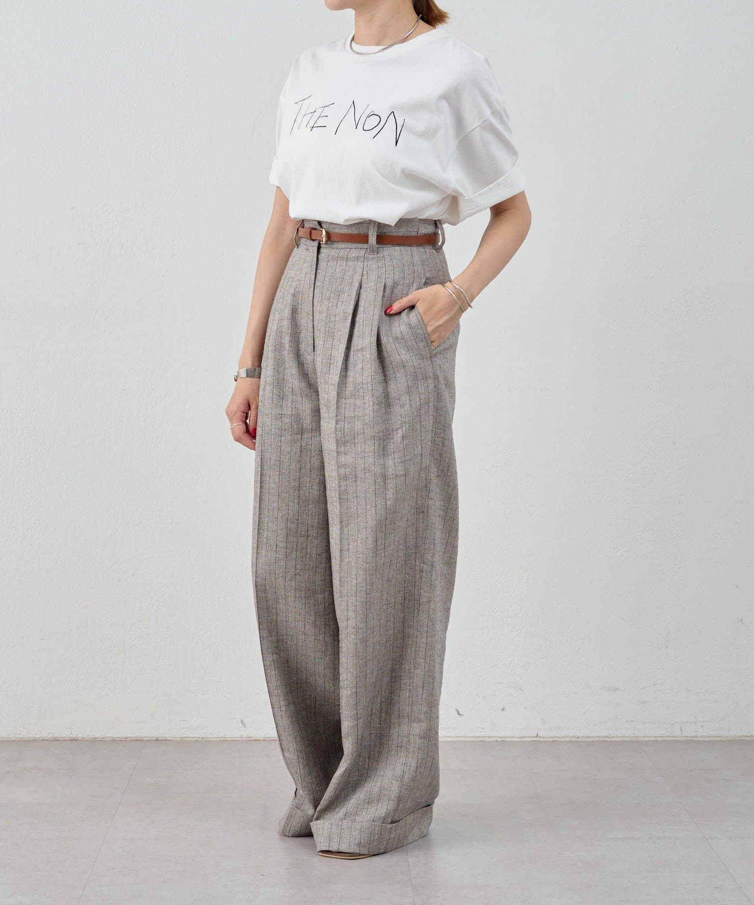 リネンのツイル素材にラメ糸を打ち込んだ光沢のあるリネン素材を使用したワイドパンツ。
